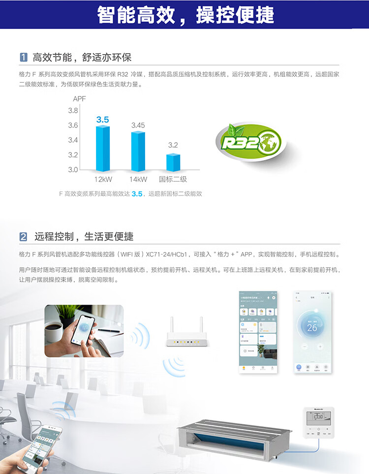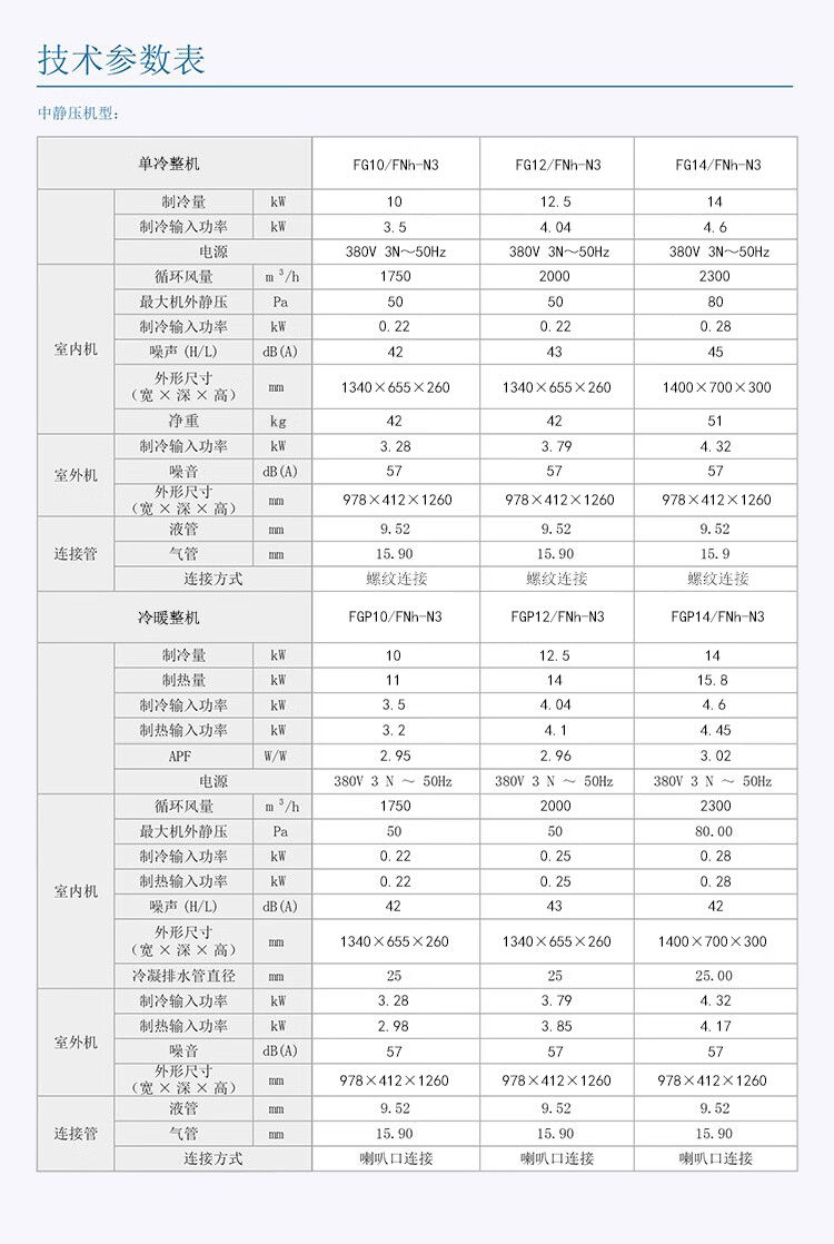 格力 中央空调 商用风管机 一拖一 F系列 大风量 宽幅静压设计 大风管