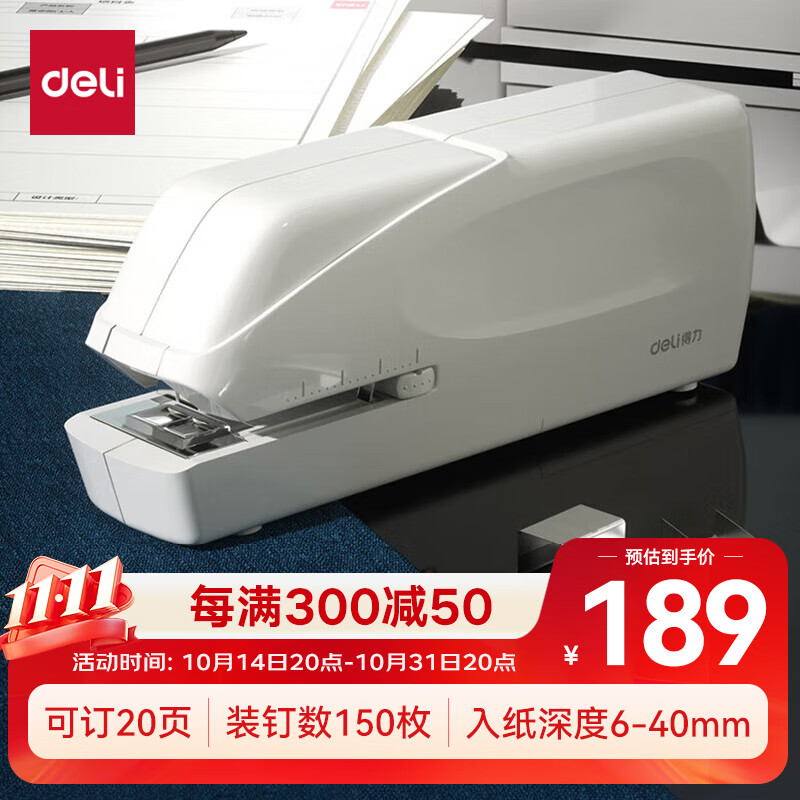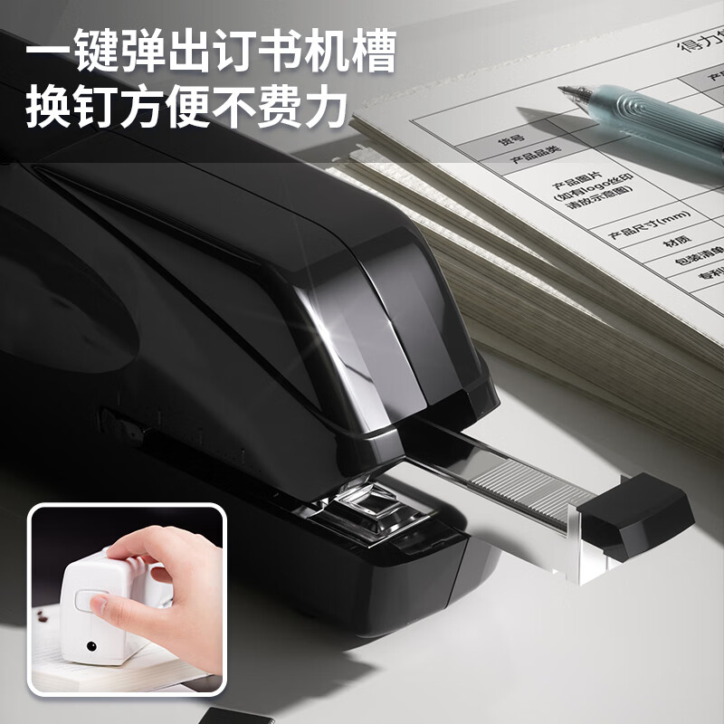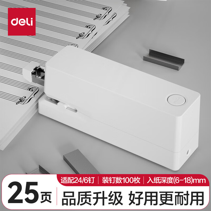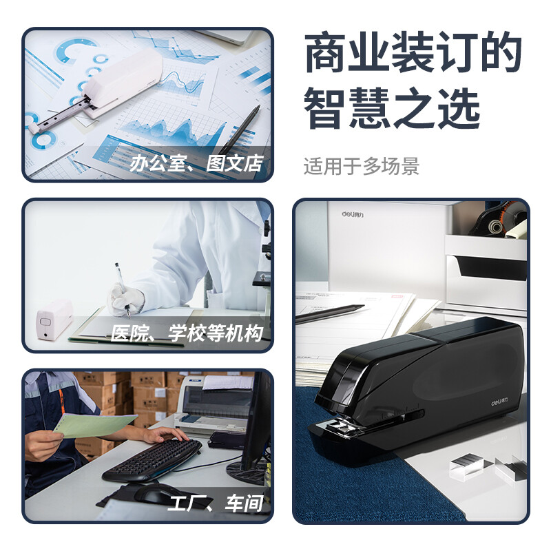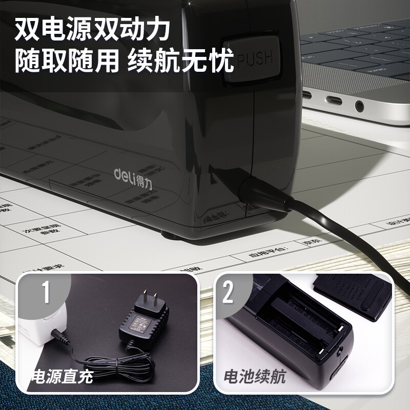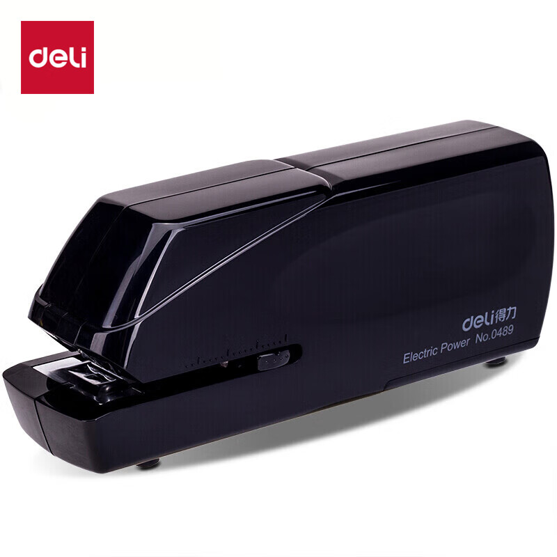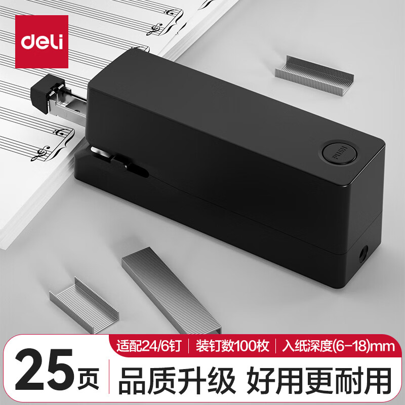 得力(deli)双电源电动订书机 电子自动装订订书器 适配24/6或26/6订书钉 办公用品 黑色0489