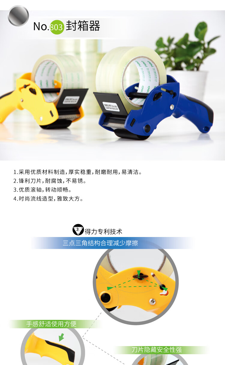 得力(deli)封箱器打包器胶带底座 适用胶带宽度60mm内胶带切割机 办公用品 颜色随机803