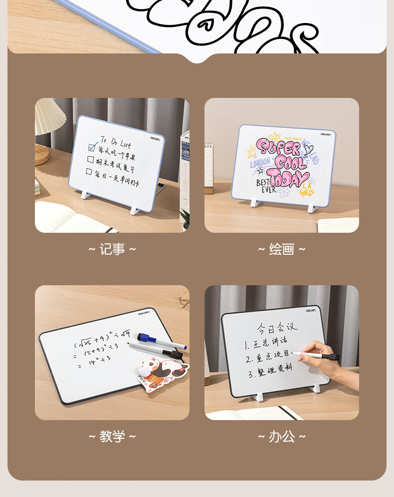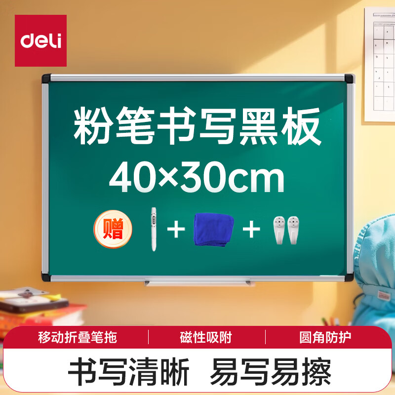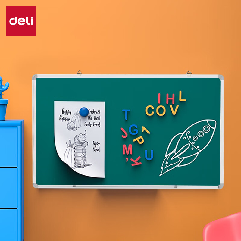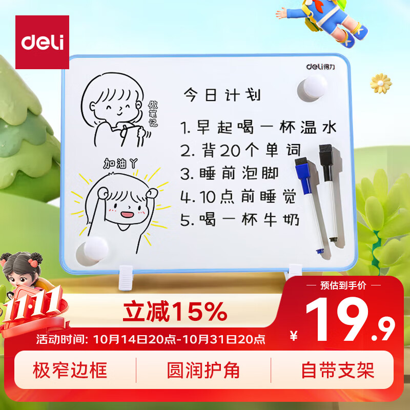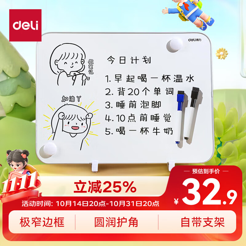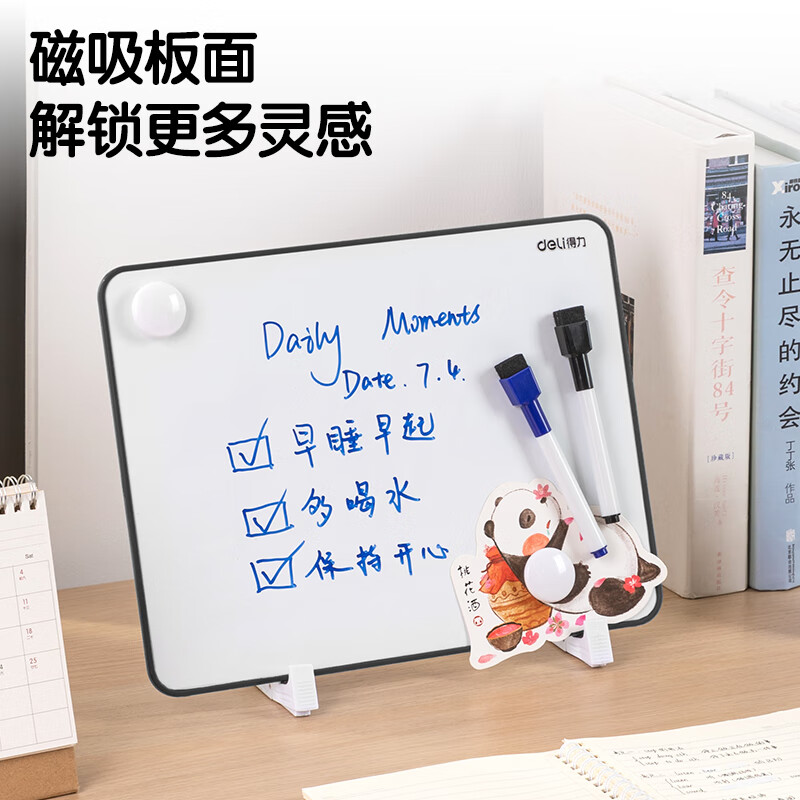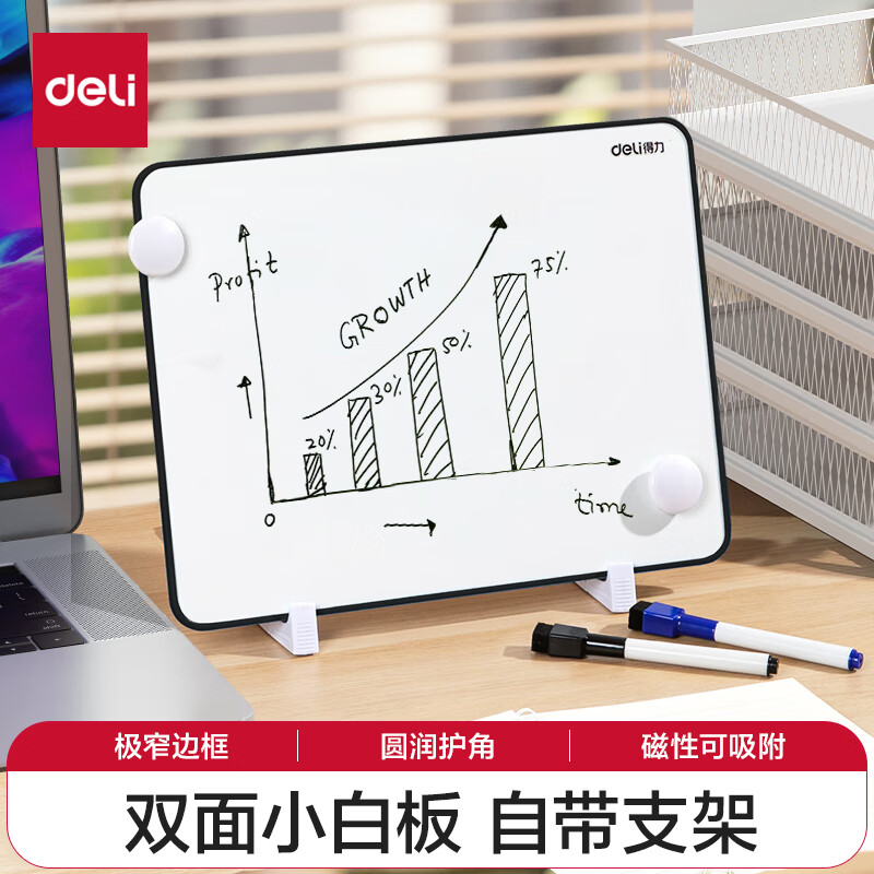 得力(deli)30*22cm黑色双面小白板 磁铁吸附白板写字板小黑板白板支架式 家用办公手写板儿童画板提示板
