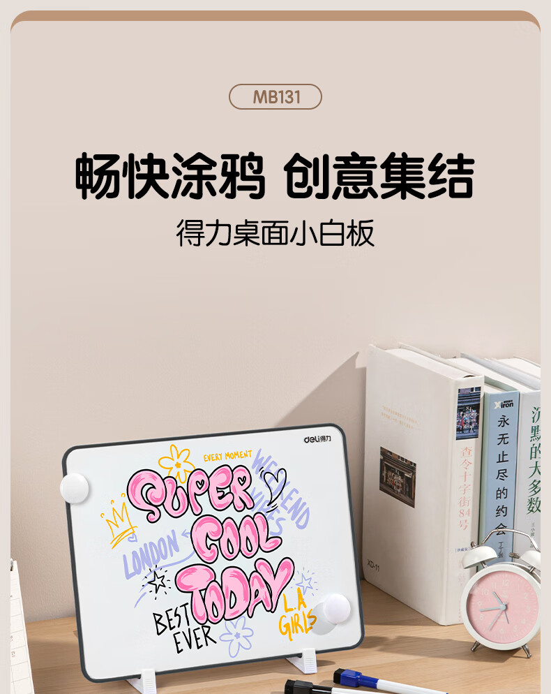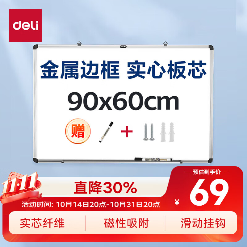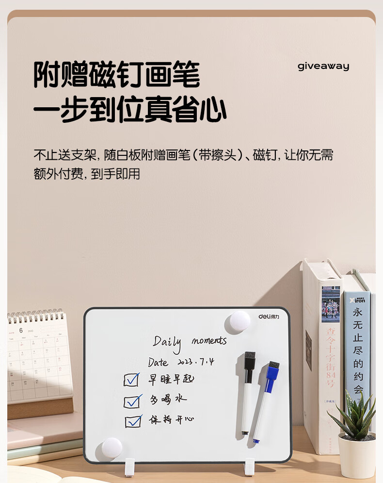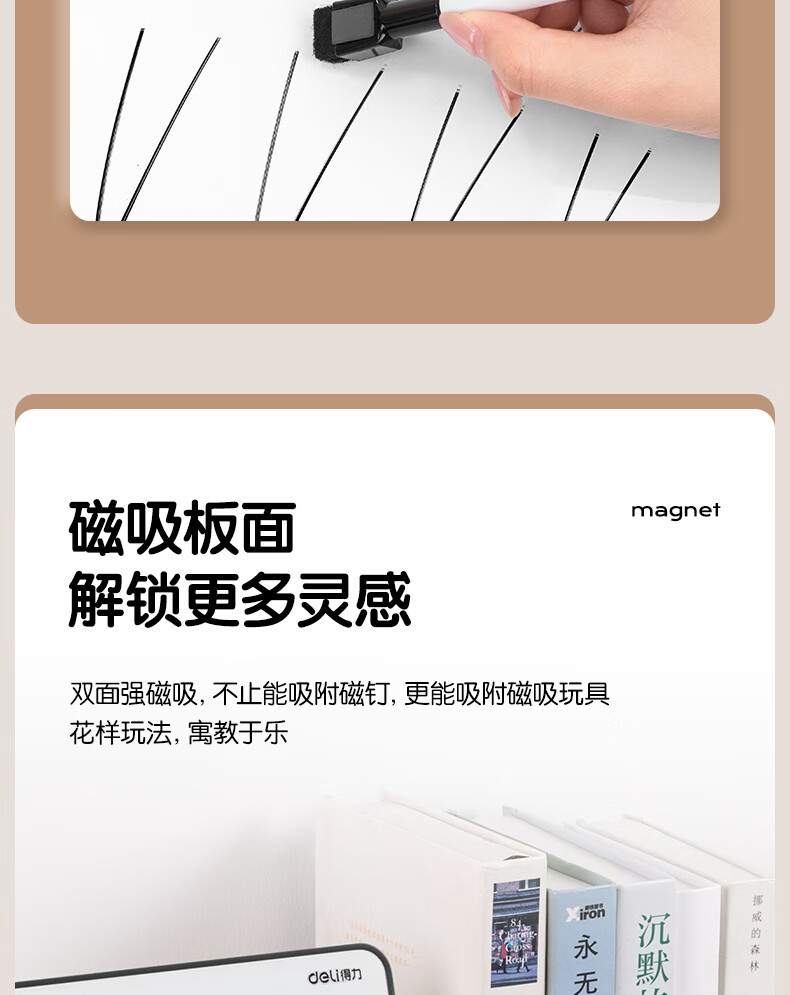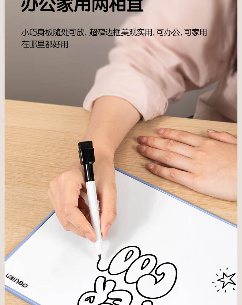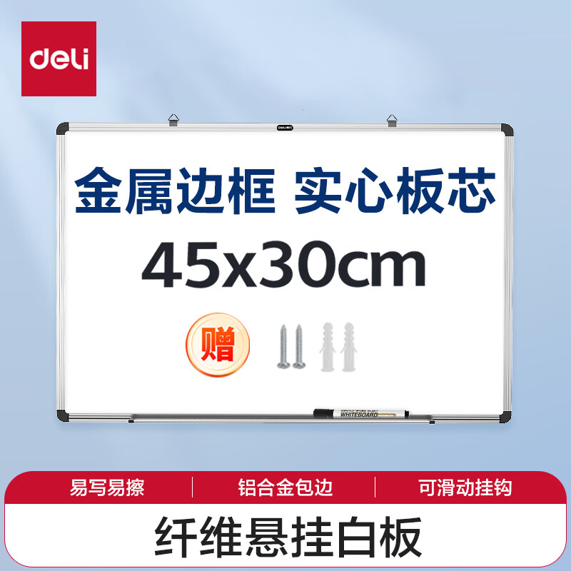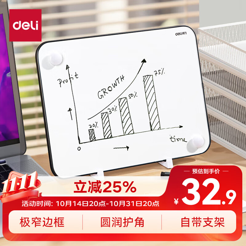 得力(deli)30*22cm黑色双面小白板 磁铁吸附白板写字板小黑板白板支架式 家用办公手写板儿童画板提示板