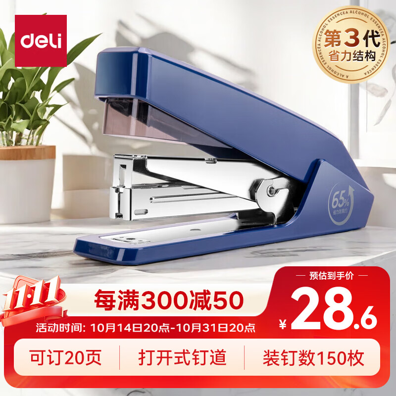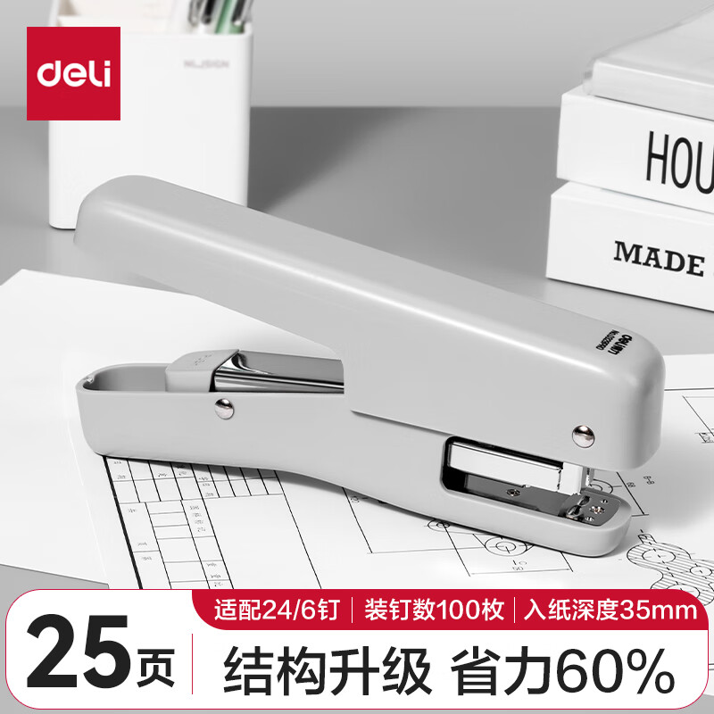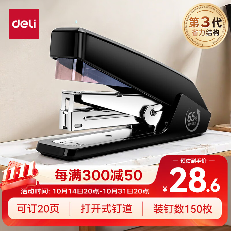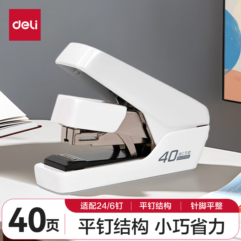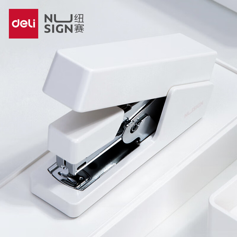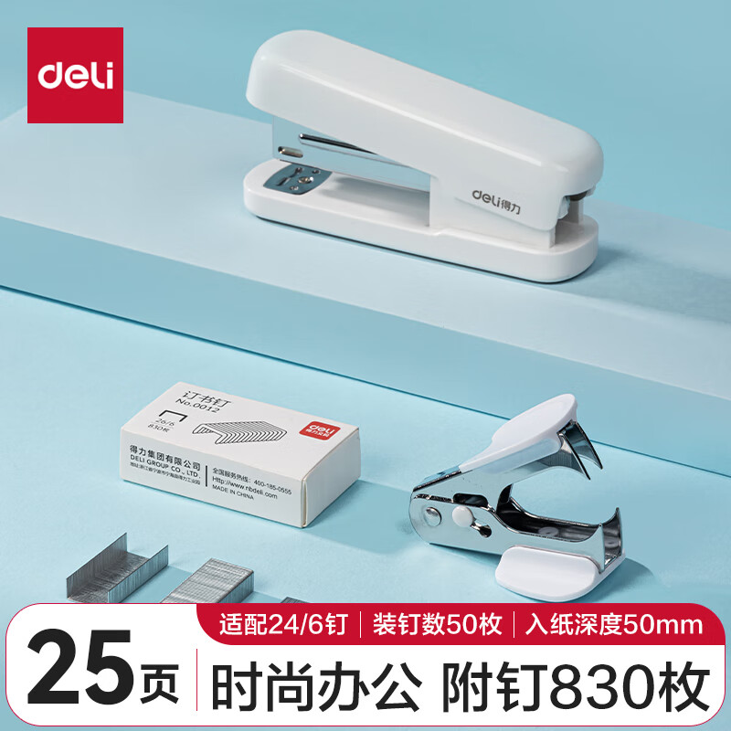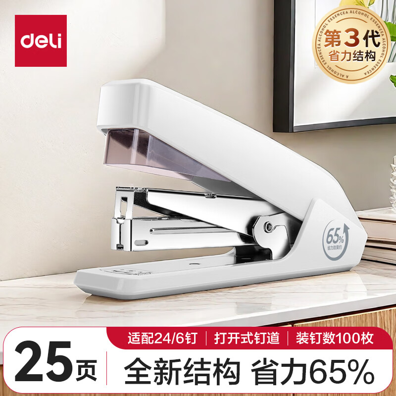 【超级爆款】得力(deli)高效省力结构订书机/订书器 适配12#订书钉 可装150枚钉 白色0468(不含钉)
