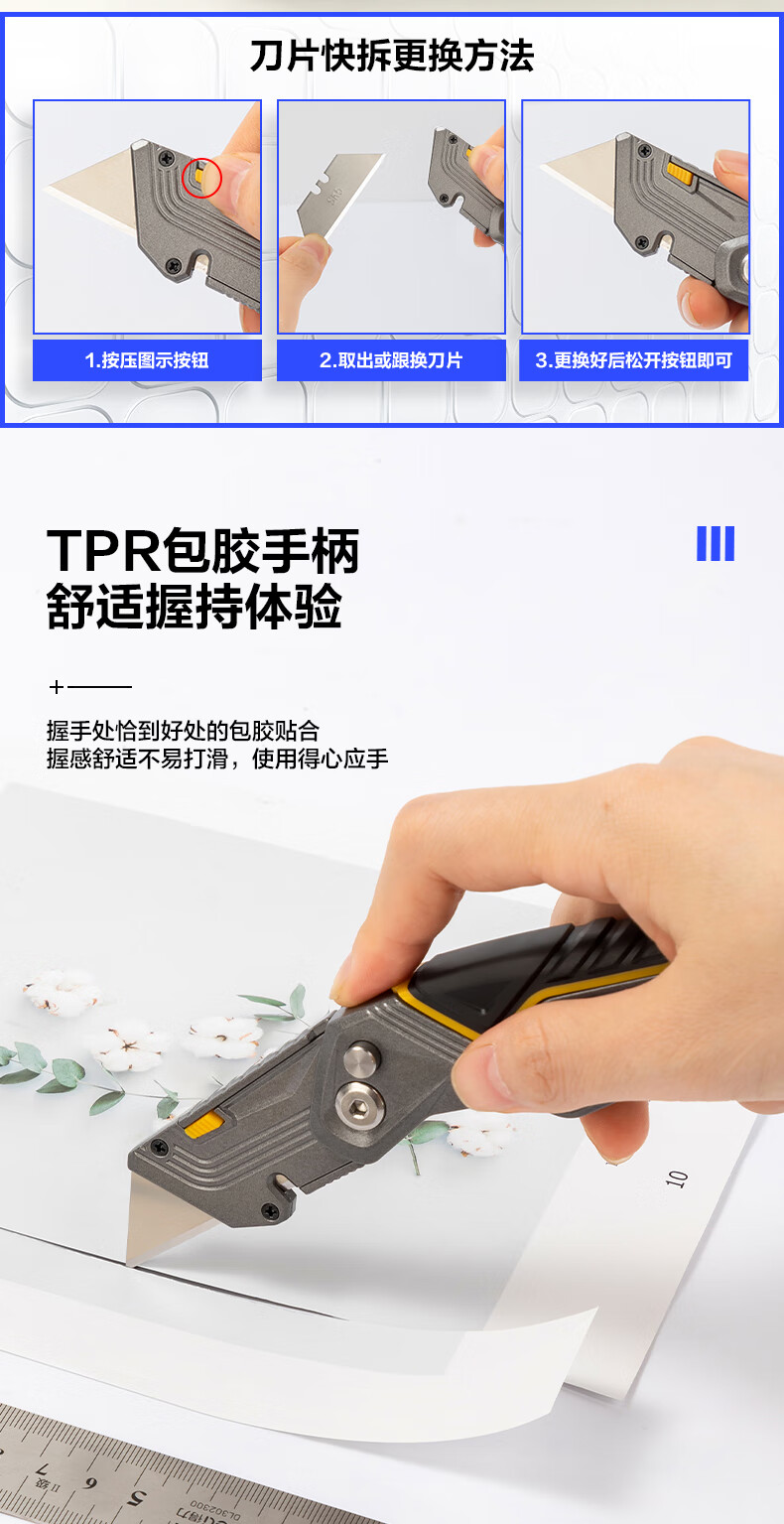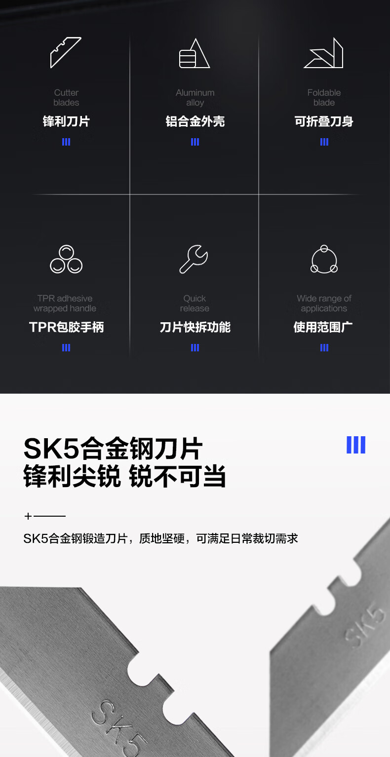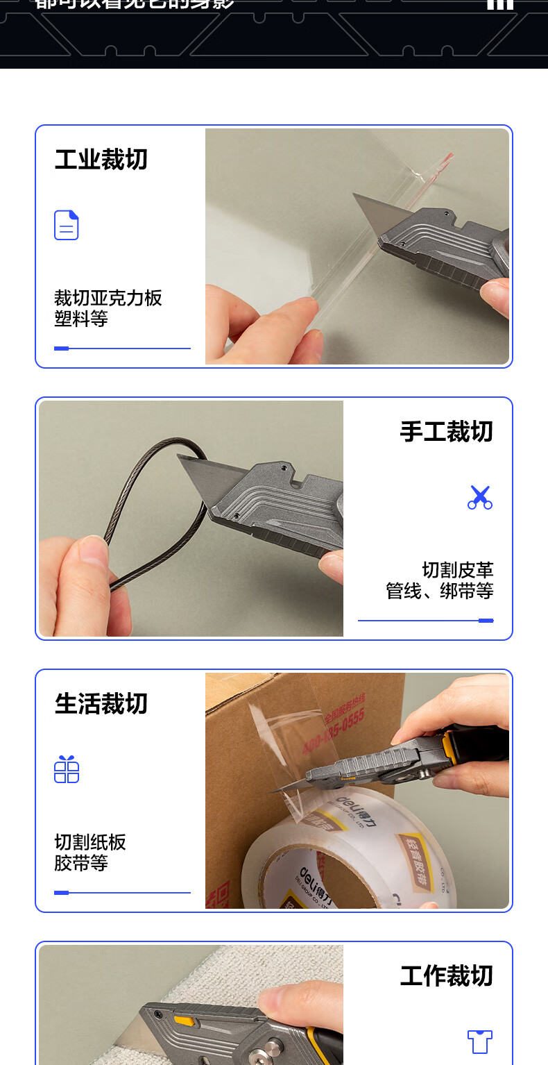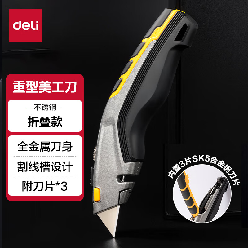 得力(deli)重型多功能美工刀 锌合金工业工具刀 重型全钢加厚【合金升级】灰TD600