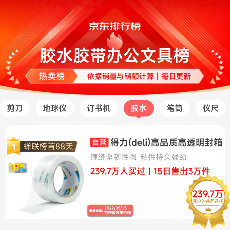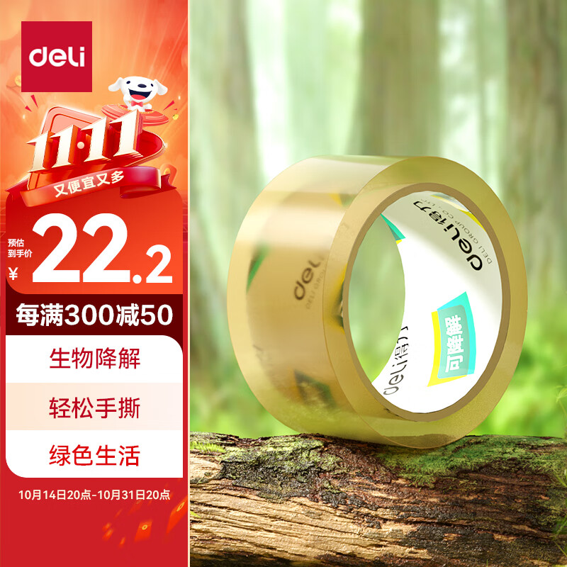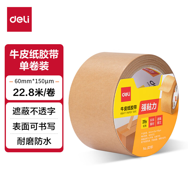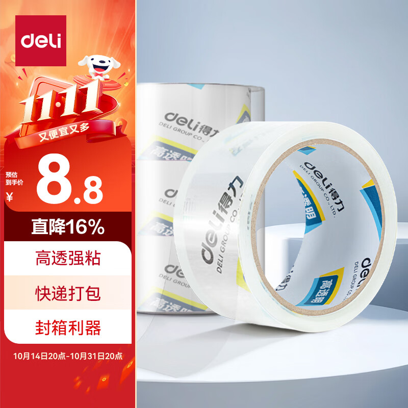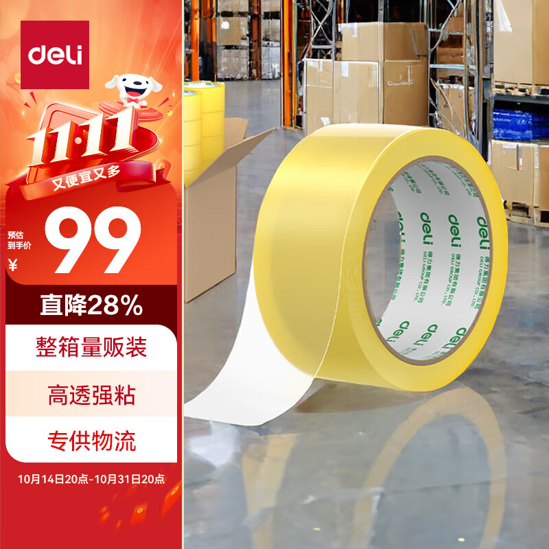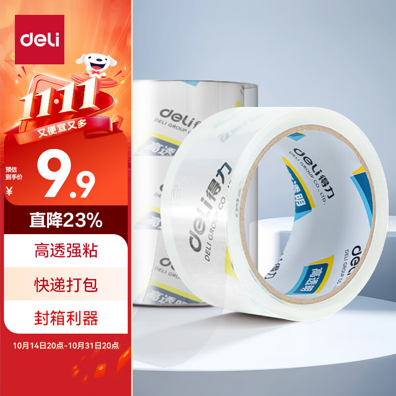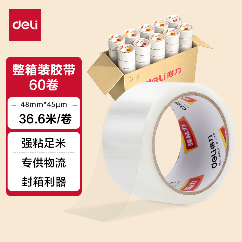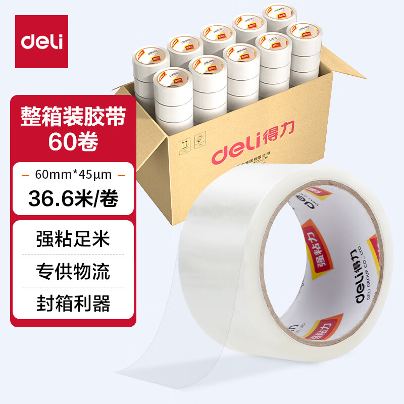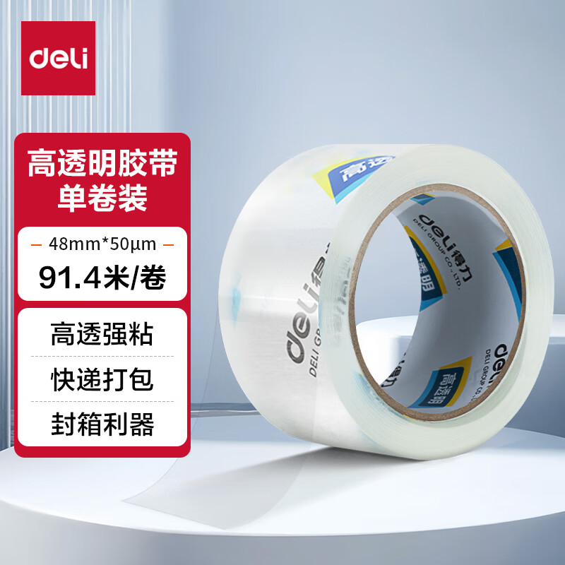 【超级爆款】得力(deli)高品质高透明封箱胶带/打包胶带 60mm*100y*50um(91.4m/卷) 单卷装 办公用品 30369