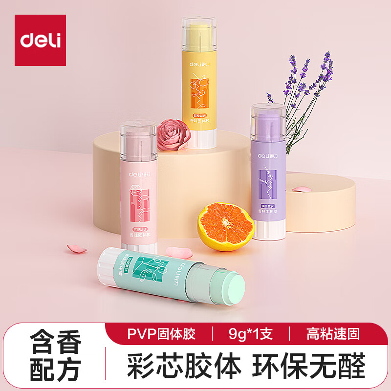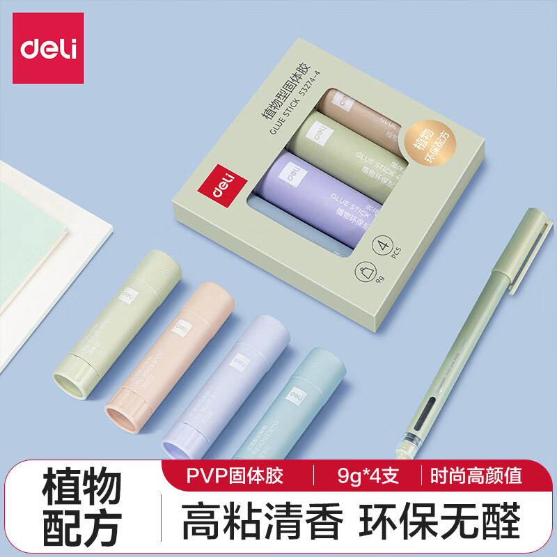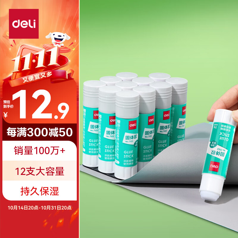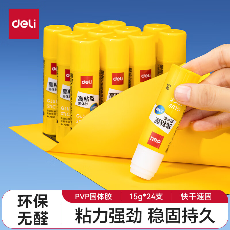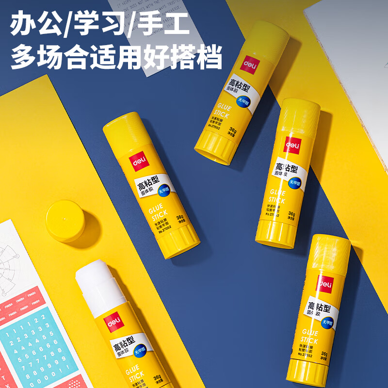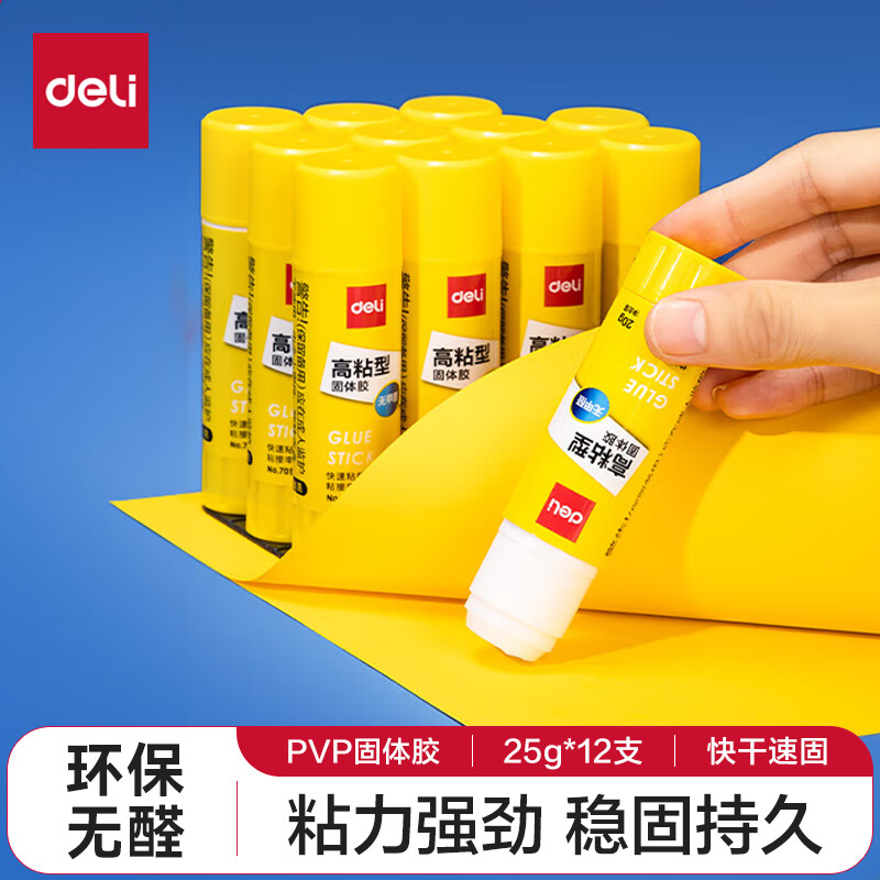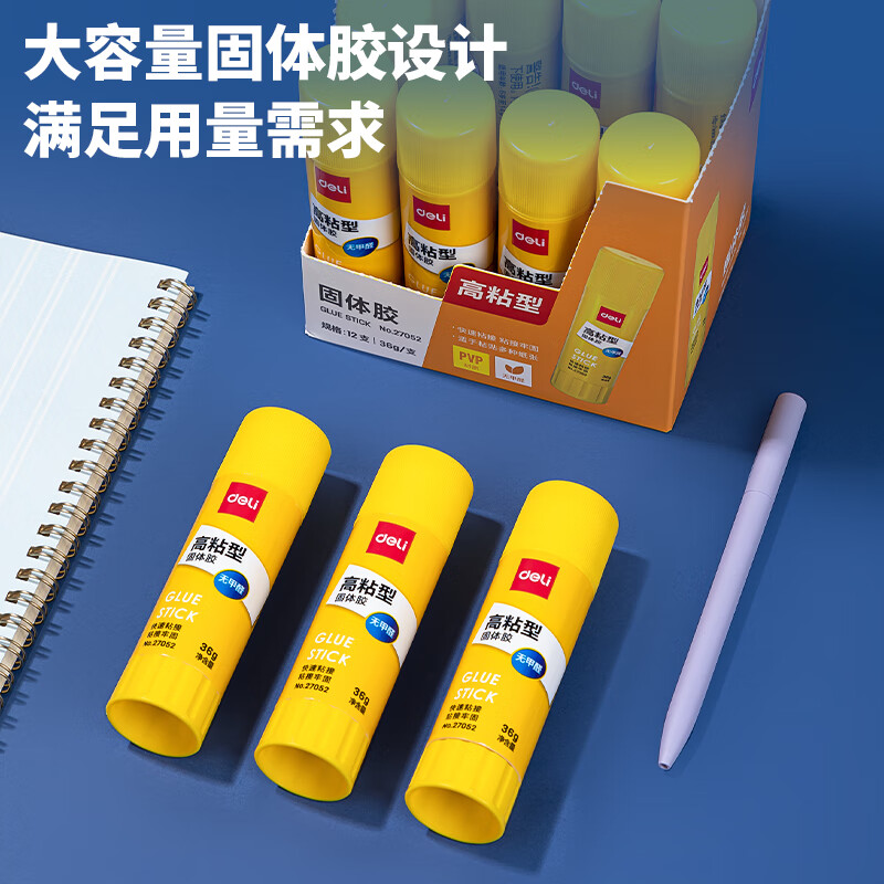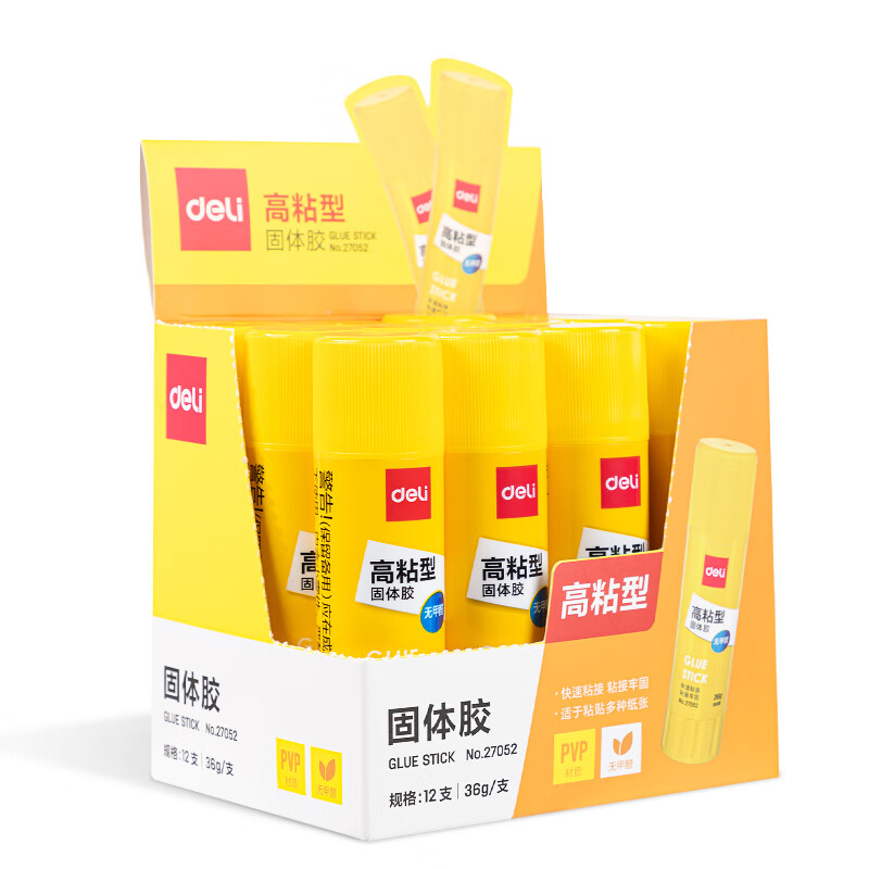 【全网低价】得力(deli)36g高粘度PVP固体胶水 强力粘接 无甲醛快干耐用胶棒 学生文具 12支装 办公用品 27052