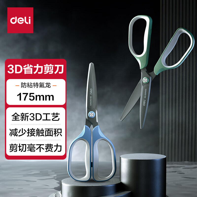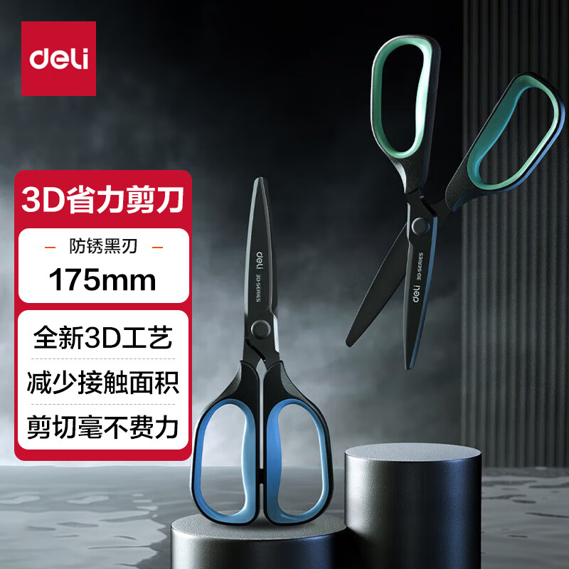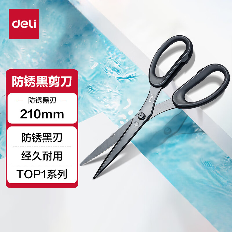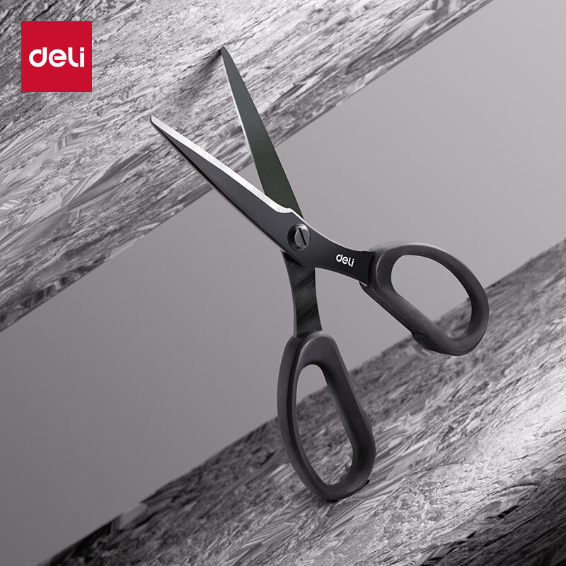 【超级爆款】得力(deli)175mm人机造型剪刀 黑刃防锈 家用生活剪子 学生剪纸刀 办公用品 黑77790