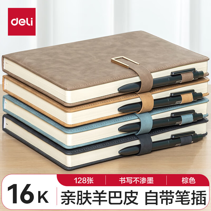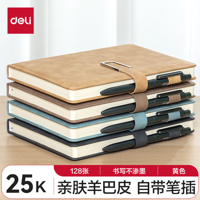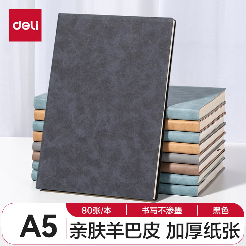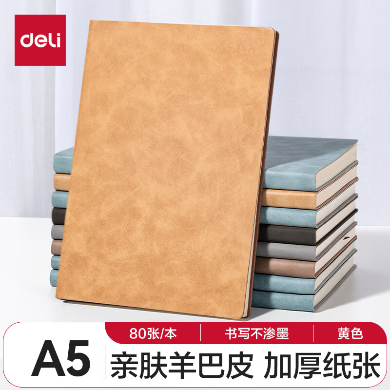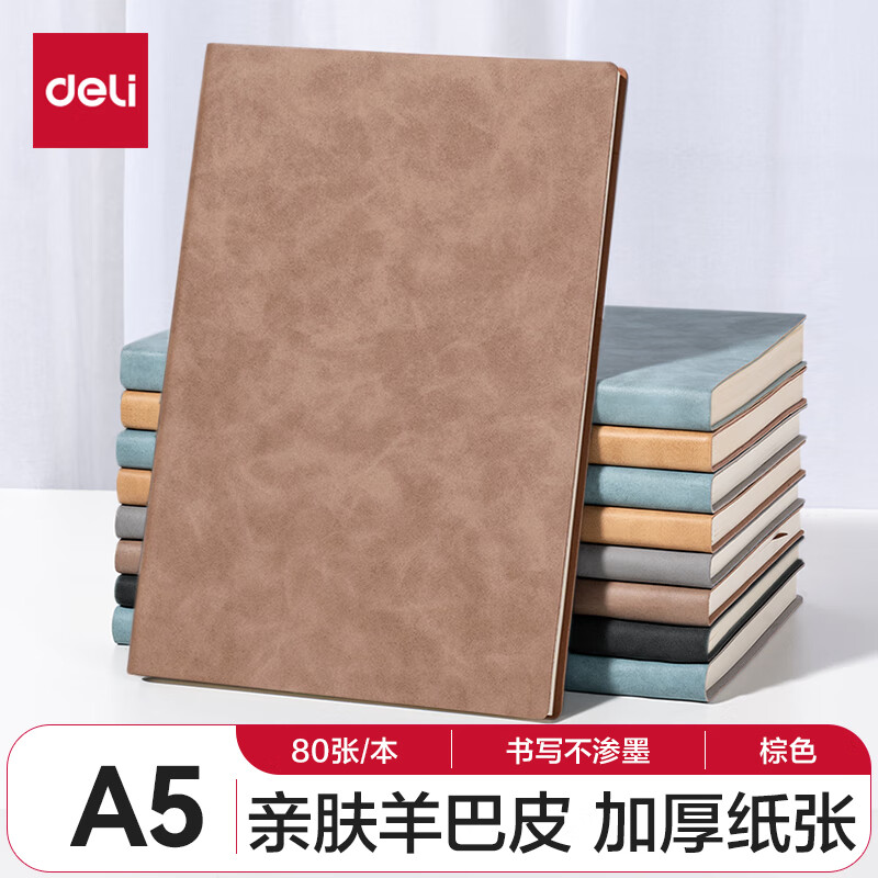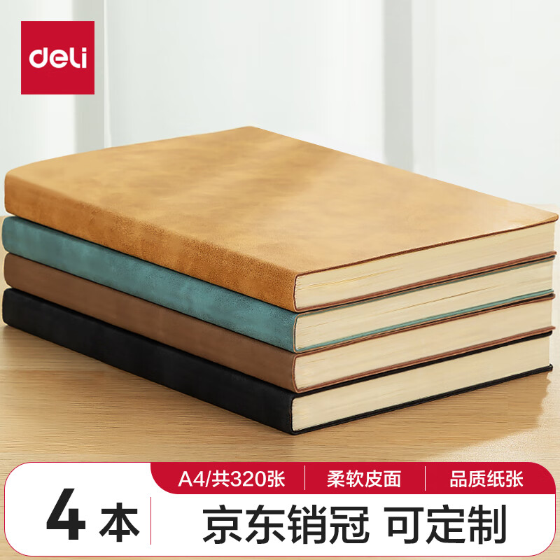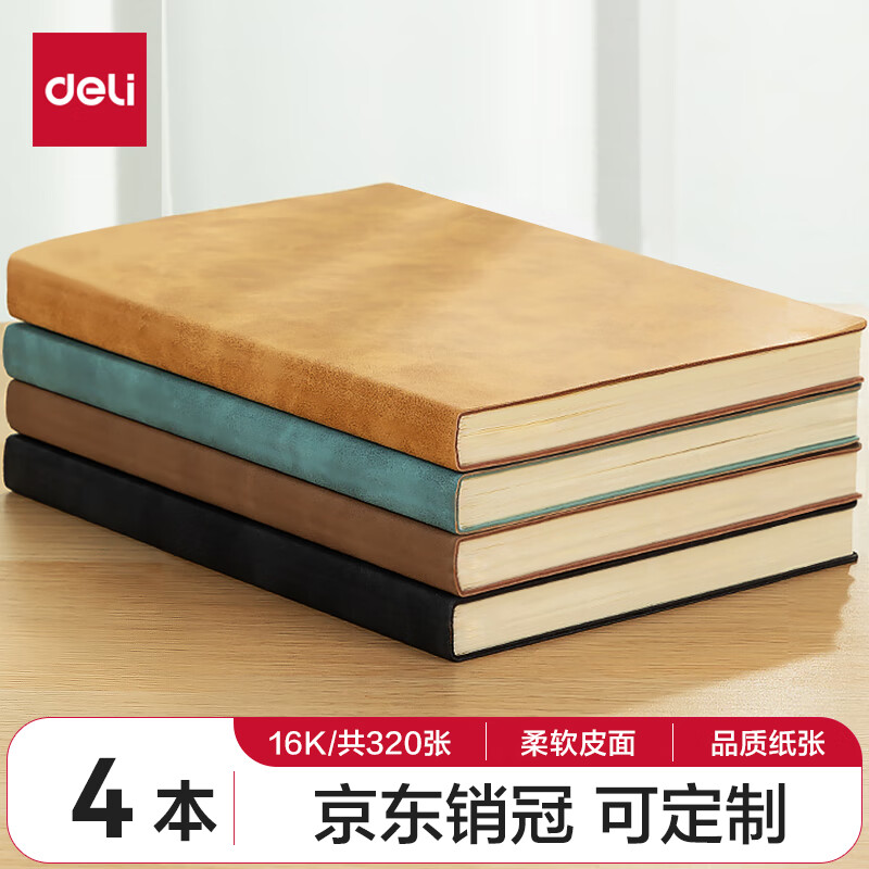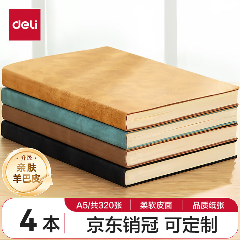 得力(deli) 4本装笔记本本子羊巴皮面本日记本记事本办公 学习用品 A5/80张 BP107