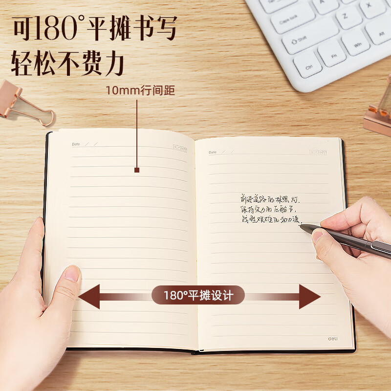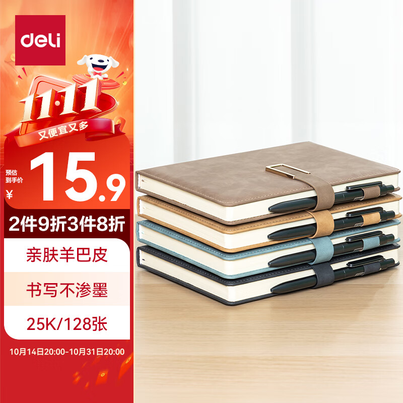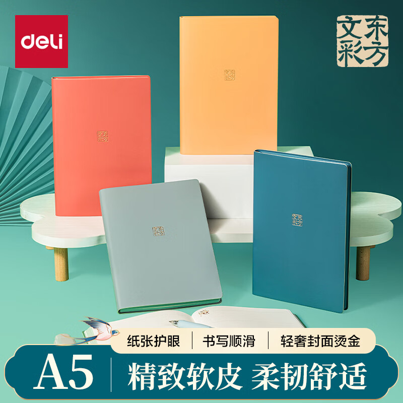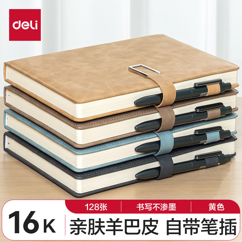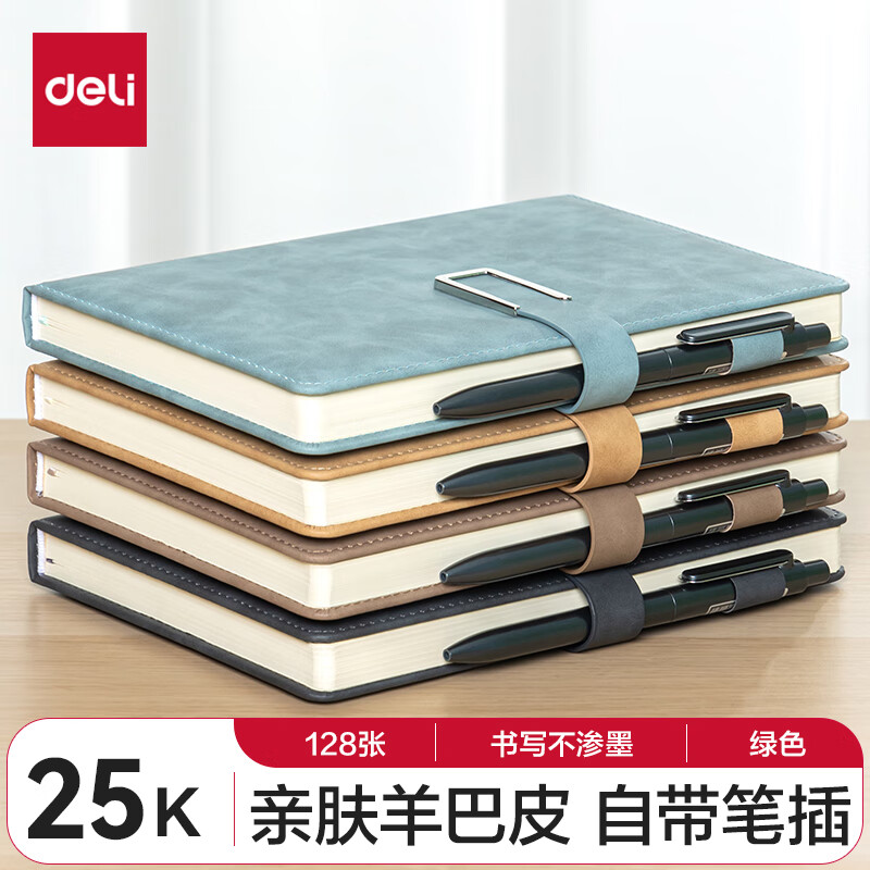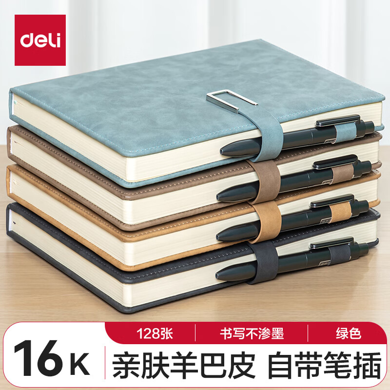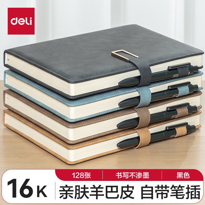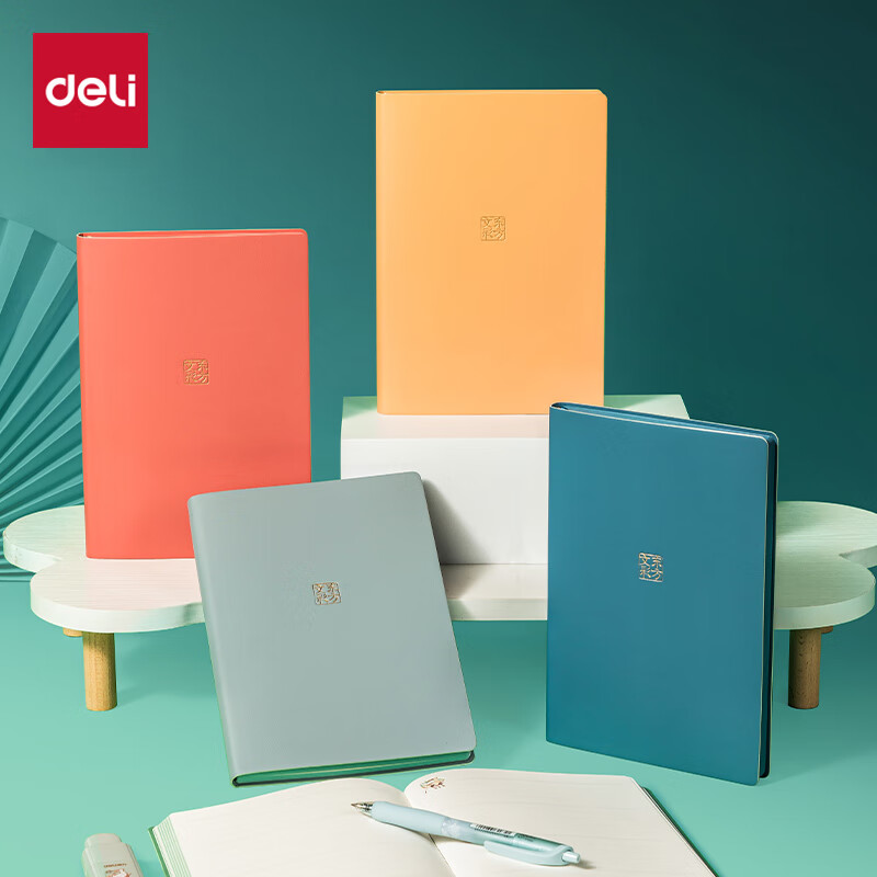 得力(deli) 4本装笔记本本子羊巴皮面本日记本记事本办公 学习用品 A5/80张 BP107