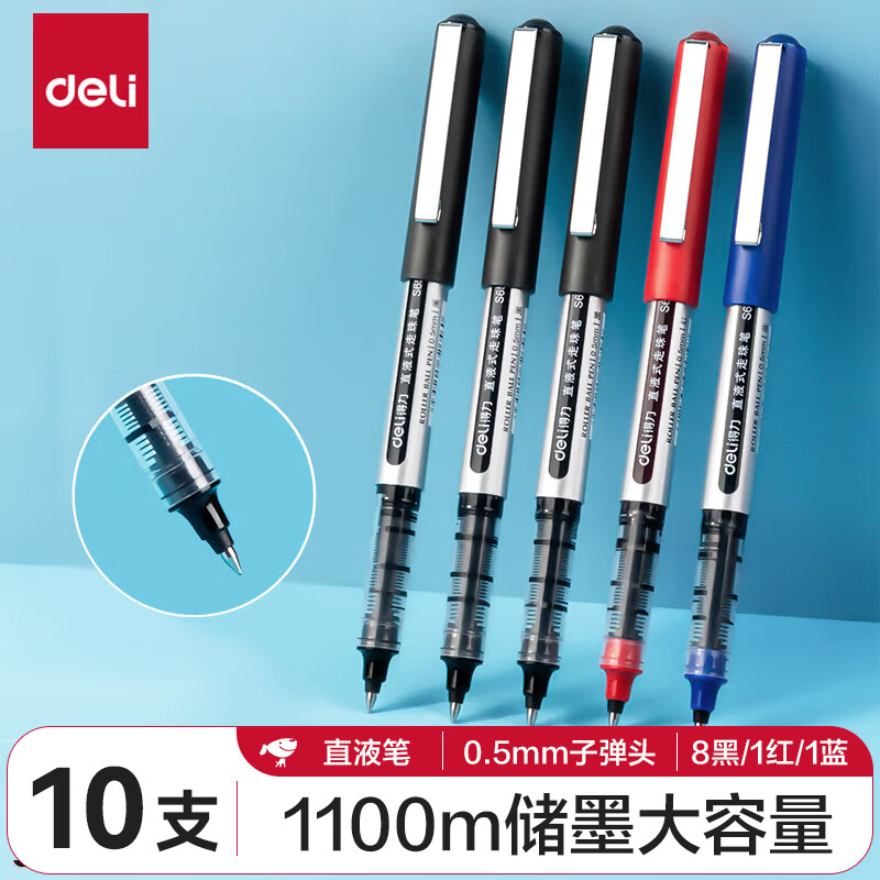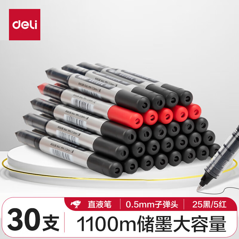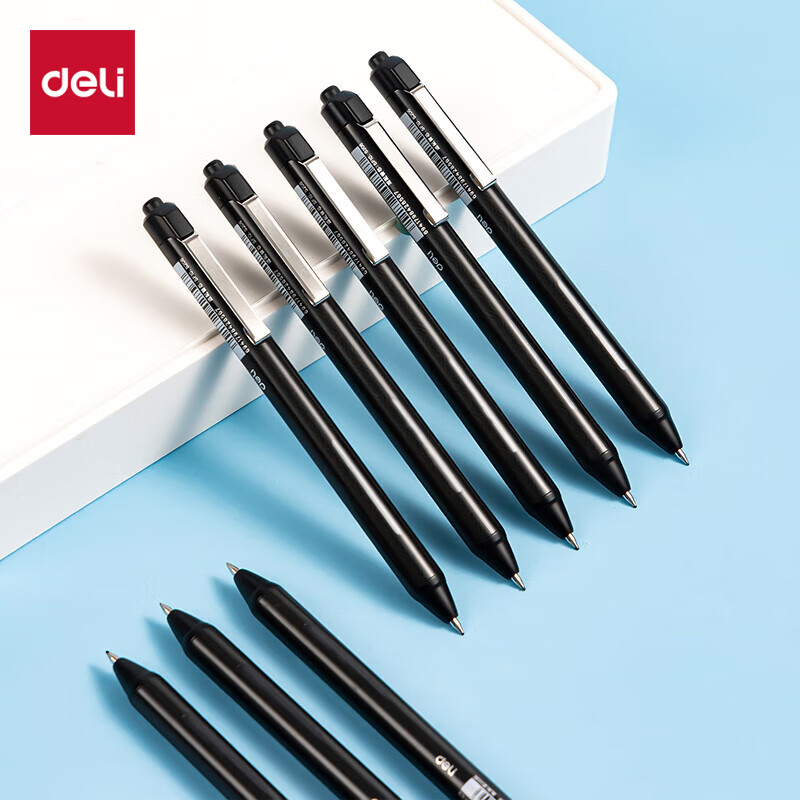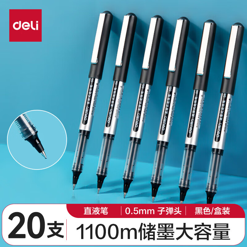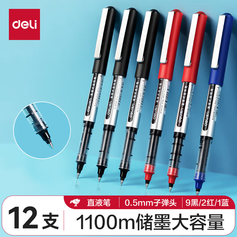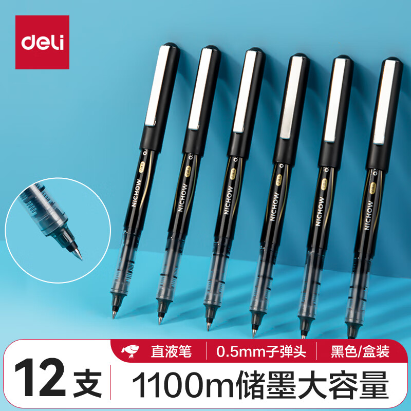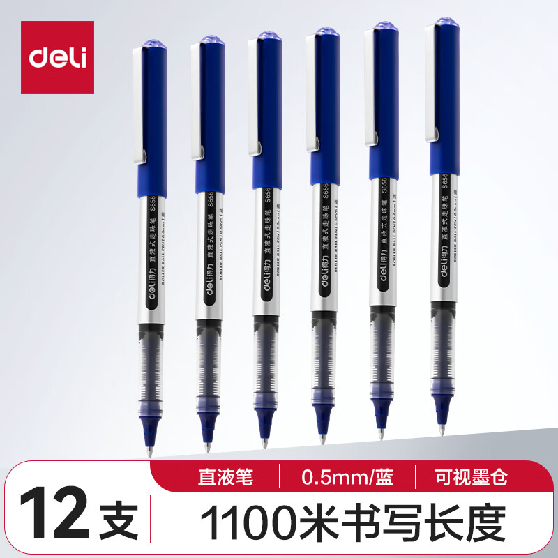 得力(deli)直液笔中性笔 0.5mm子弹头签字笔学生考试笔走珠笔水笔 黑色 办公用品12支/盒S656