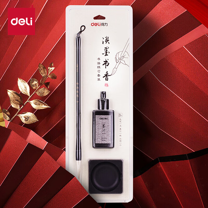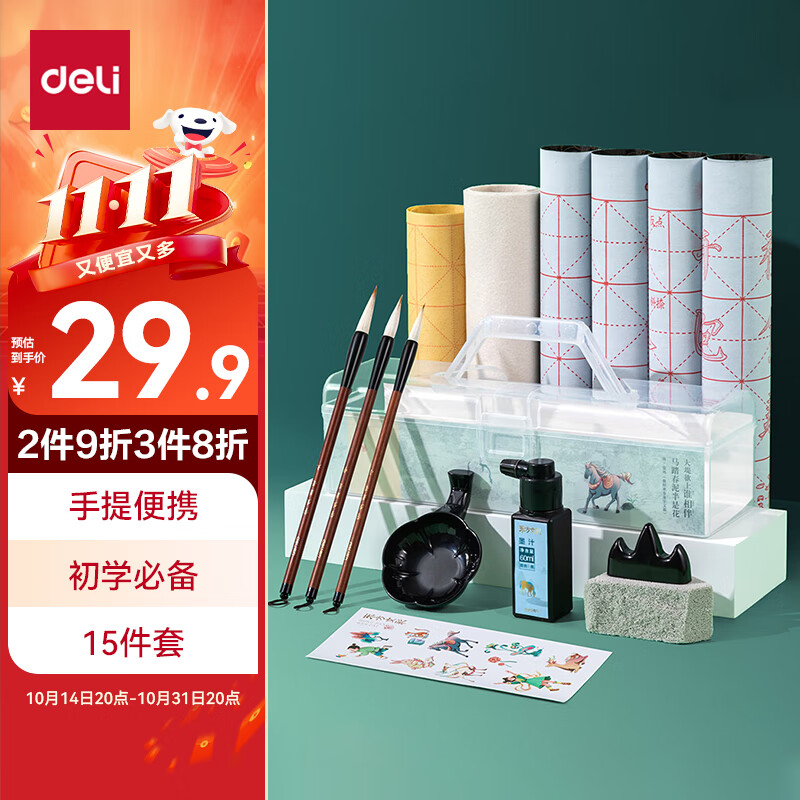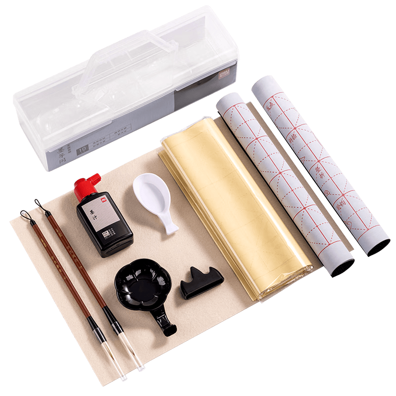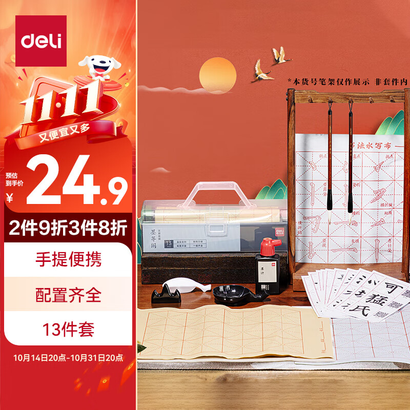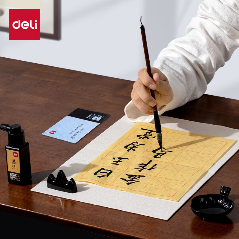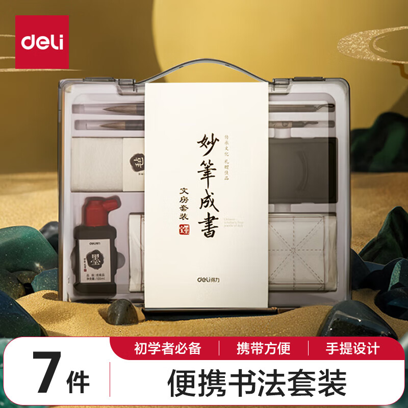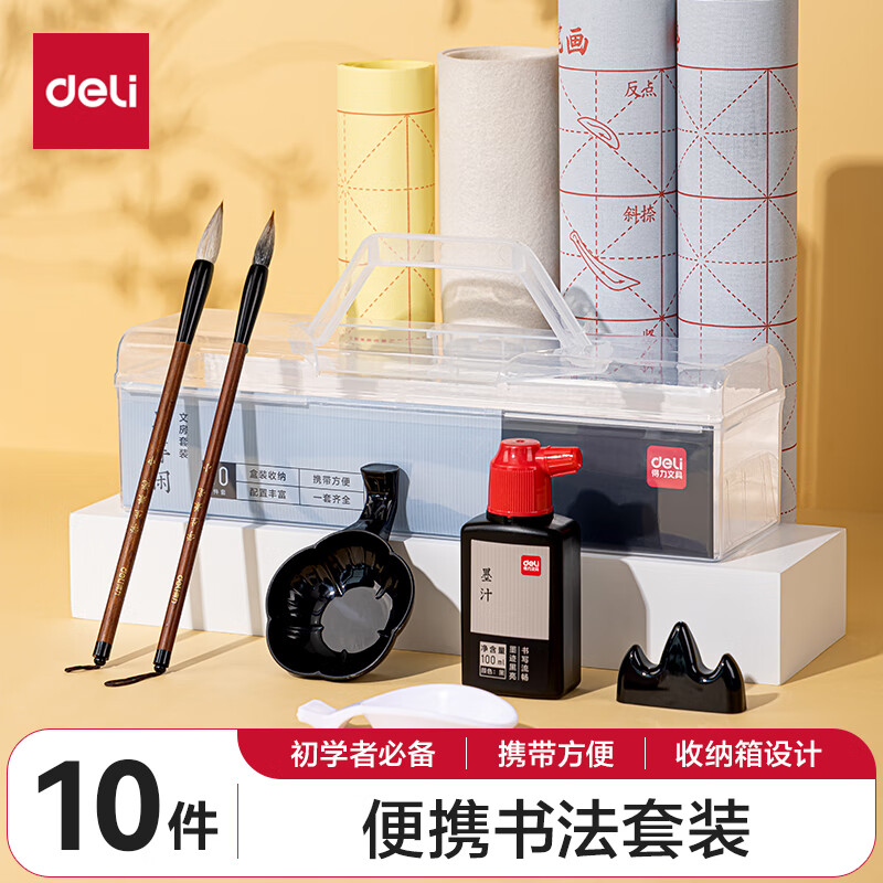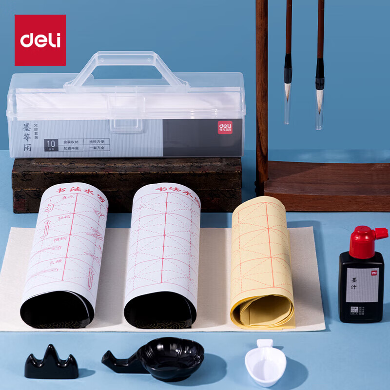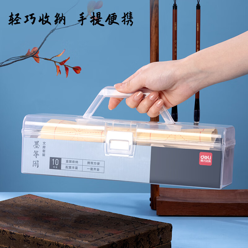 得力文房用品 书法套装文房四宝毛笔砚台书法工具初学者入门临摹 工具箱文房套装10件套礼物