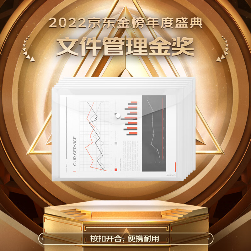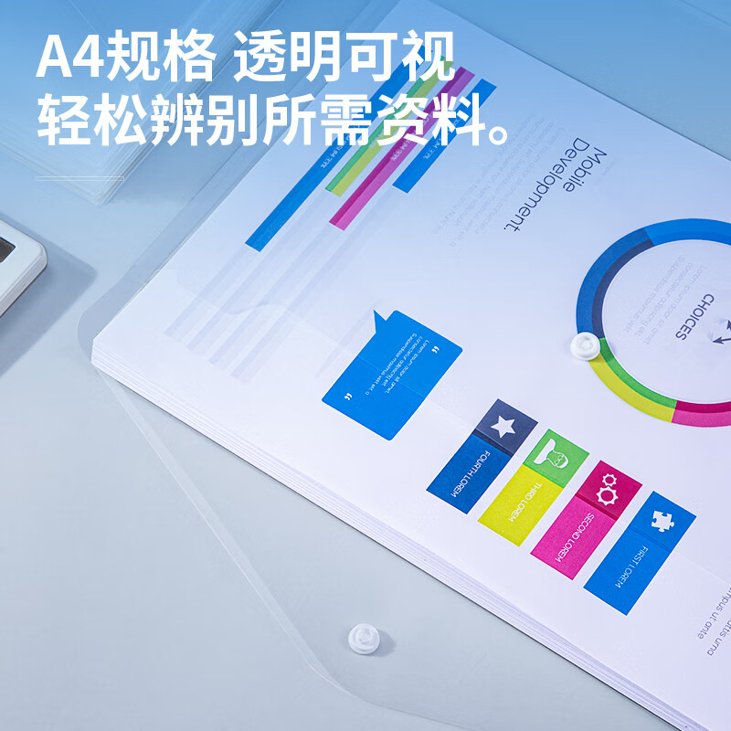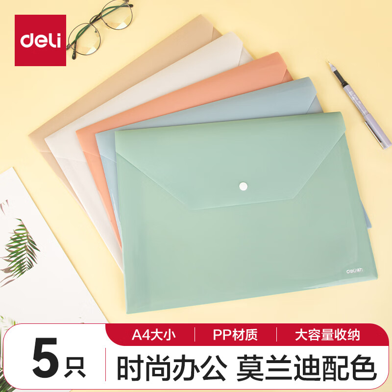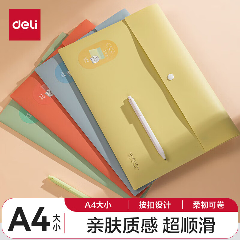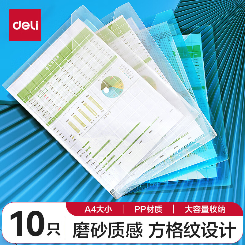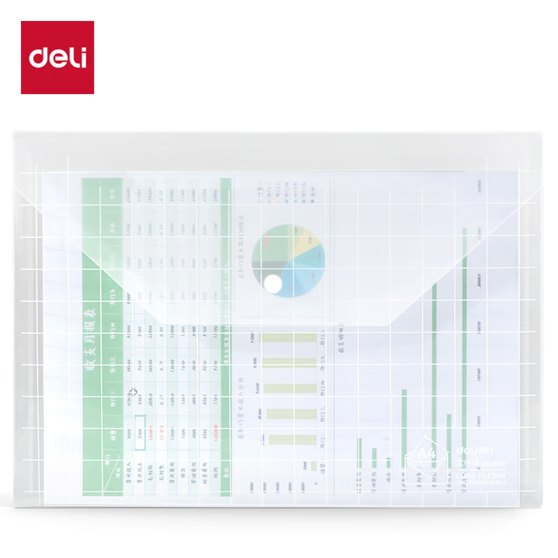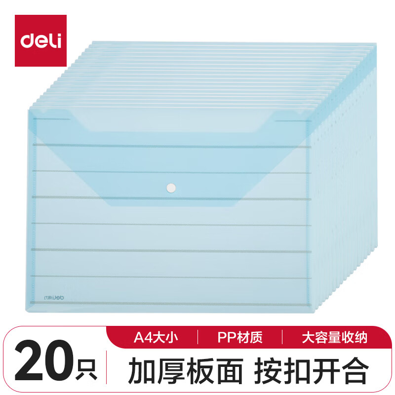 【超级爆款】得力(deli)20只A4按扣学生桌面透明文件袋 试卷收纳文件套 塑料防水档案袋 学习用品 27008