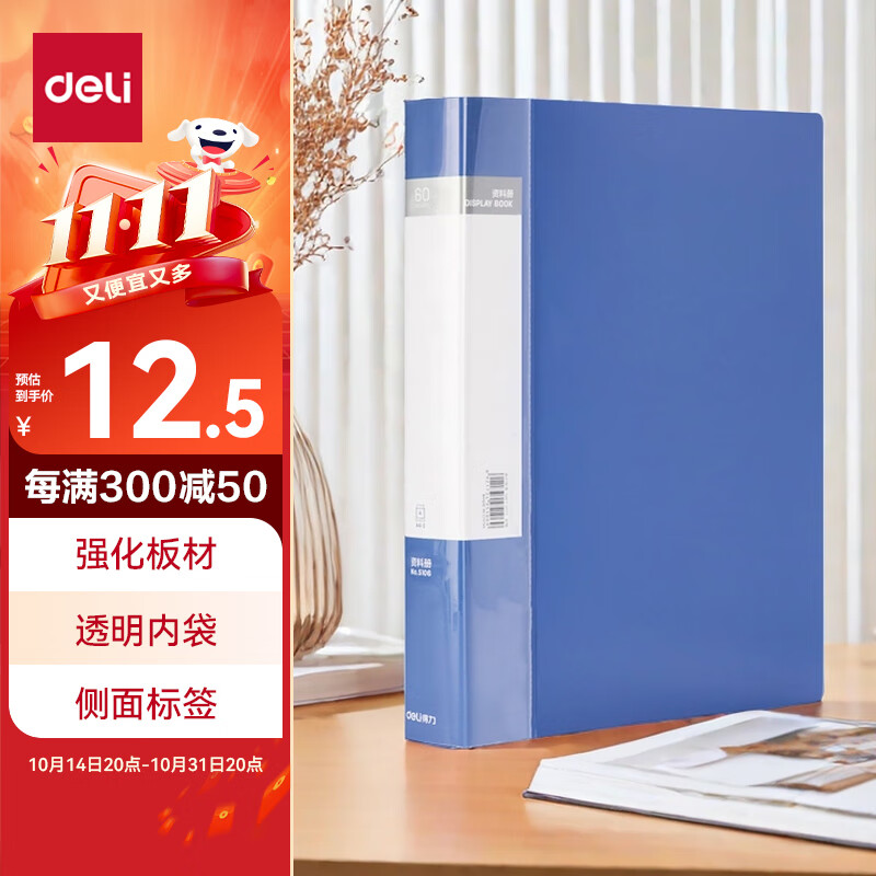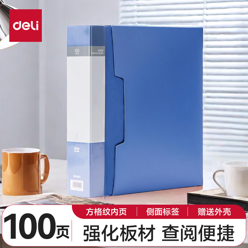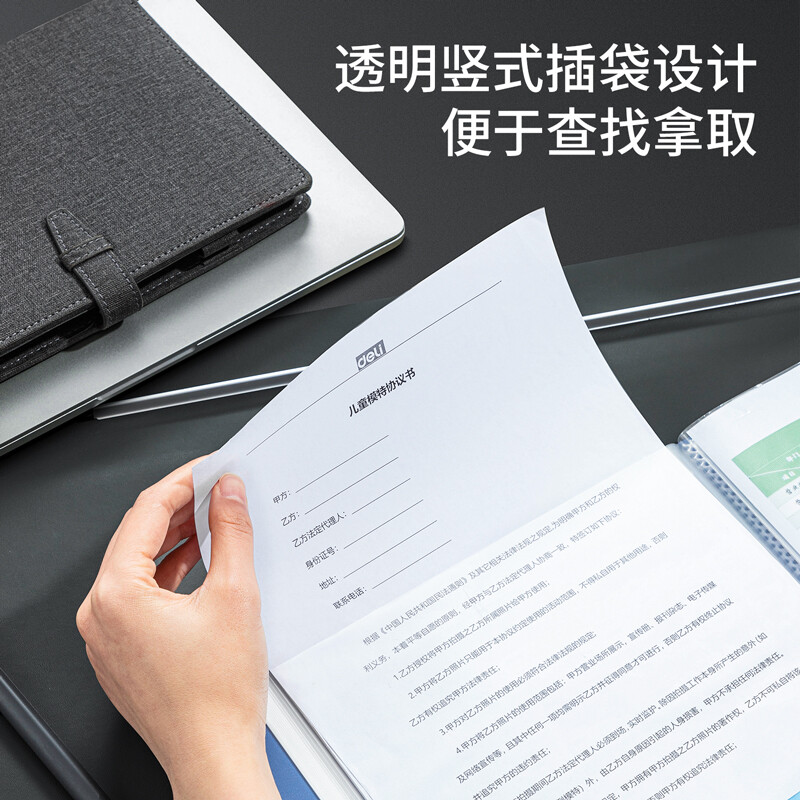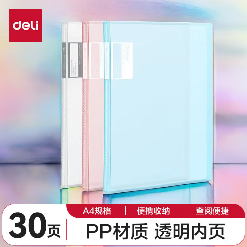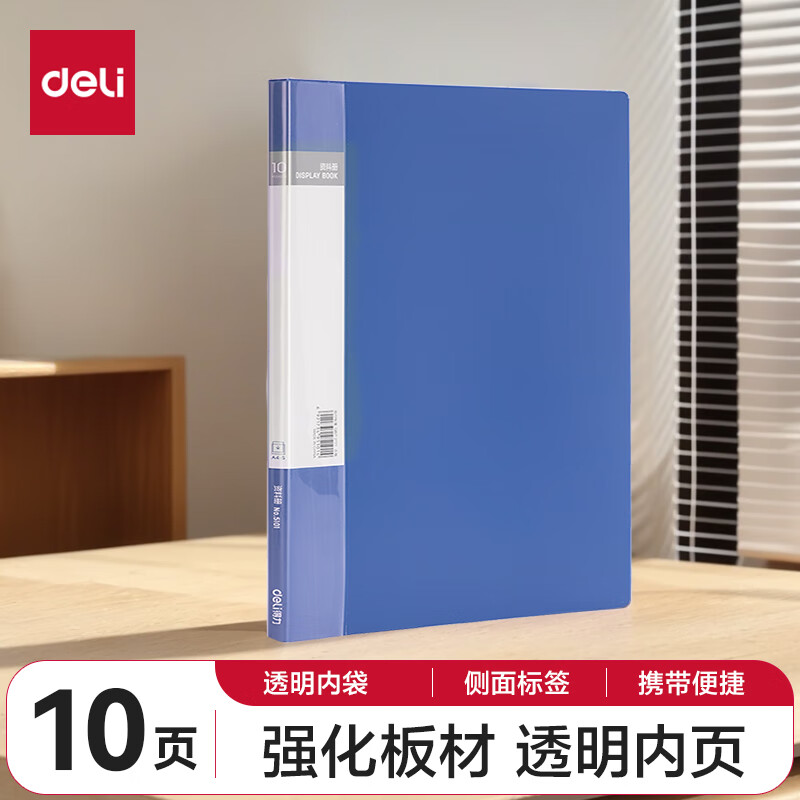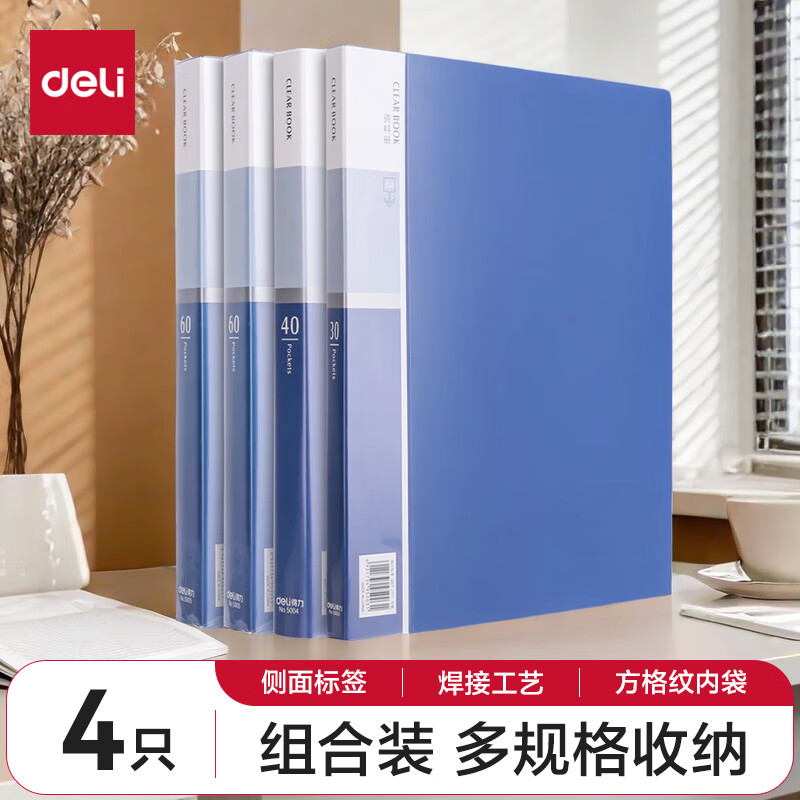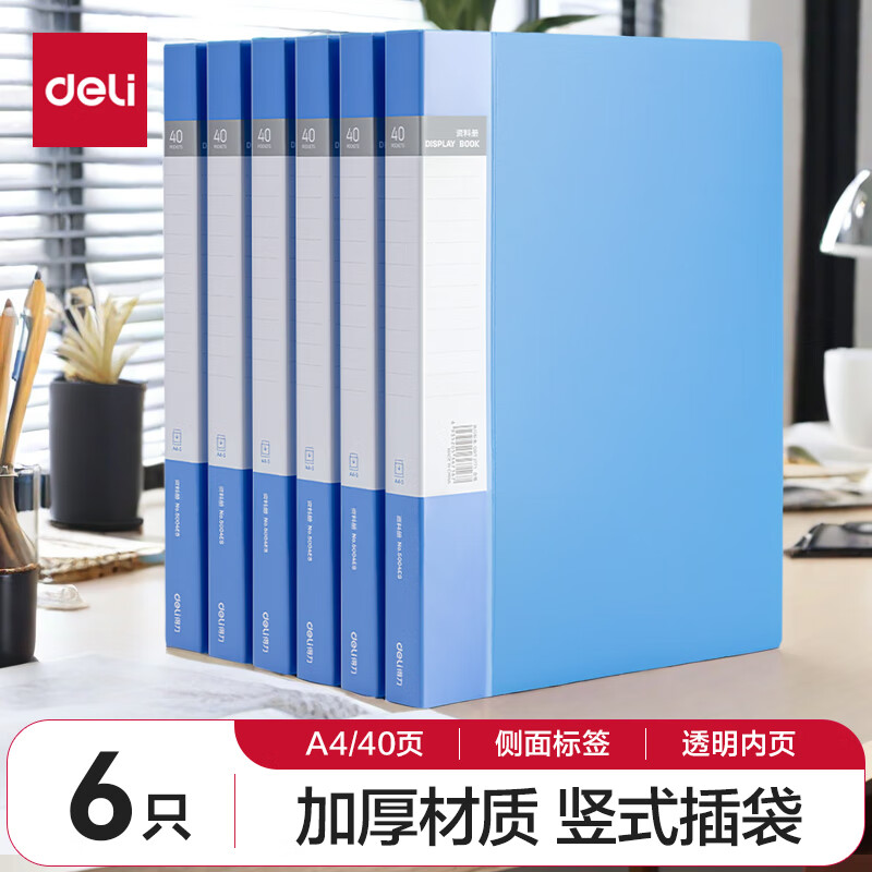 得力(deli)6只A4/60页资料册插袋文件夹商务档案活页收纳夹标书合同票证收纳33436