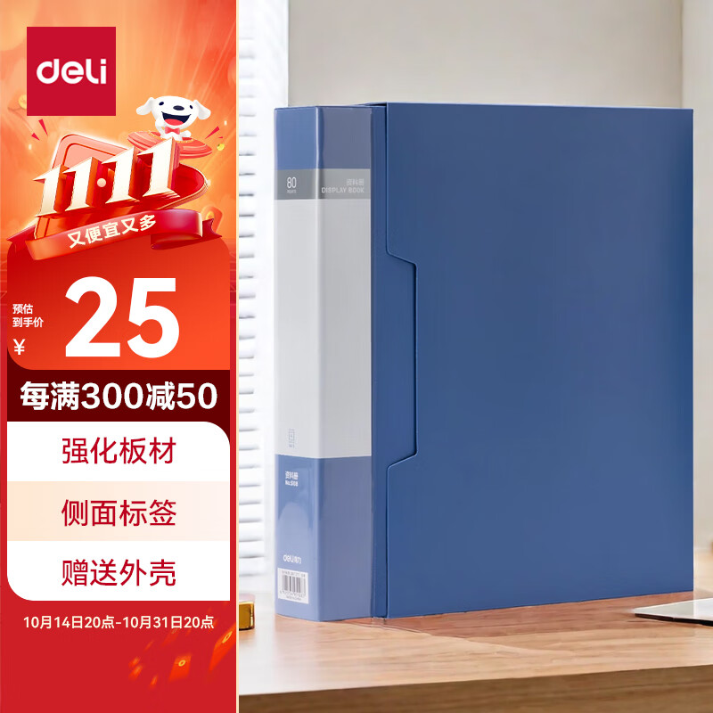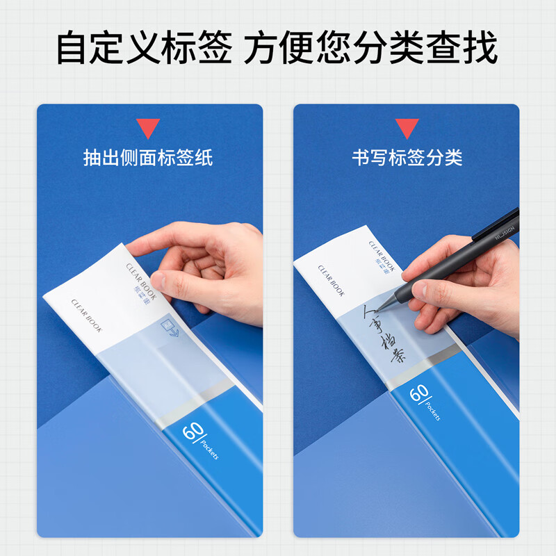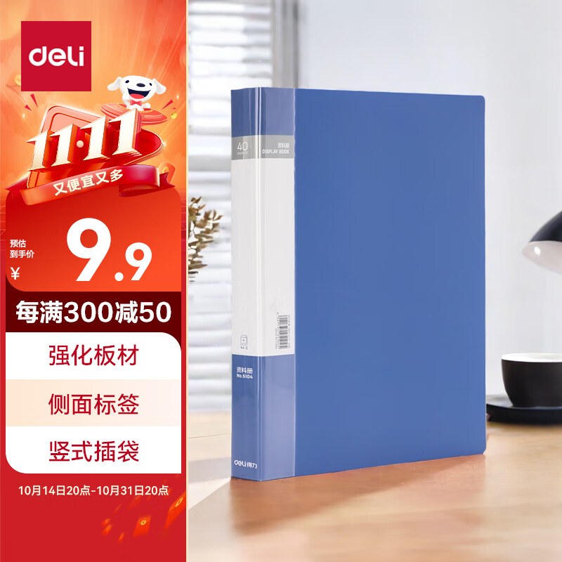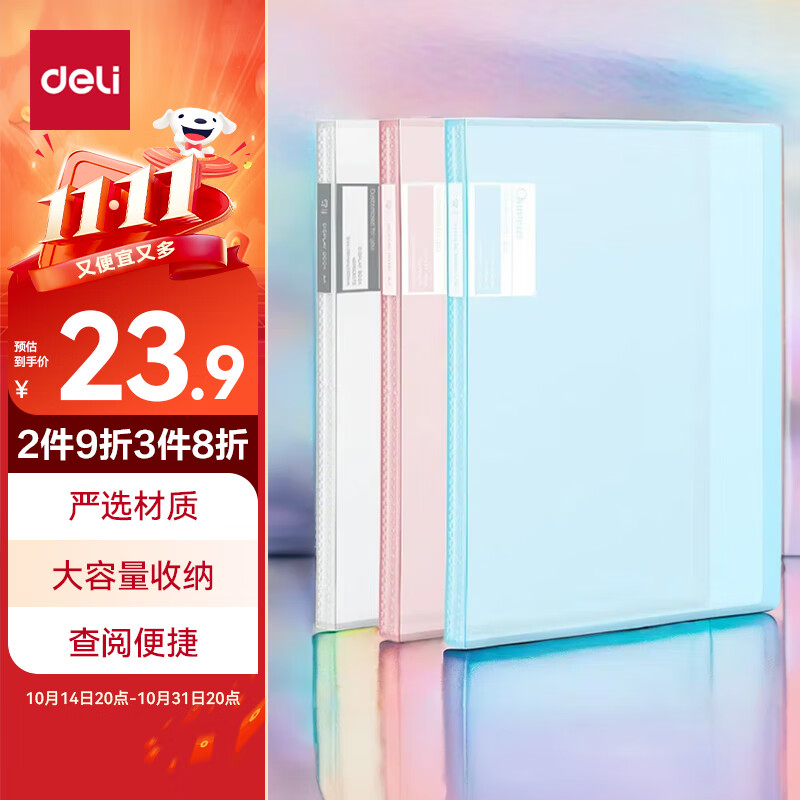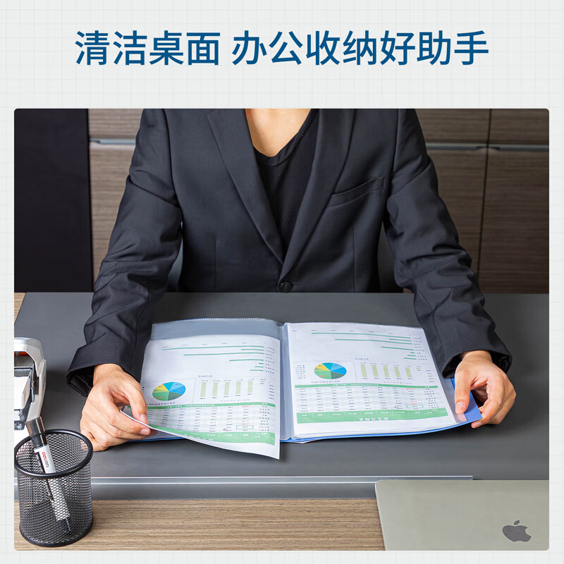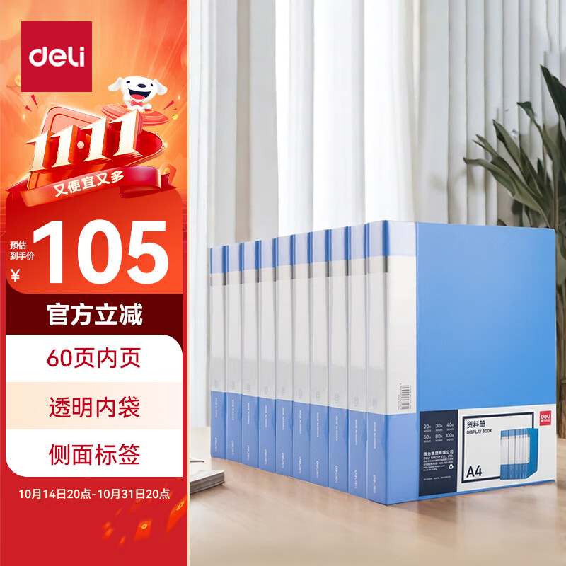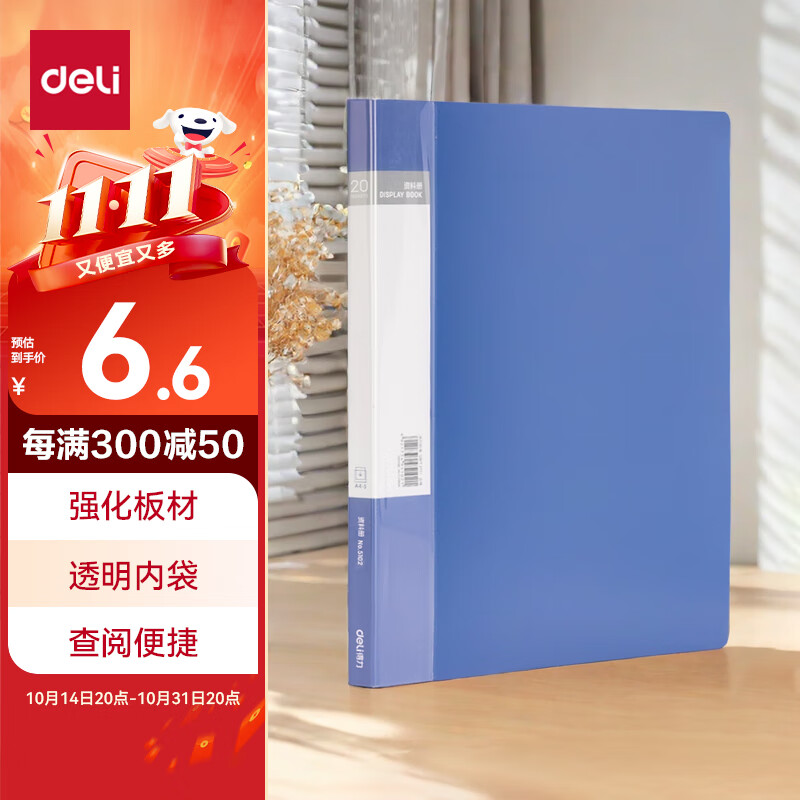 得力(deli)6只A4/60页资料册插袋文件夹商务档案活页收纳夹标书合同票证收纳33436