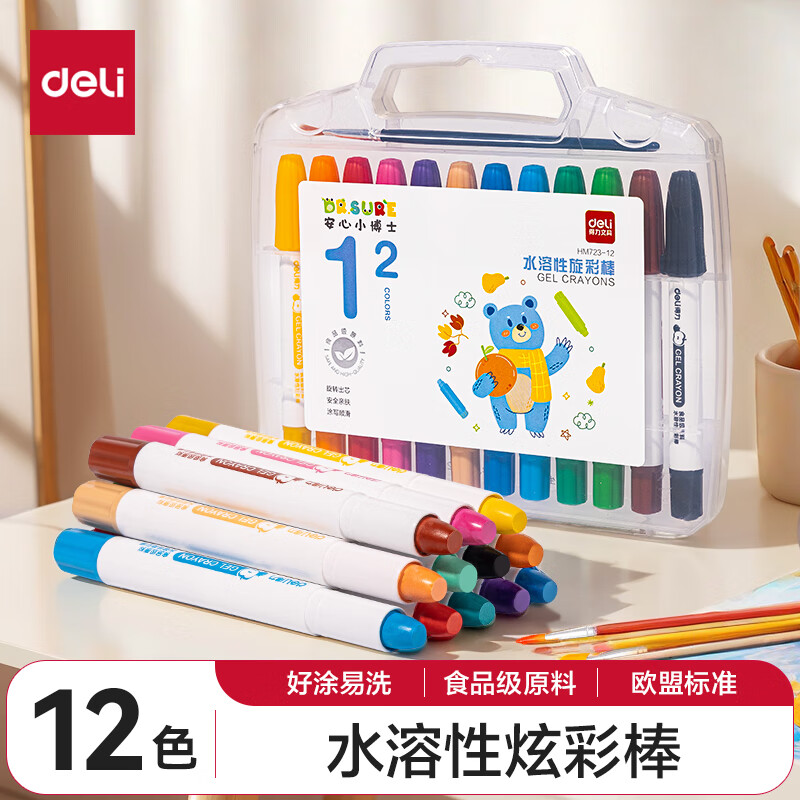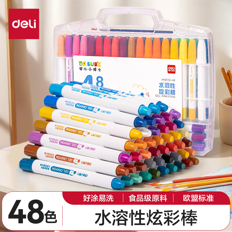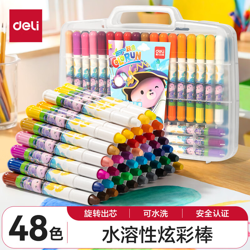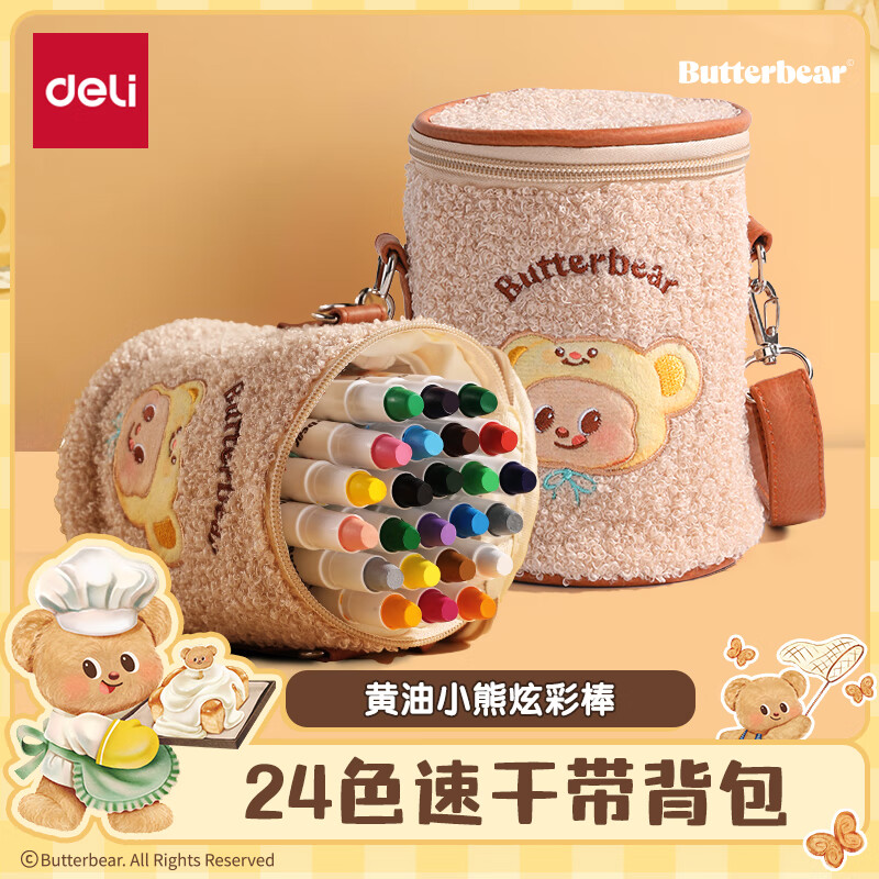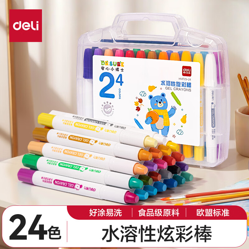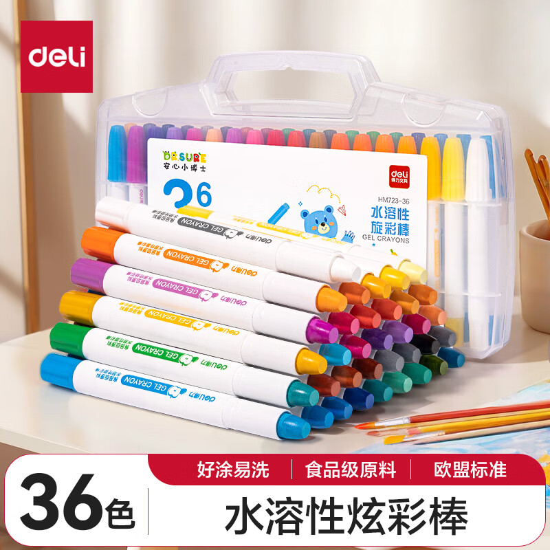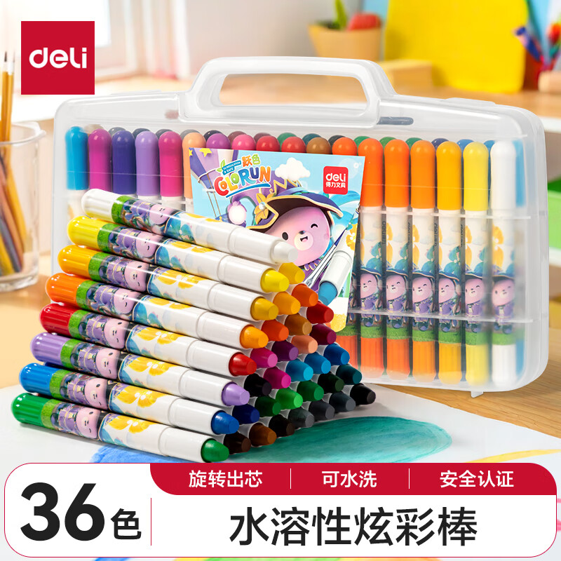 得力(deli)36色黄油小熊粗圆杆速干旋彩棒儿童丝滑蜡笔不脏手可水洗油画棒美术绘画工具礼物 HY903-36