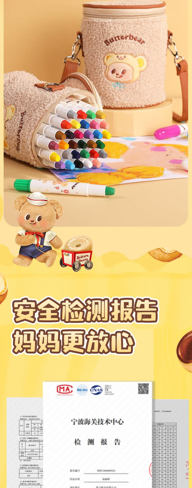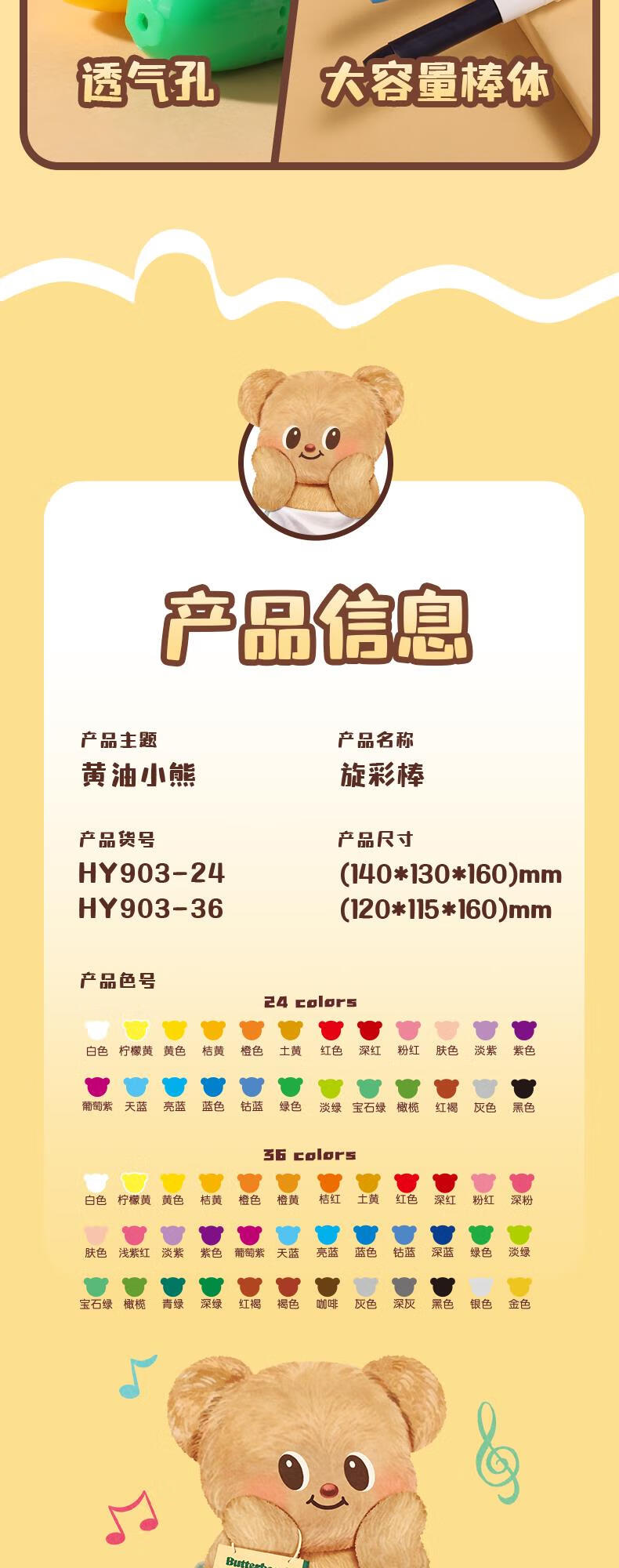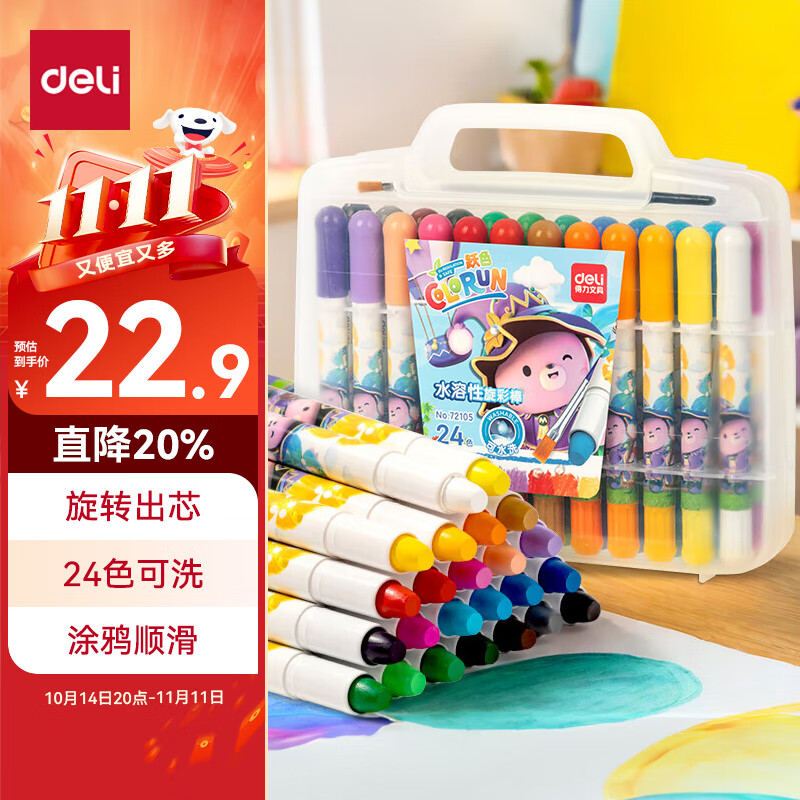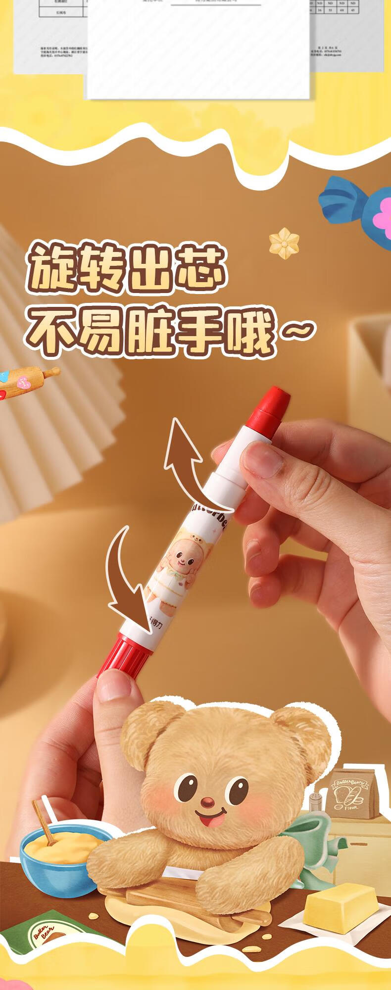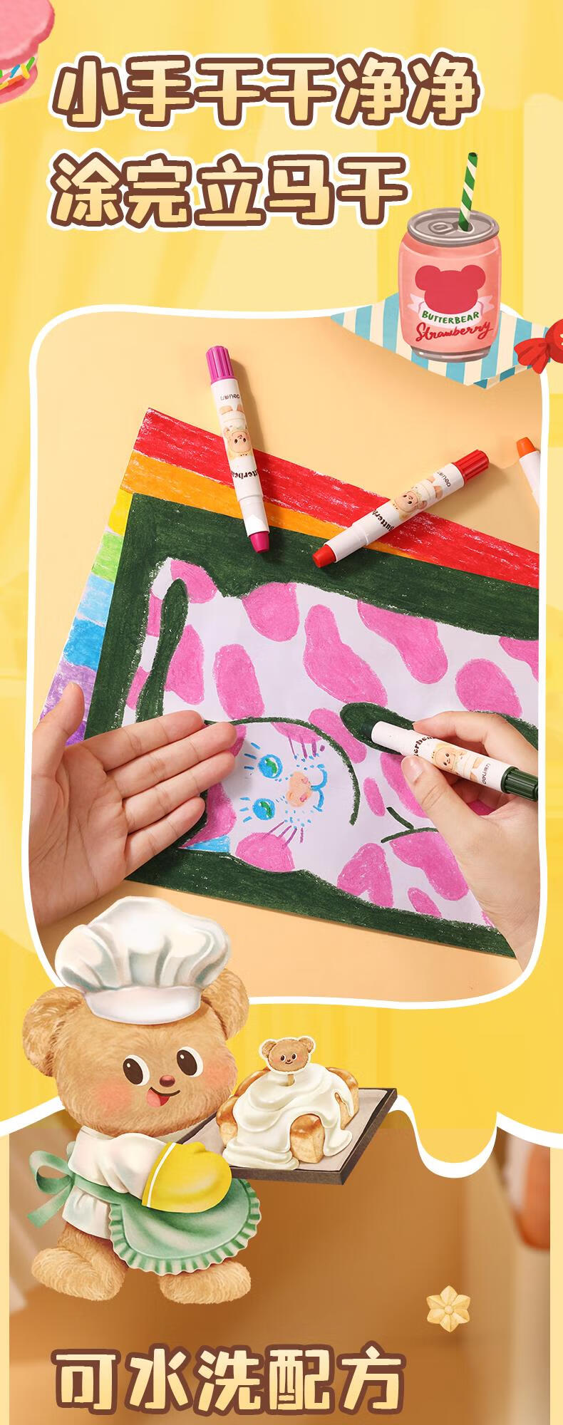 得力(deli)36色黄油小熊粗圆杆速干旋彩棒儿童丝滑蜡笔不脏手可水洗油画棒美术绘画工具礼物 HY903-36