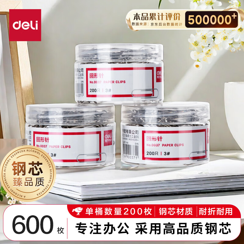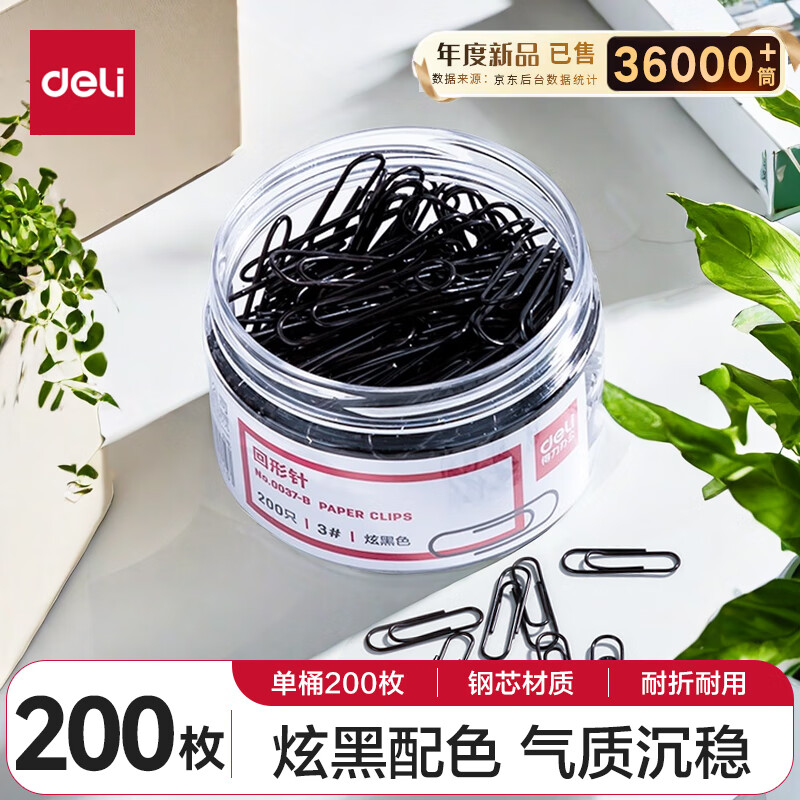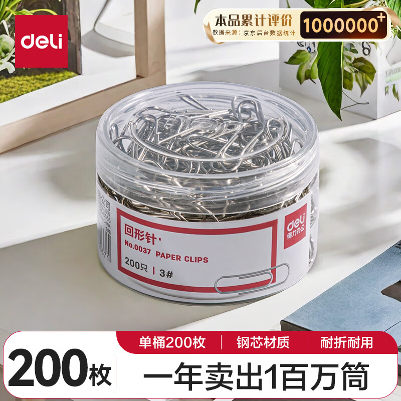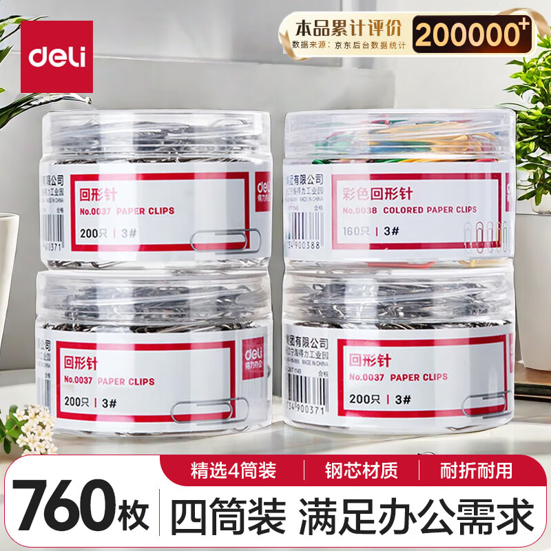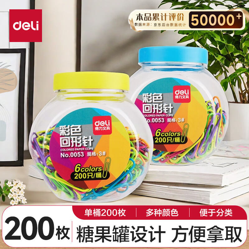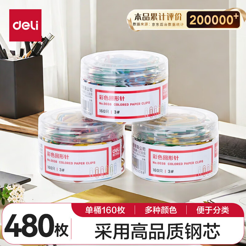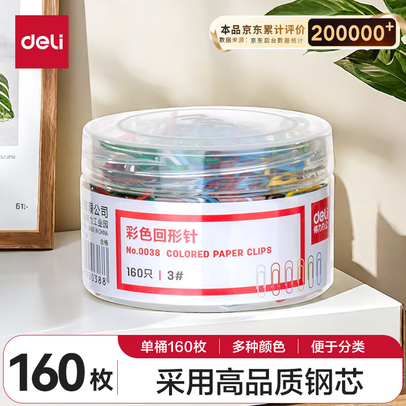 【超级爆款】得力(deli)29mm莫兰迪彩色回形针 3#金属曲别针 资料收纳整理用品160枚/筒 办公室文具用品 0038-A