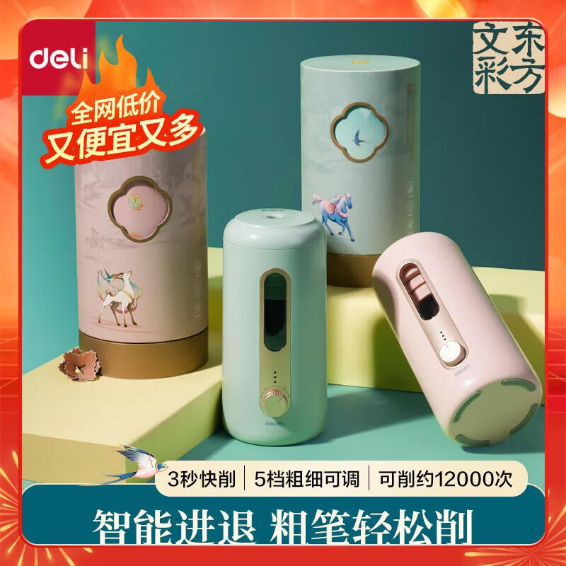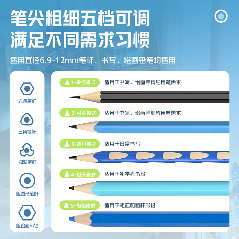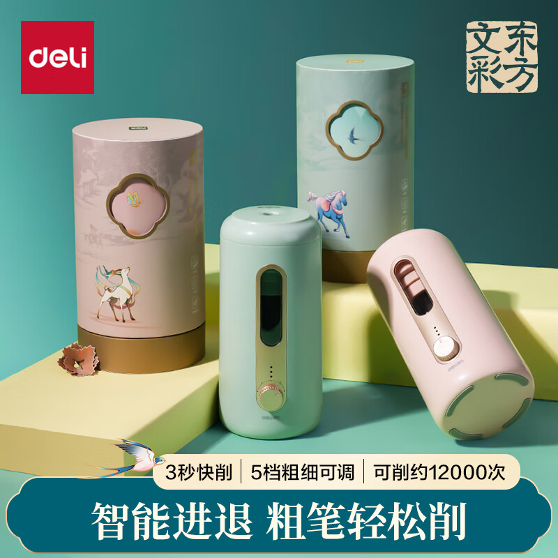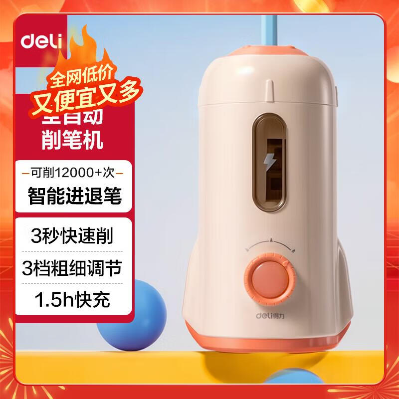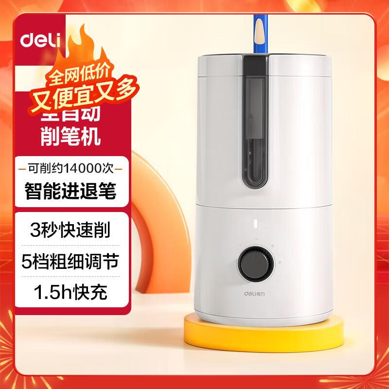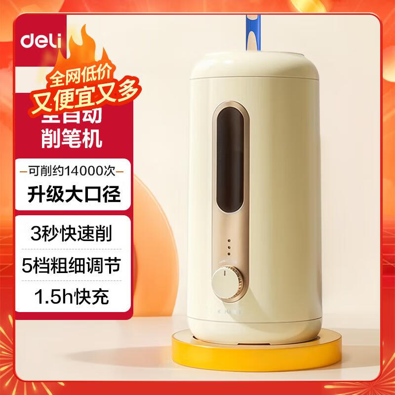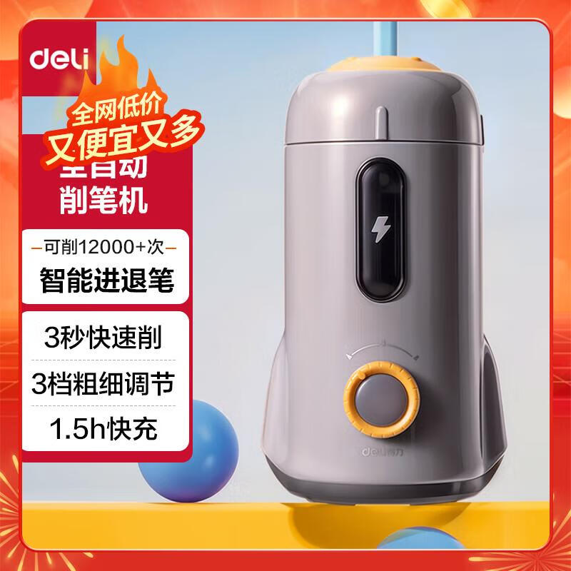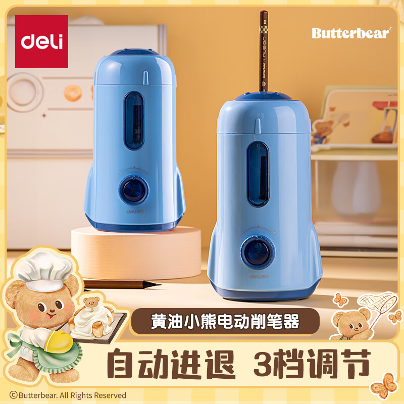 得力大口径全自动削笔器小学生开学文具电动削笔机12mm粗杆大三角铅笔儿童转笔刀卷笔刀蓝色