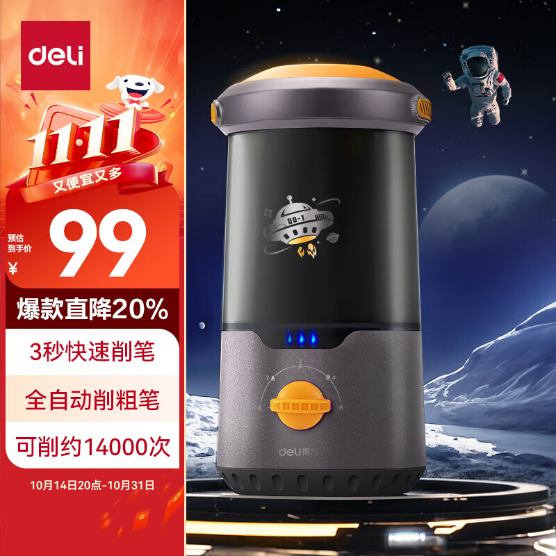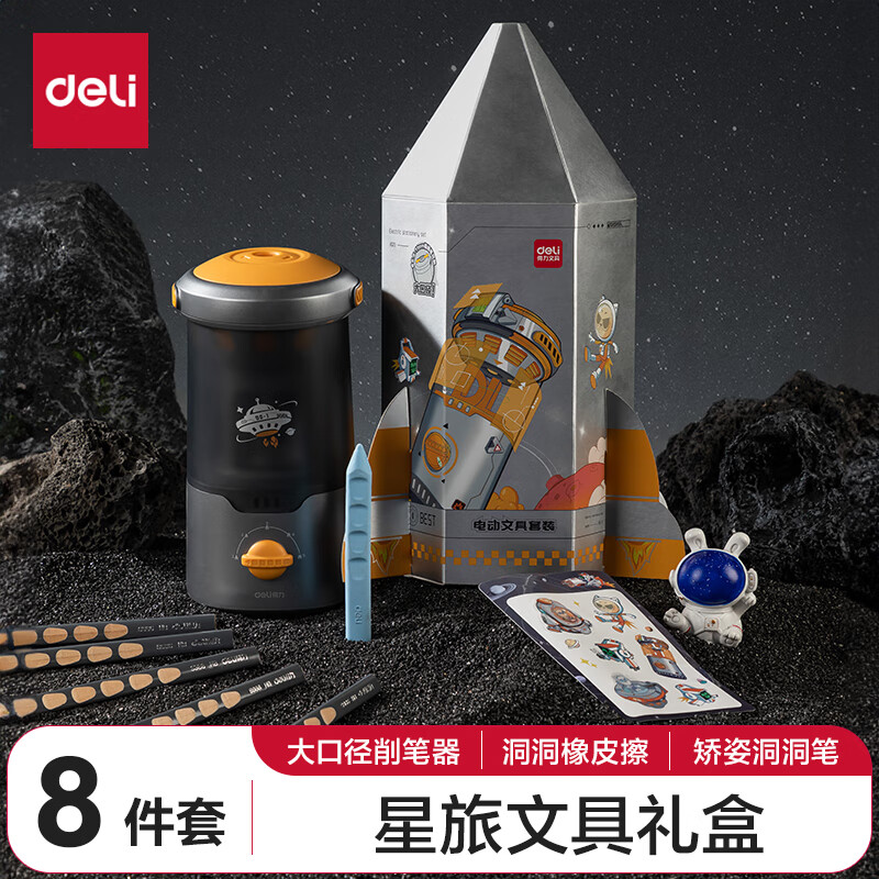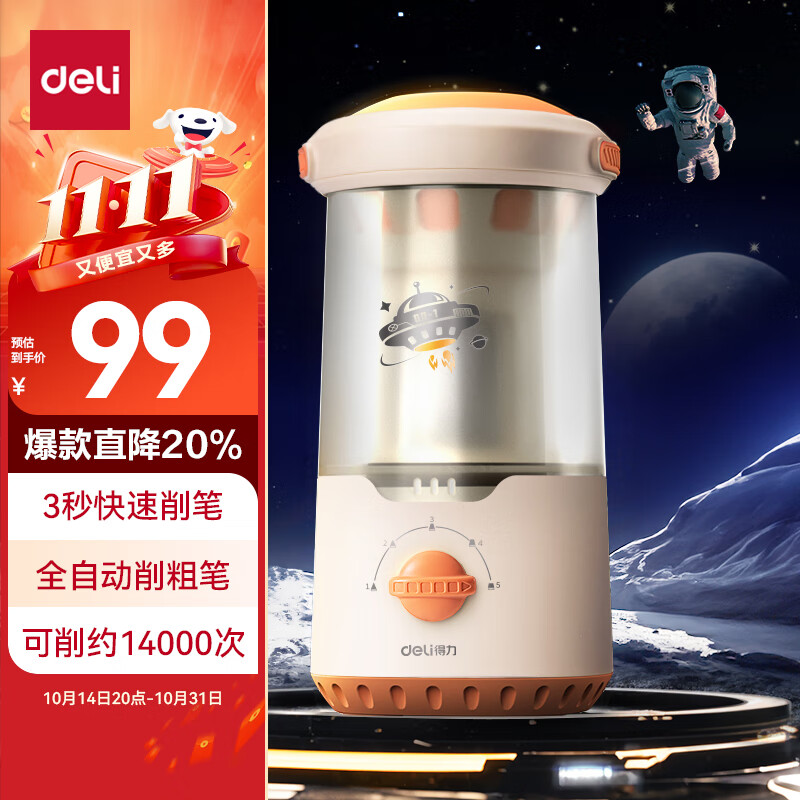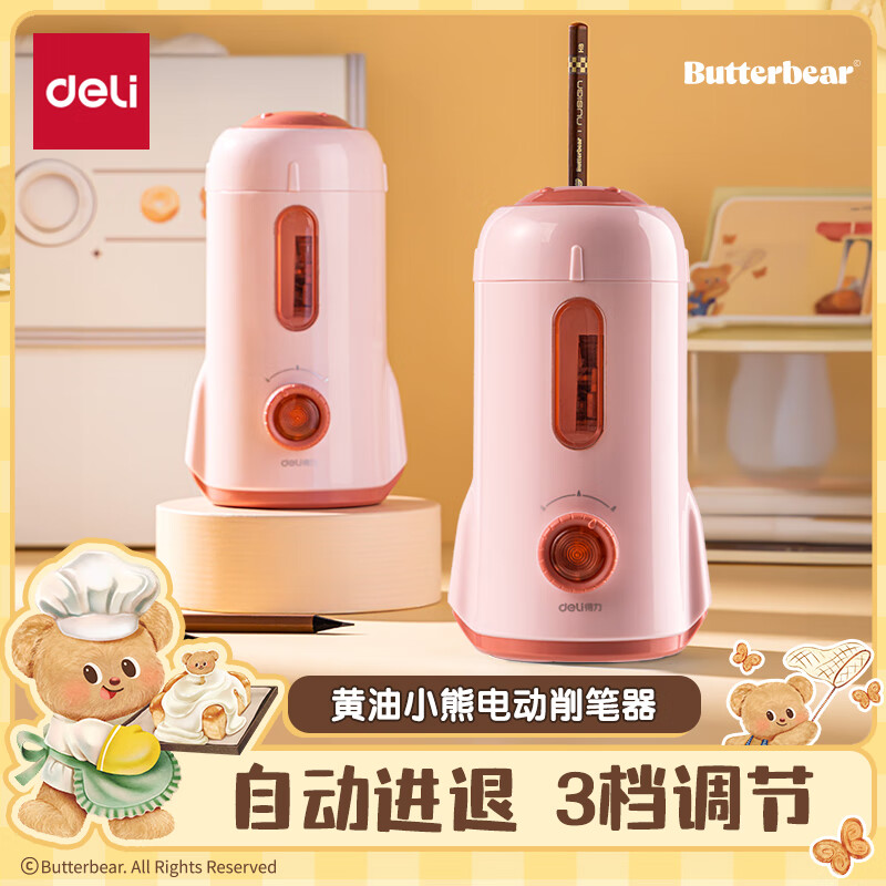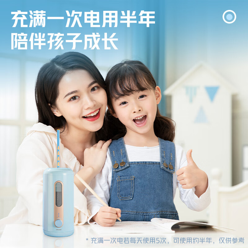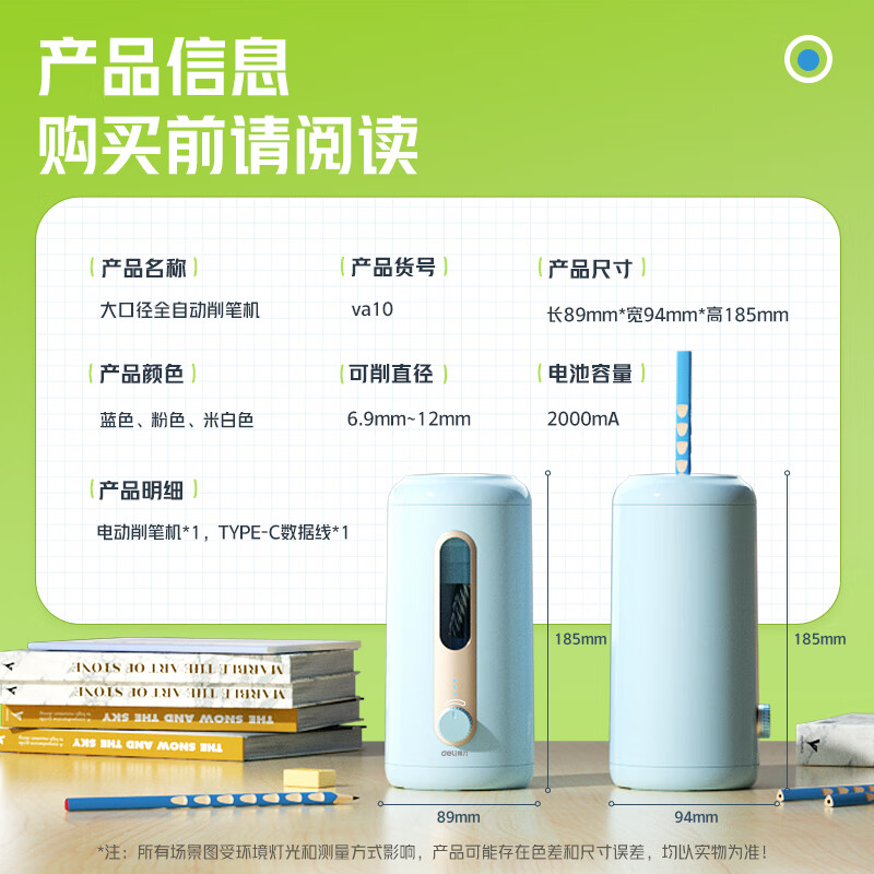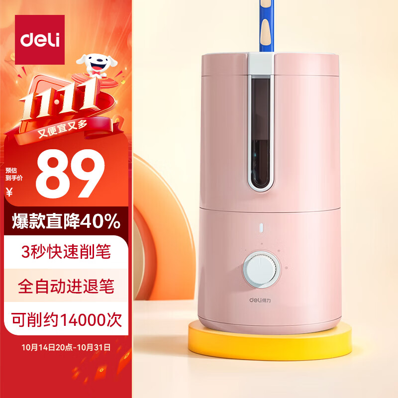 得力大口径全自动削笔器小学生开学文具电动削笔机12mm粗杆大三角铅笔儿童转笔刀卷笔刀蓝色