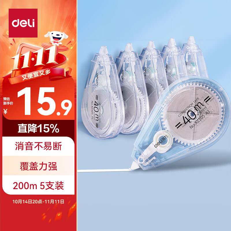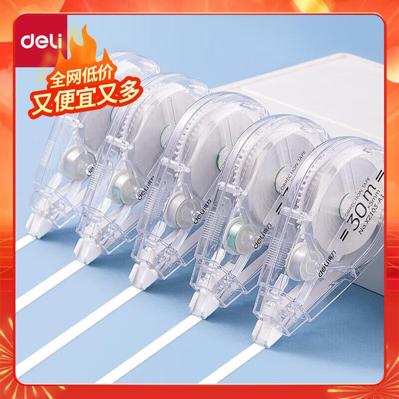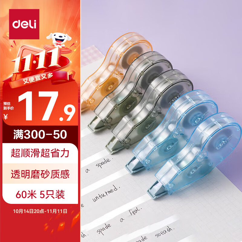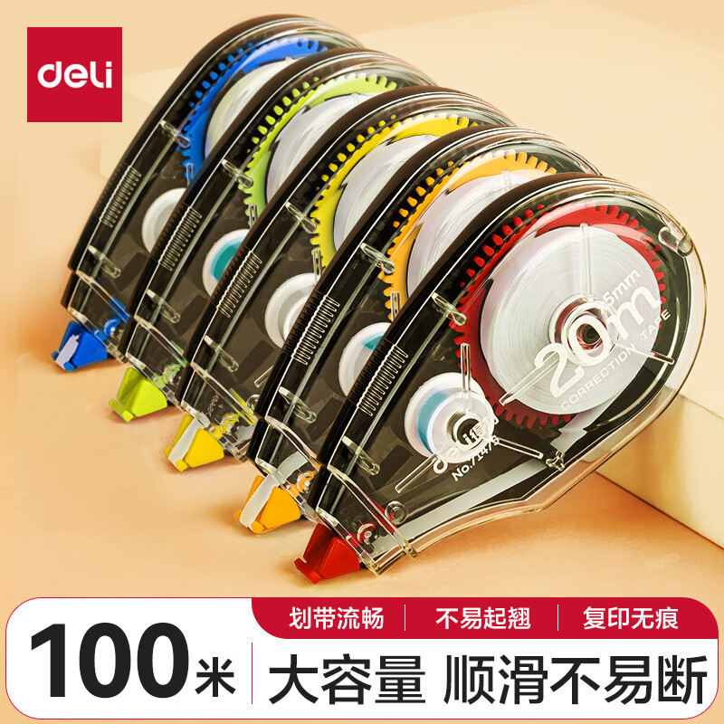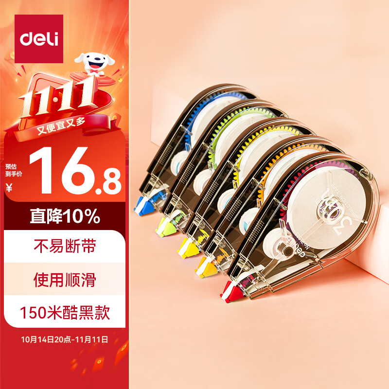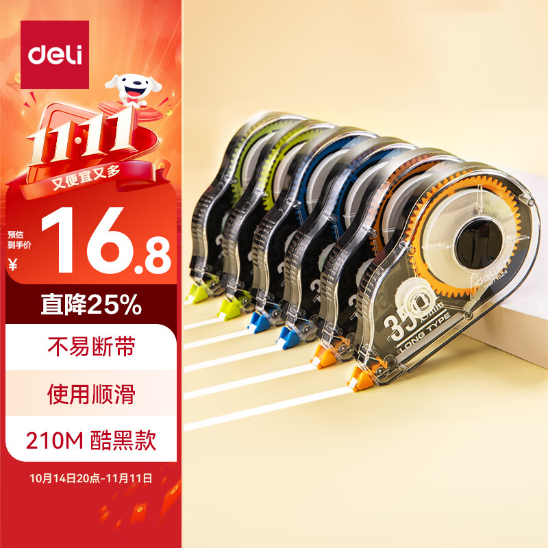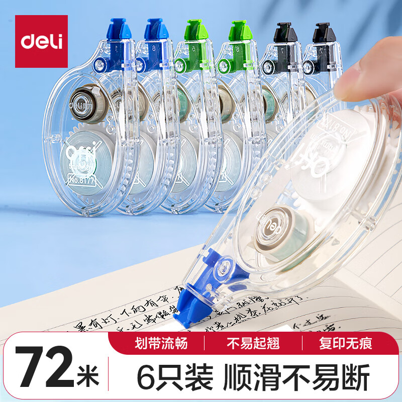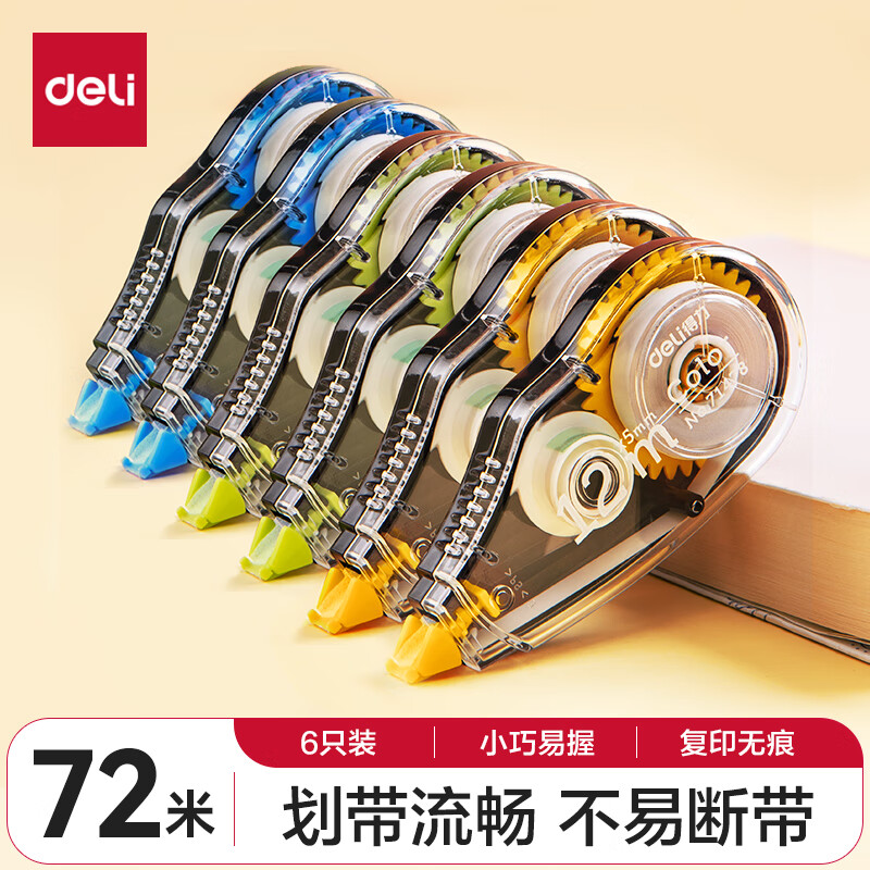 得力(deli)72m酷黑修正带 学生用品涂改带 开学文具顺滑不断带涂改带/强遮盖力改正带6只装