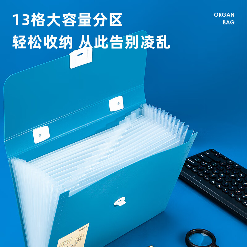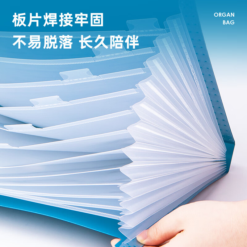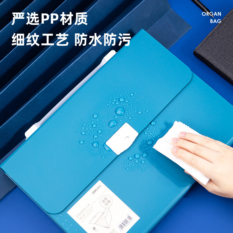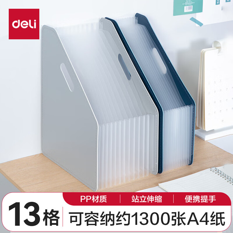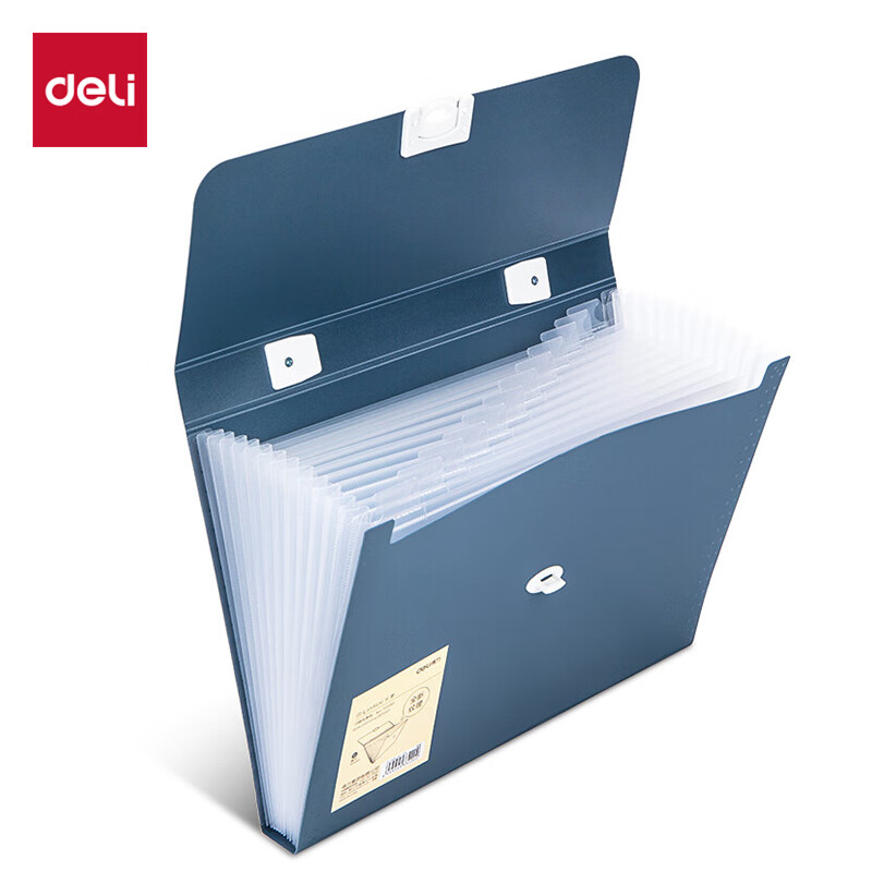 得力(deli)13格A4手提风琴包多层文件夹 乐素系列学生试卷收纳 文件保护 深蓝72593