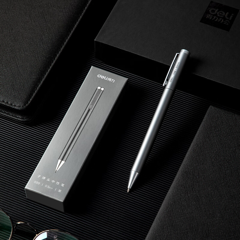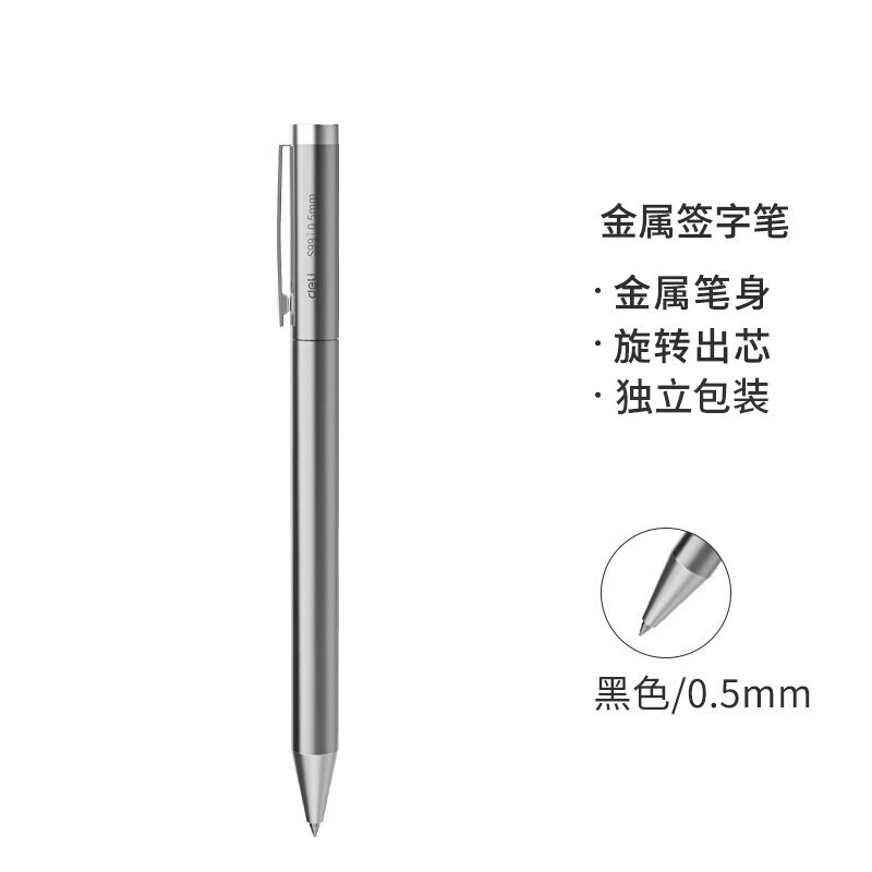 得力(deli)0.5mm金属旋转中性笔签字笔 银DL-S99