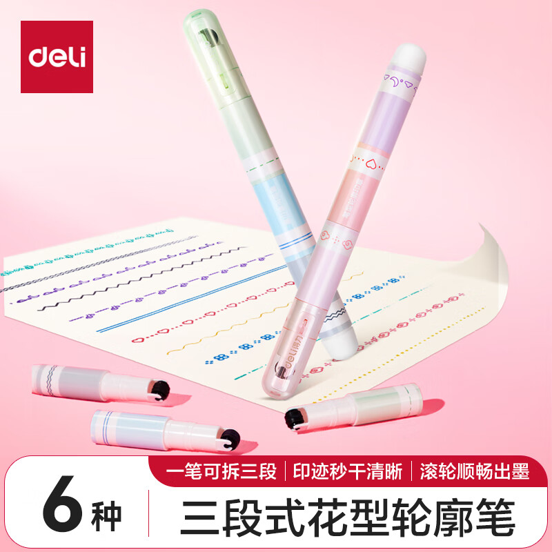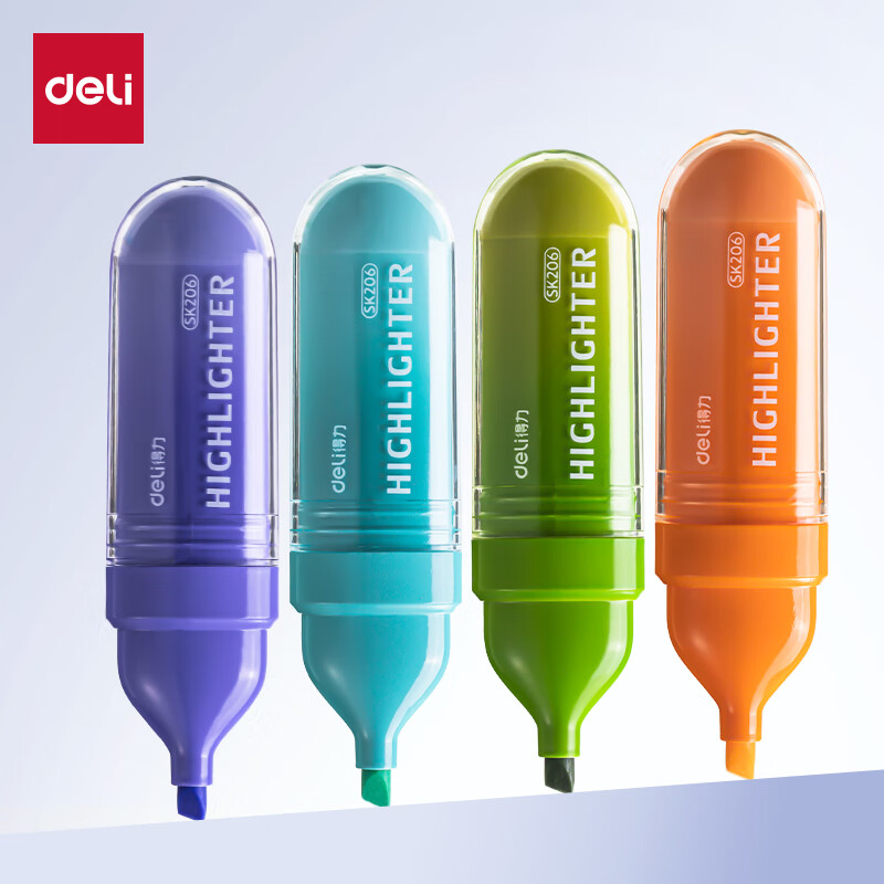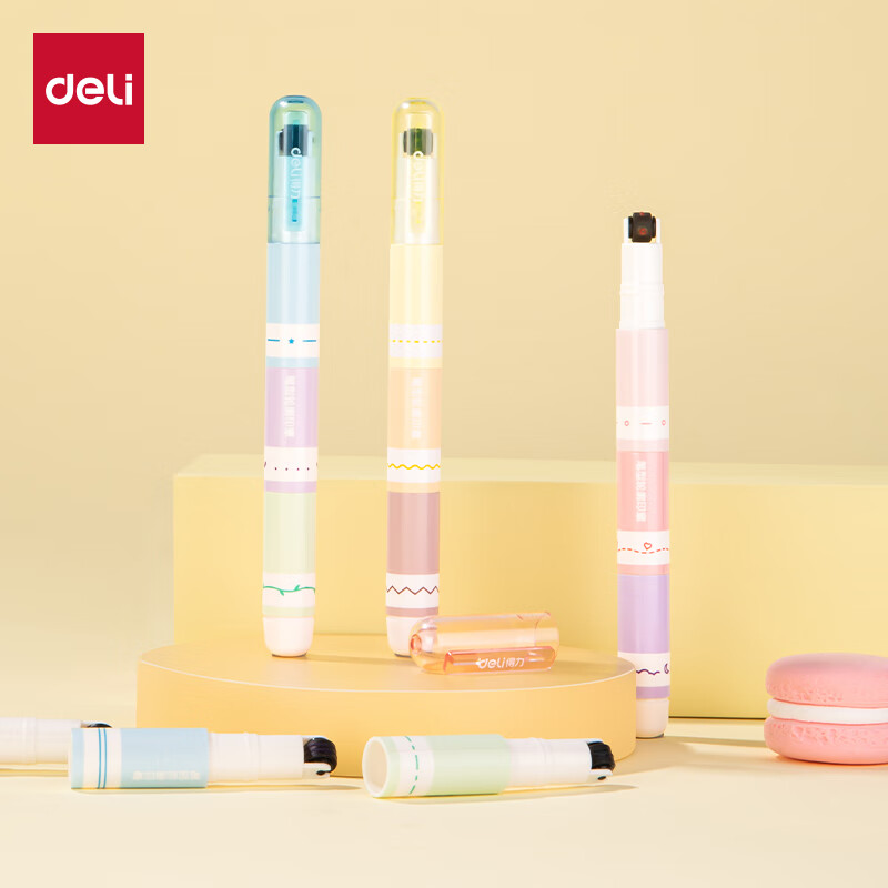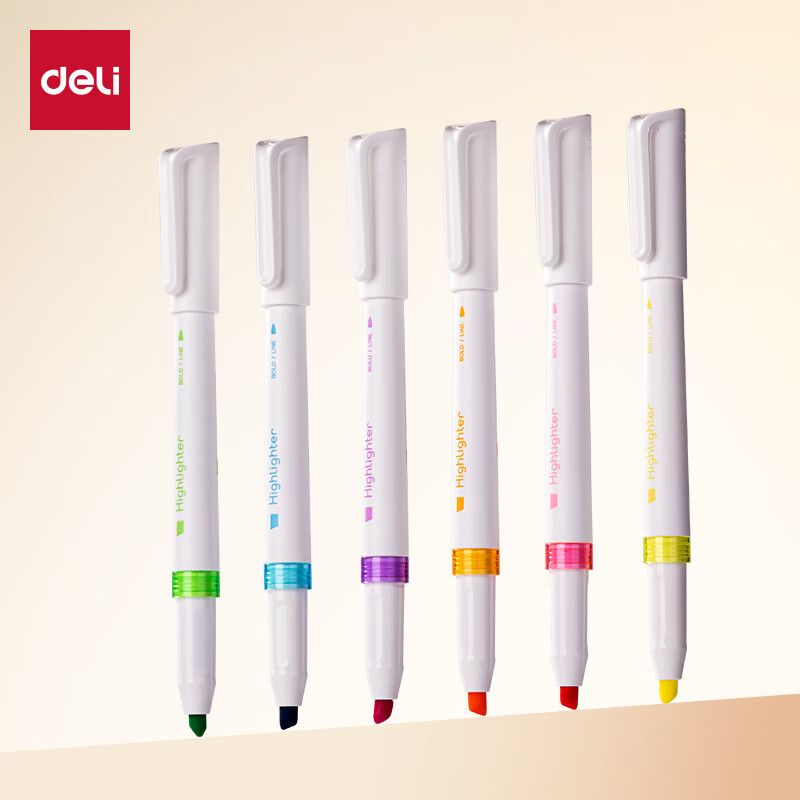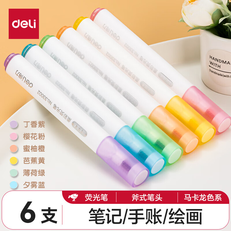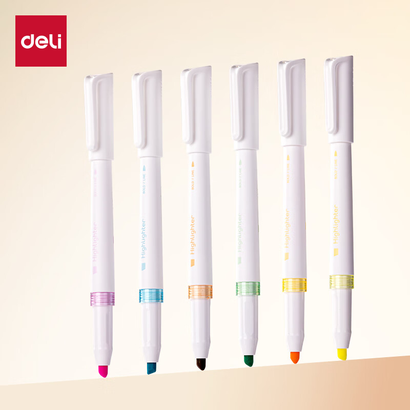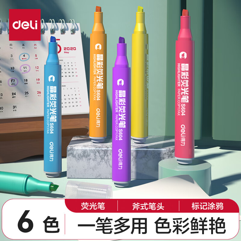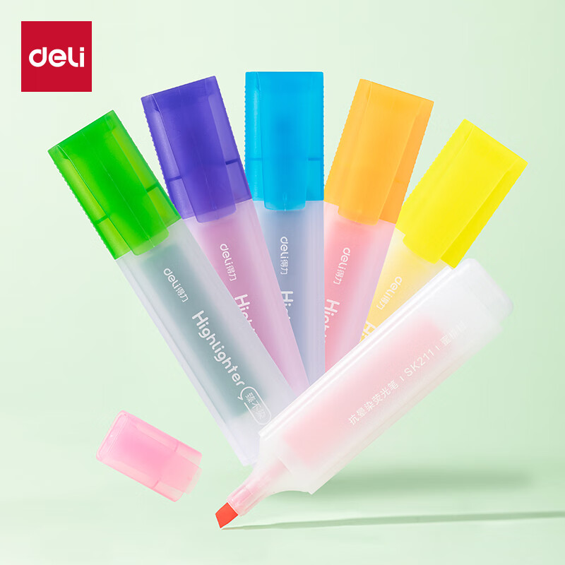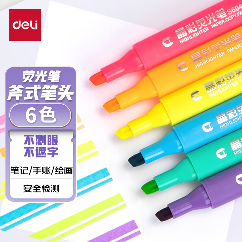 得力(deli)6色荧光笔学生考试复习重点标记笔办公记号笔 手帐涂鸦6支/盒33111