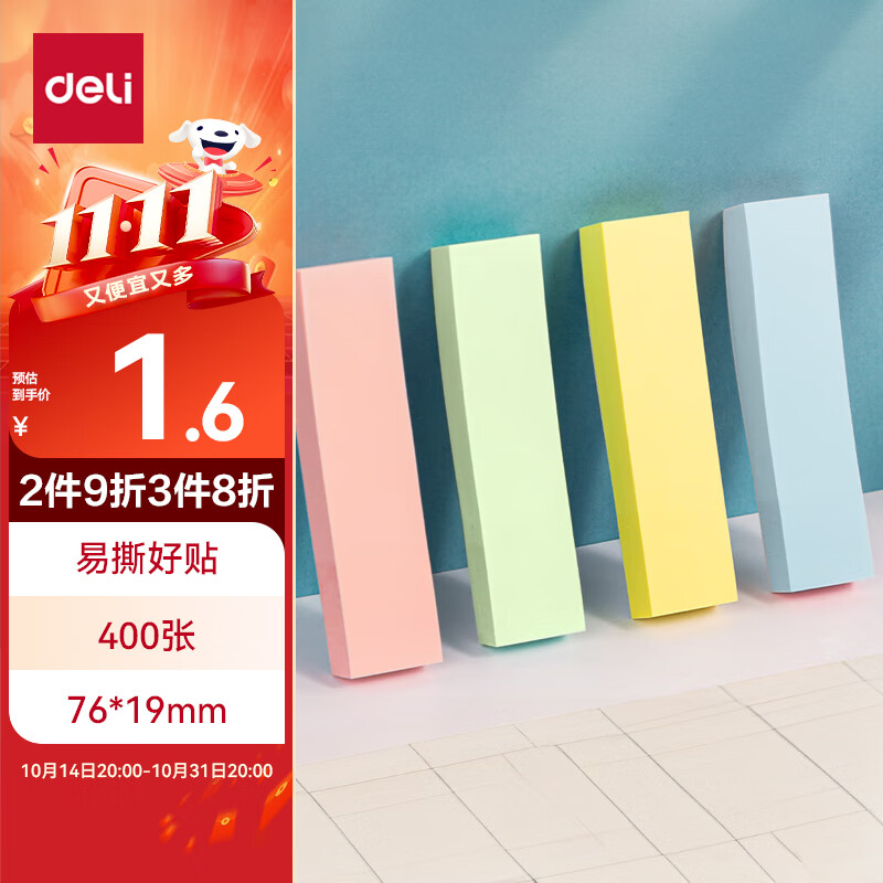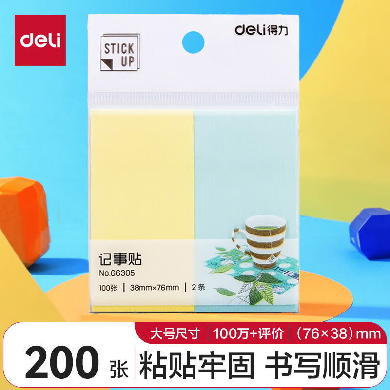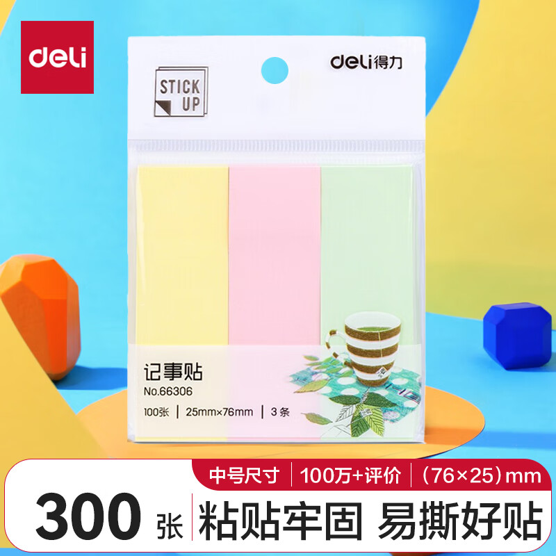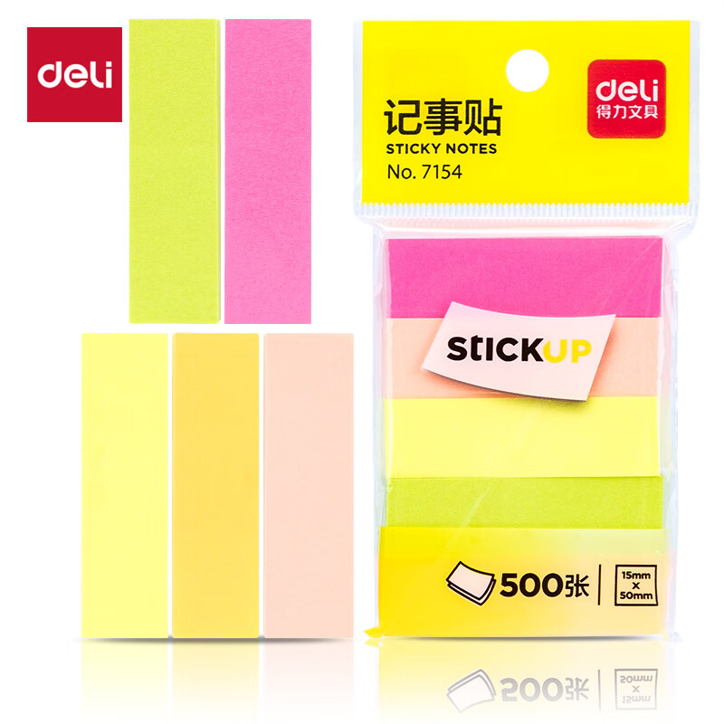 得力(deli)12本4色分条便利贴 76*19mm 便签纸/ 记事贴/ 自粘留言本 66307