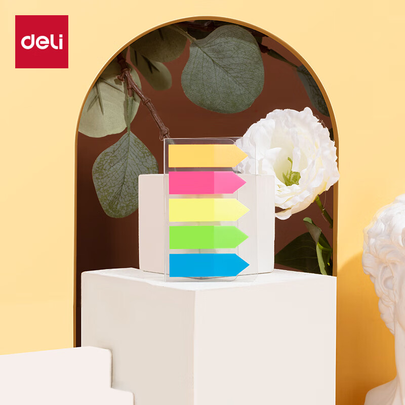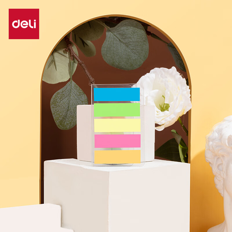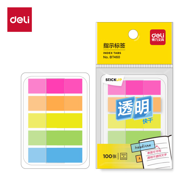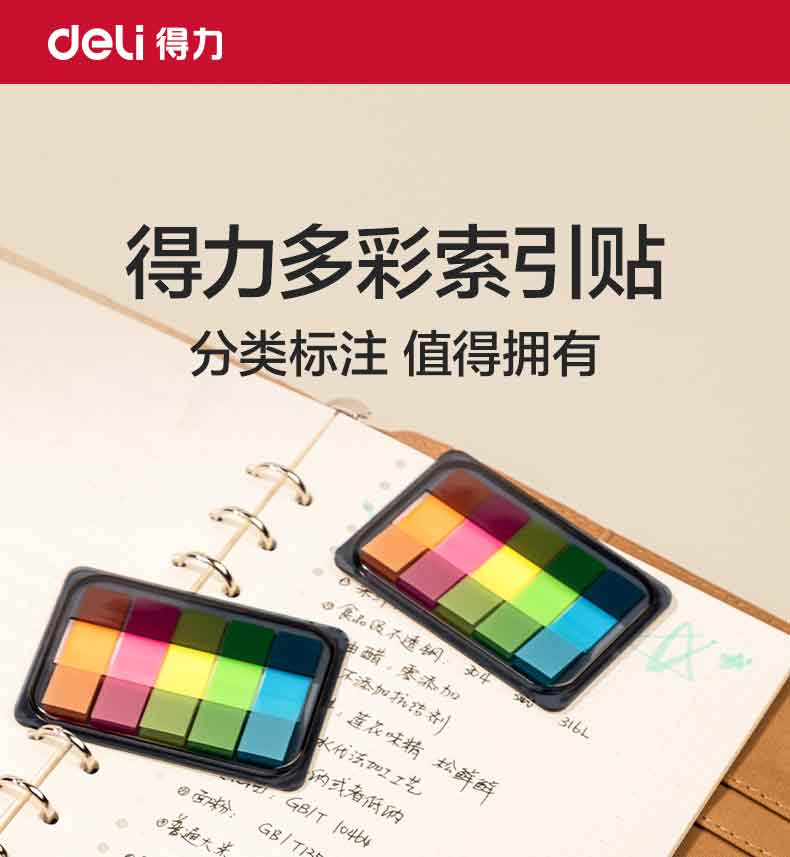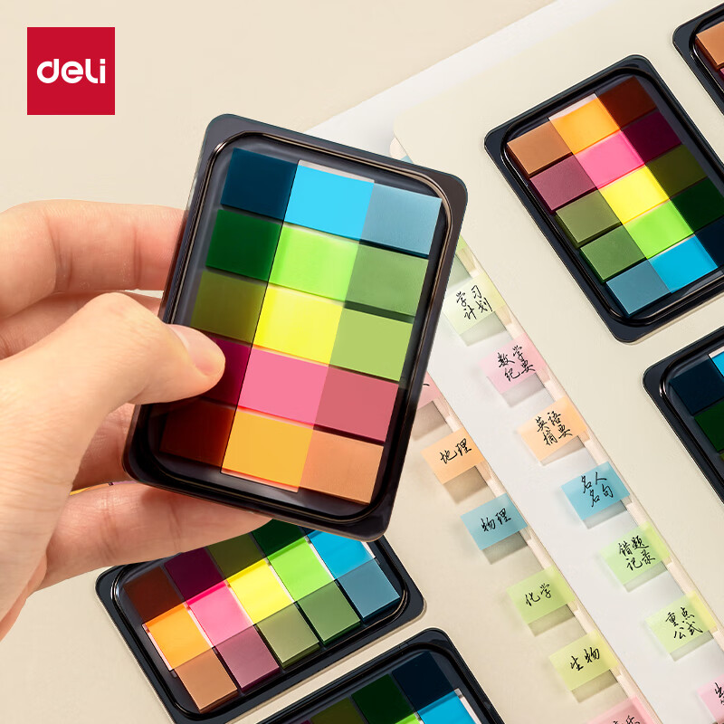 得力(deli)200张5色荧光膜指示标签贴44*12mm抽取式索引便利贴便签条记事贴9069
