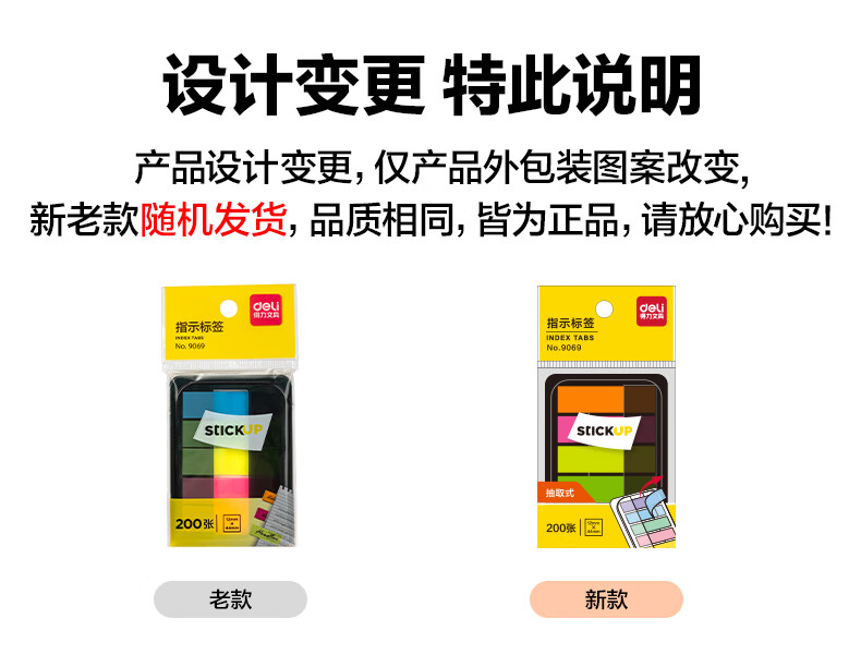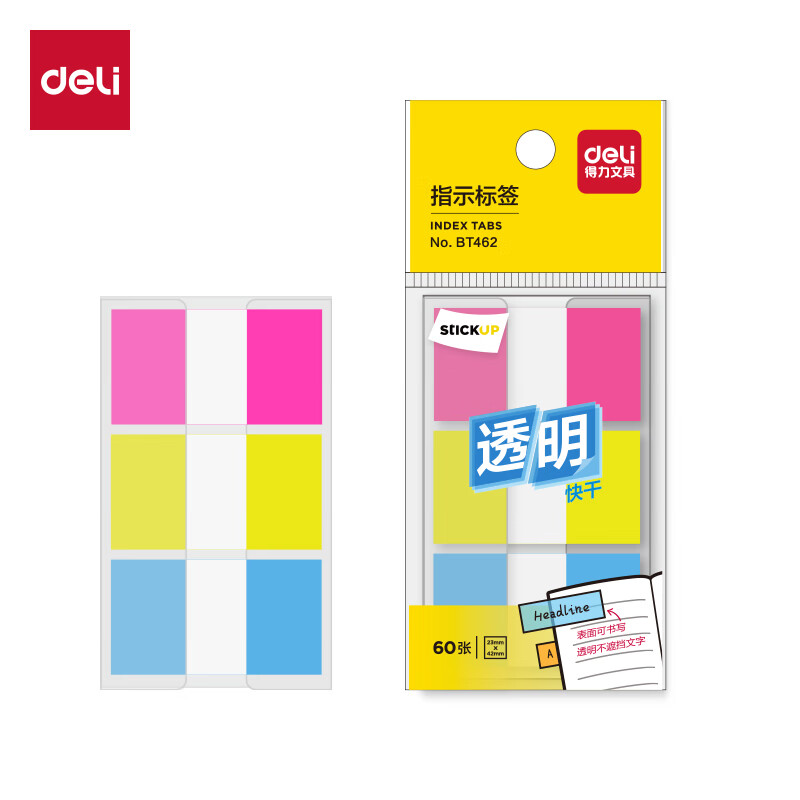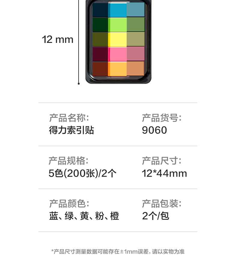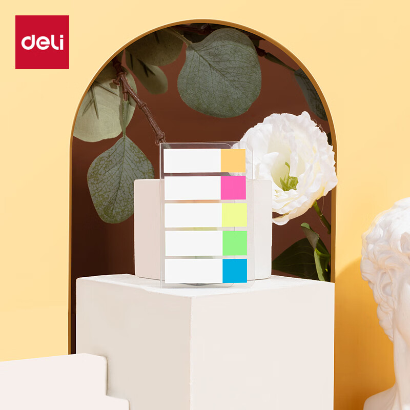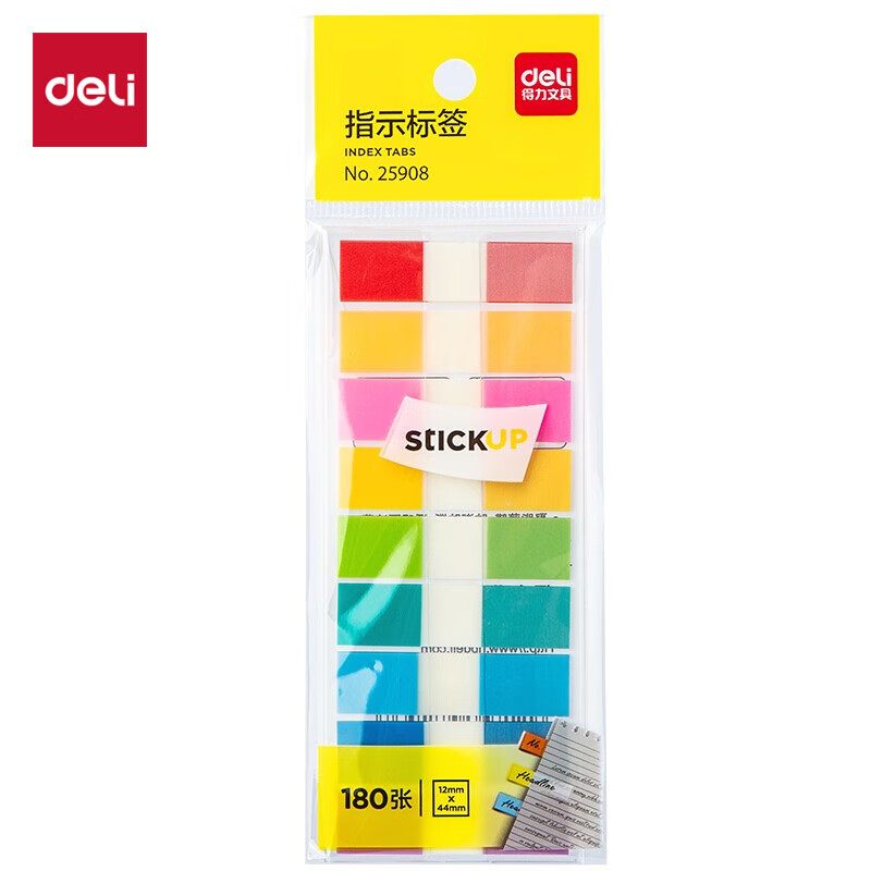 得力(deli)200张5色荧光膜指示标签贴44*12mm抽取式索引便利贴便签条记事贴9069