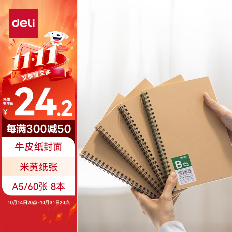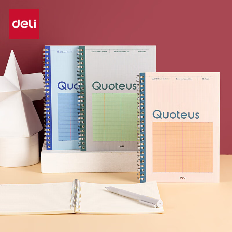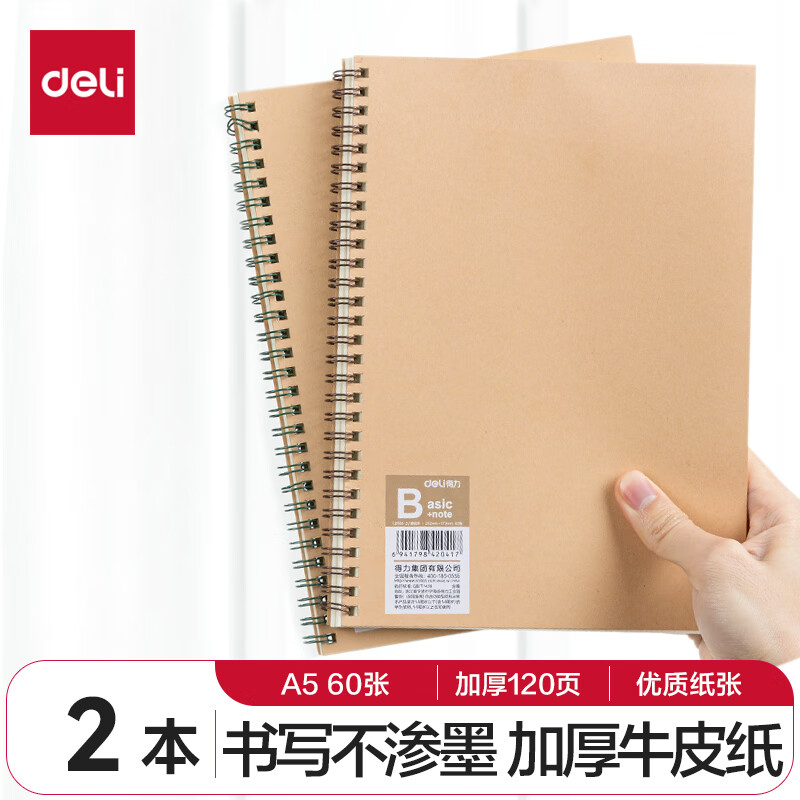 得力(deli)8本A5/60张笔记本子线圈本 简约螺旋本错题本练习本 LA560