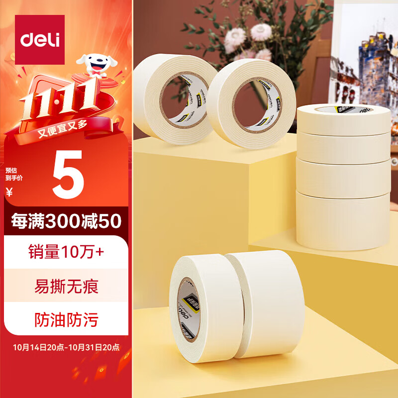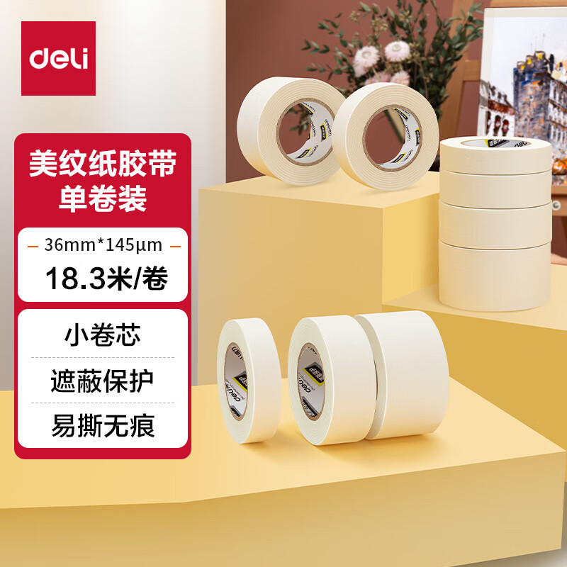 得力(deli)50mm*50y*145μm美纹纸胶带4卷装*1