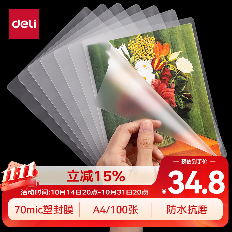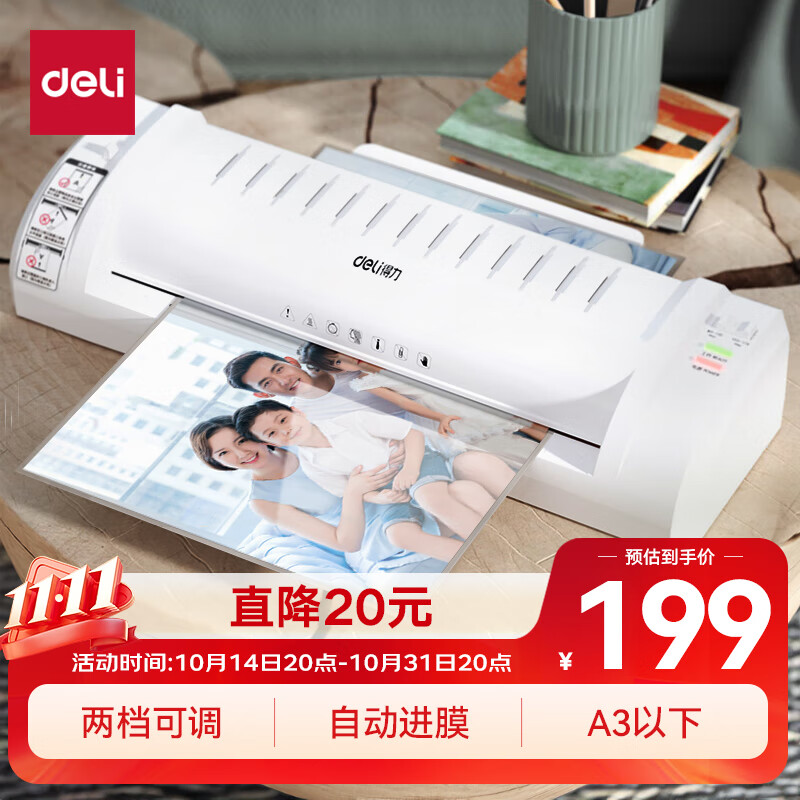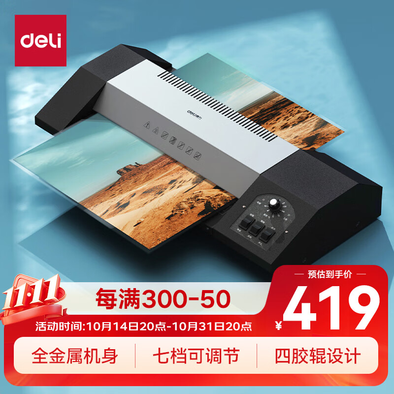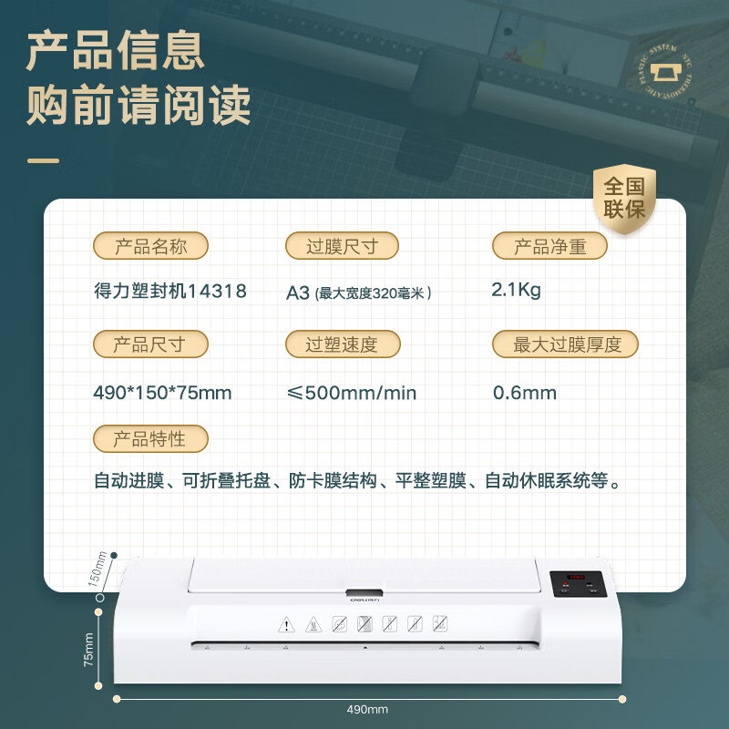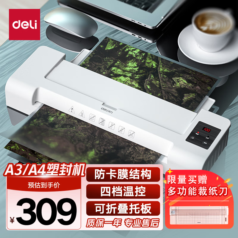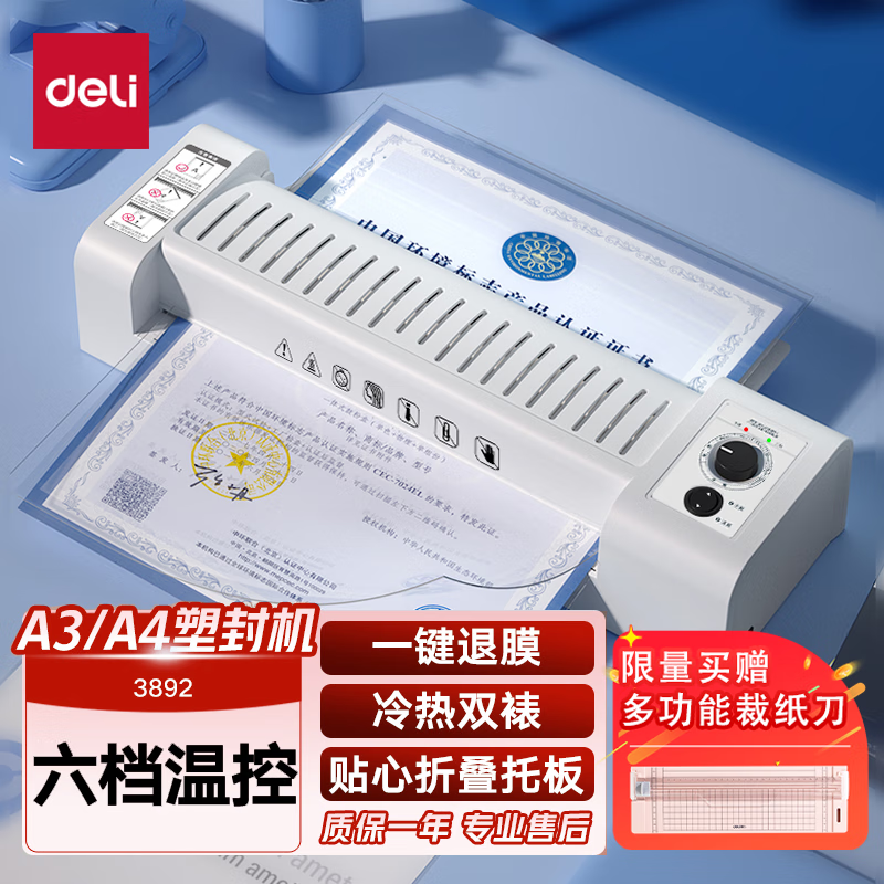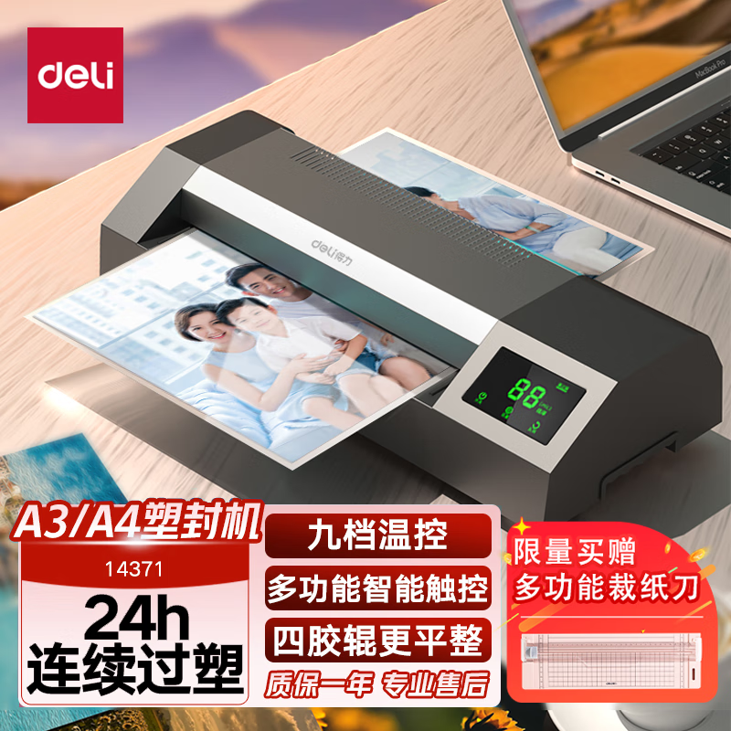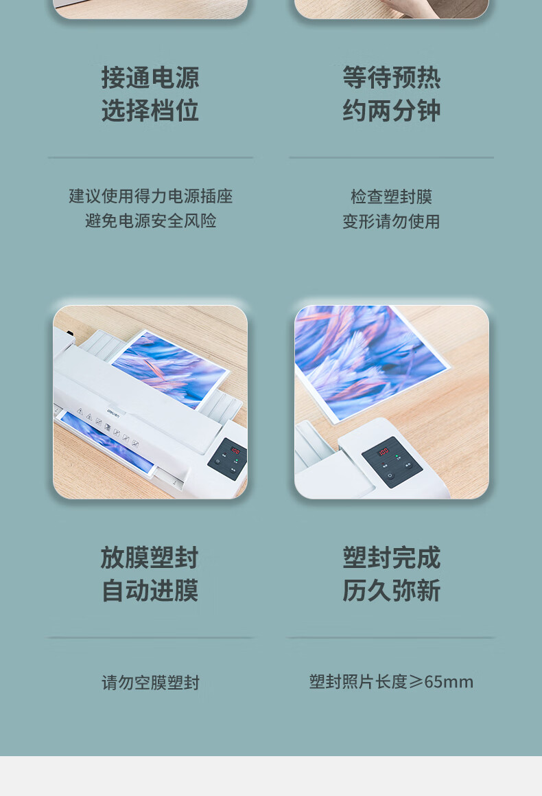 得力家用办公a3/a4照片塑封机过塑机可用a3及以下塑封膜商用相片过胶压膜机封膜机覆膜机防卡膜 14318