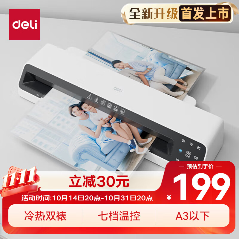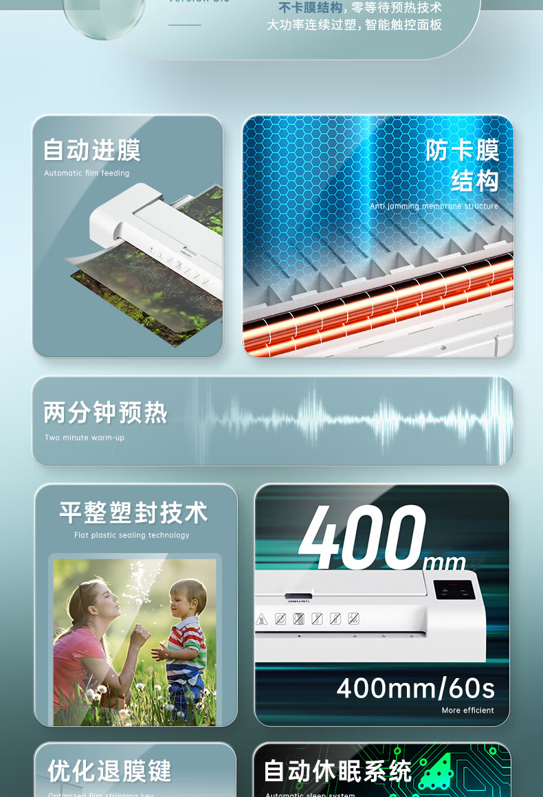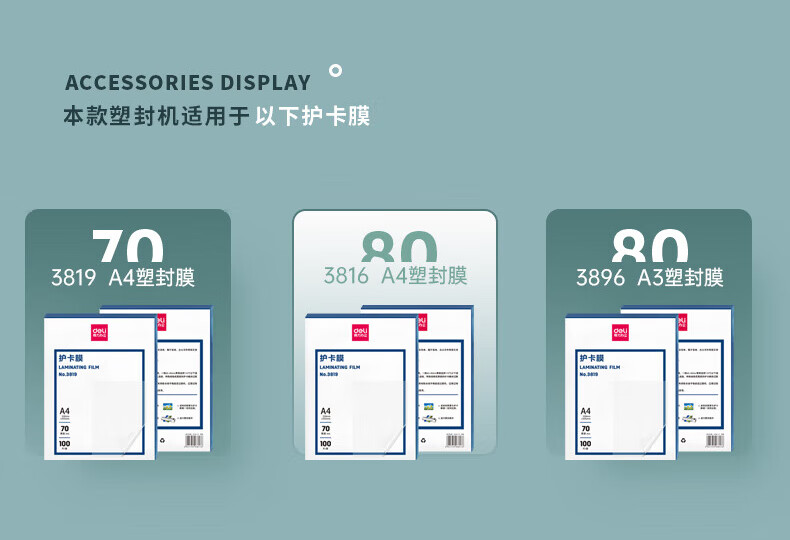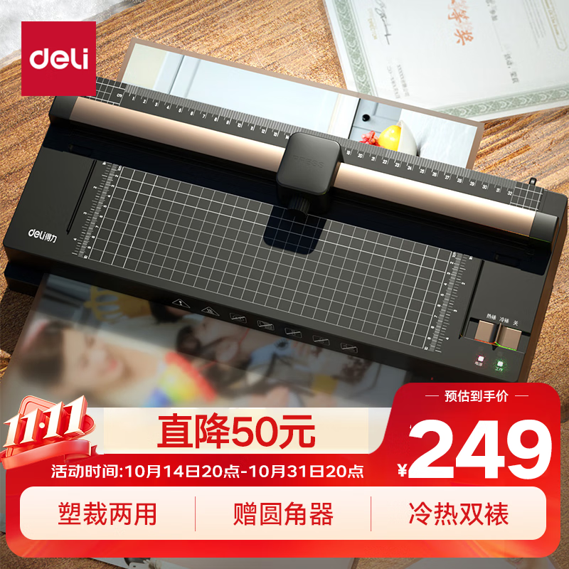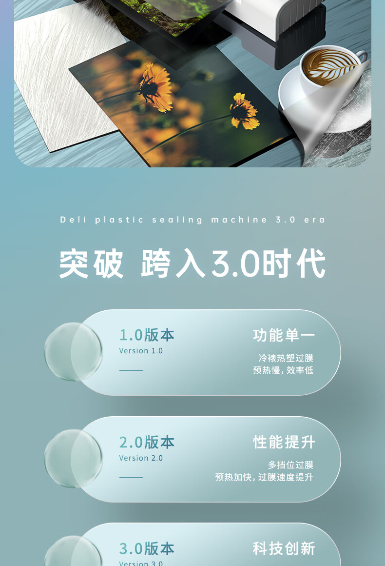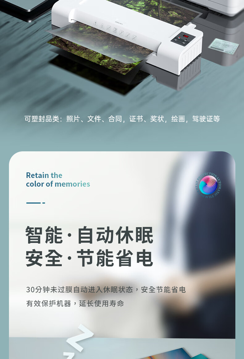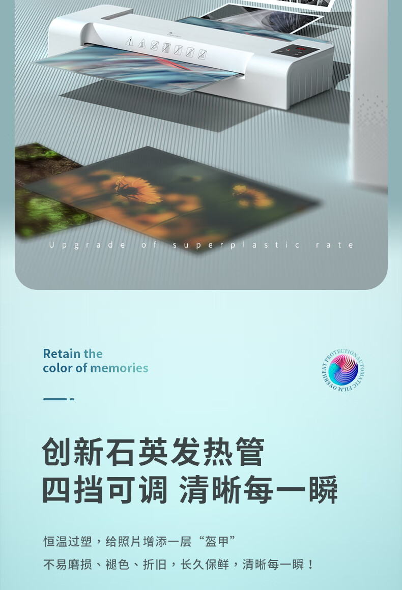 得力家用办公a3/a4照片塑封机过塑机可用a3及以下塑封膜商用相片过胶压膜机封膜机覆膜机防卡膜 14318