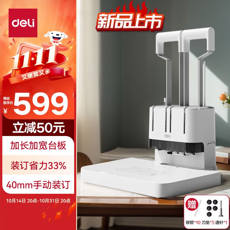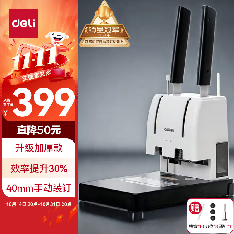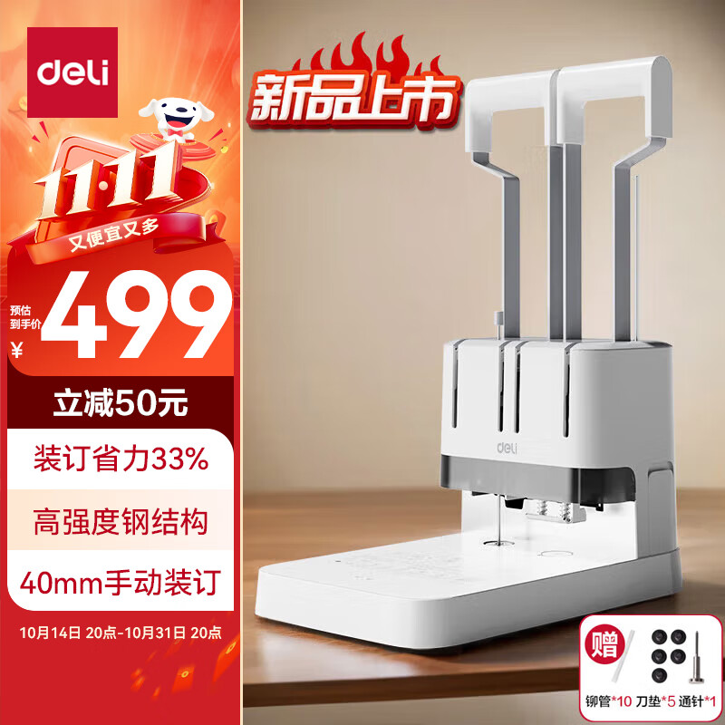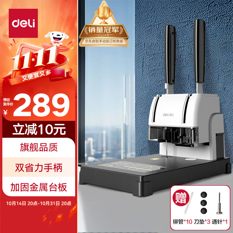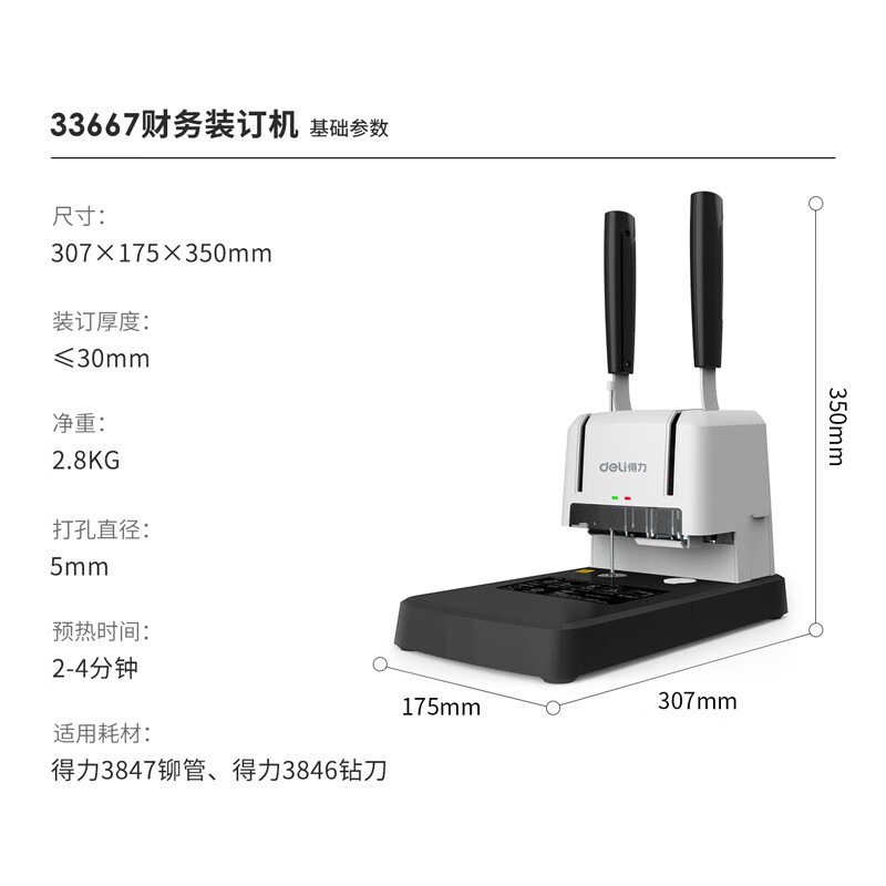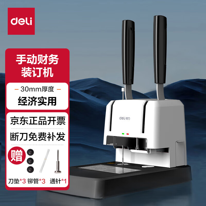 得力30mm会计凭证手动装订机300页财务装订机手动打孔装订机办公档案铆管热熔装订机文件打孔器33667