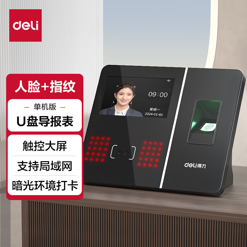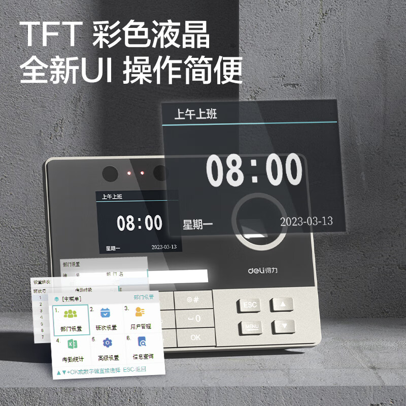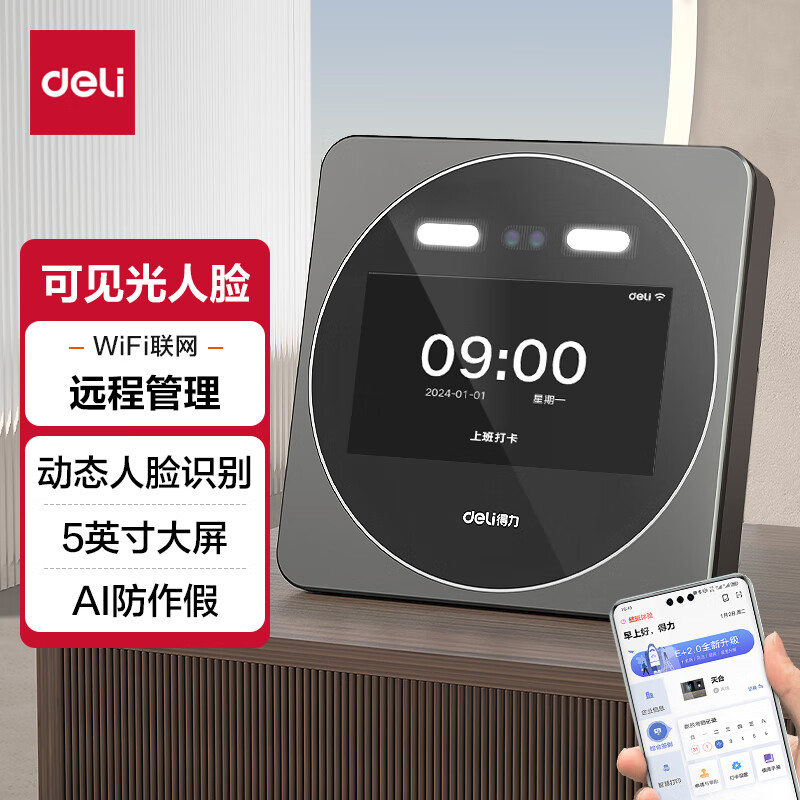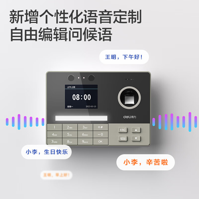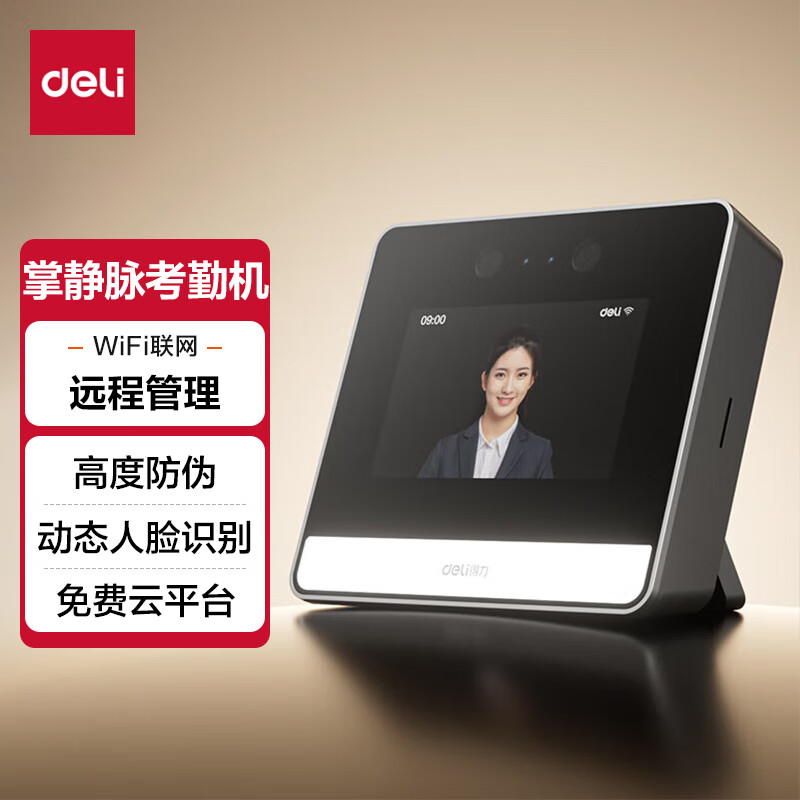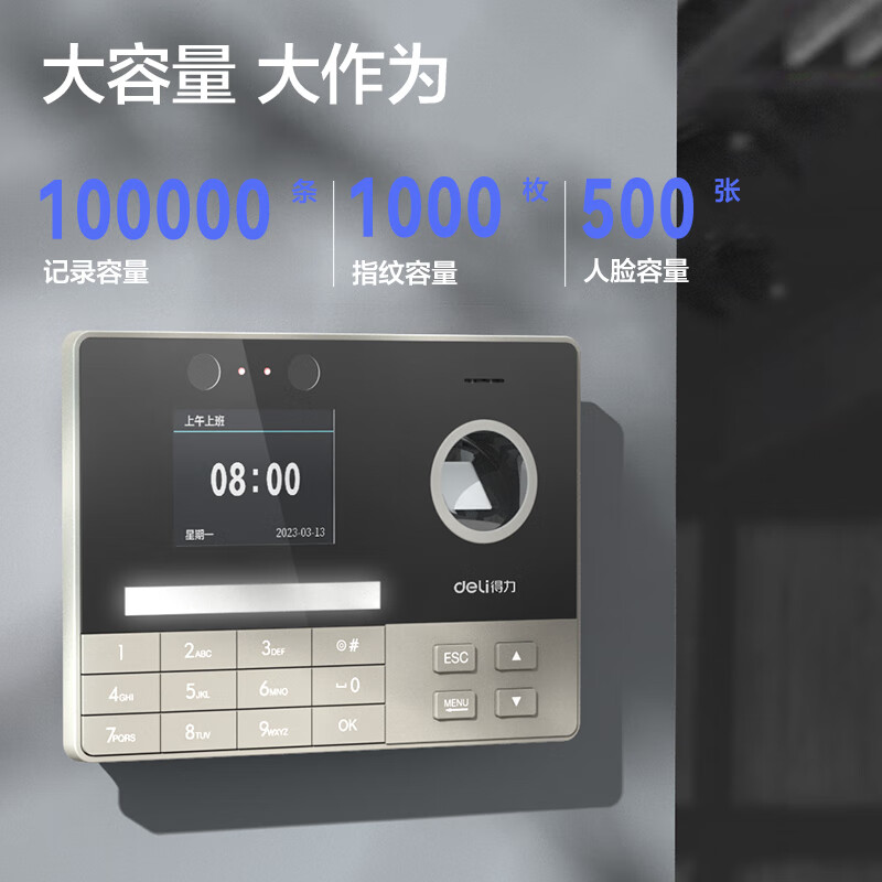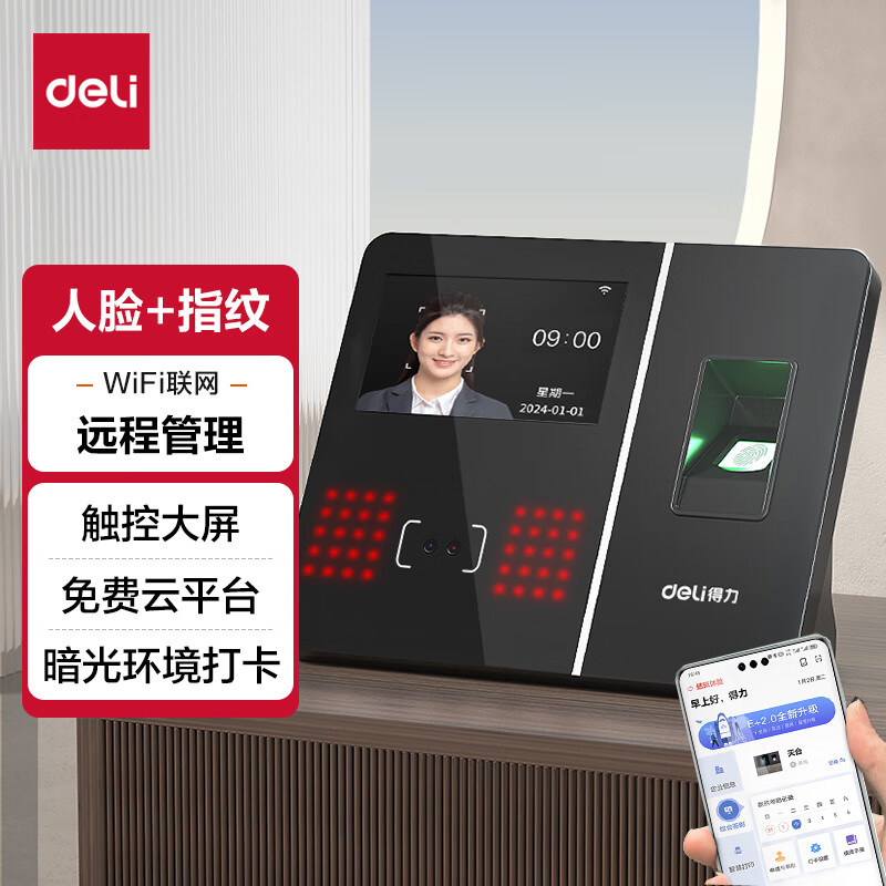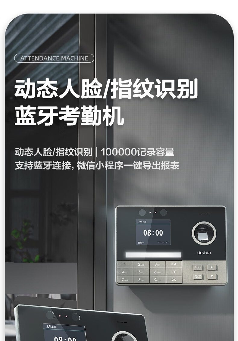 得力考勤机 可见光人脸识别 指纹人脸识别打卡 蓝牙连接 手机小程序管理 考勤机3760W