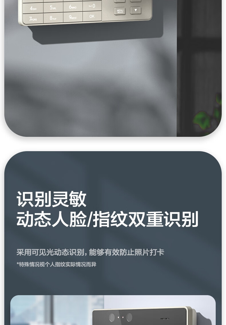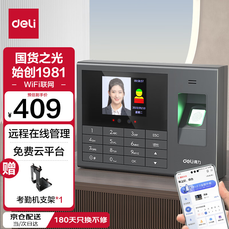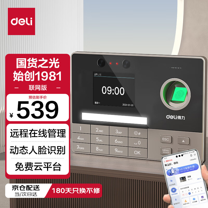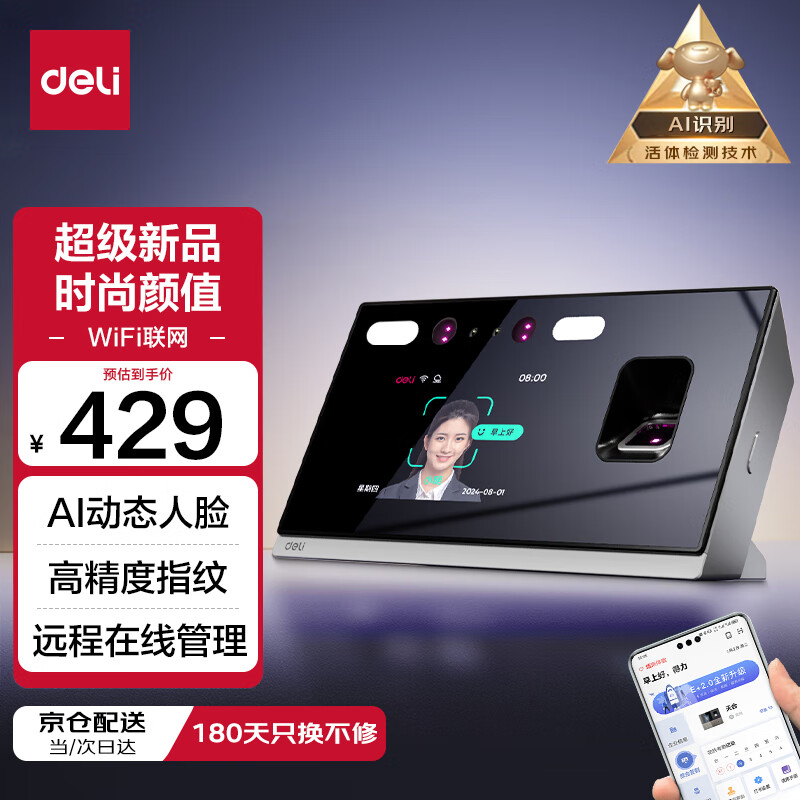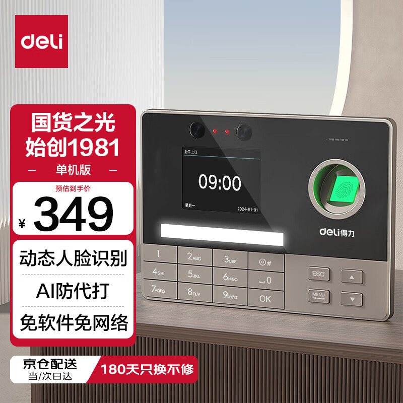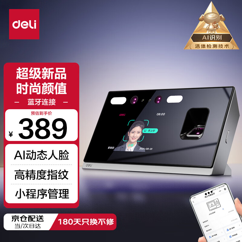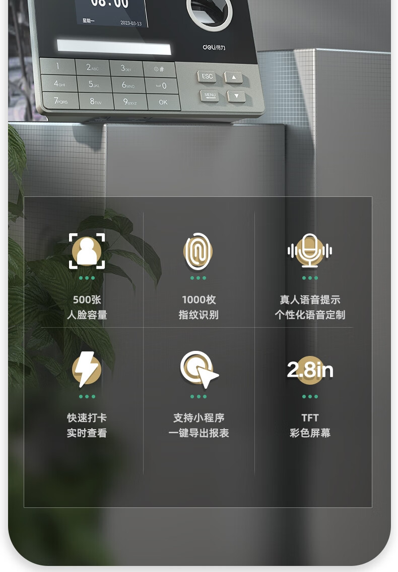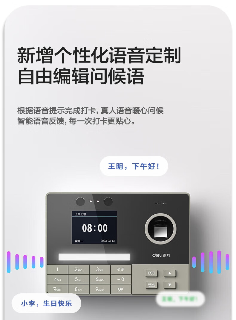 得力考勤机 可见光人脸识别 指纹人脸识别打卡 蓝牙连接 手机小程序管理 考勤机3760W