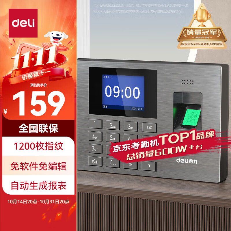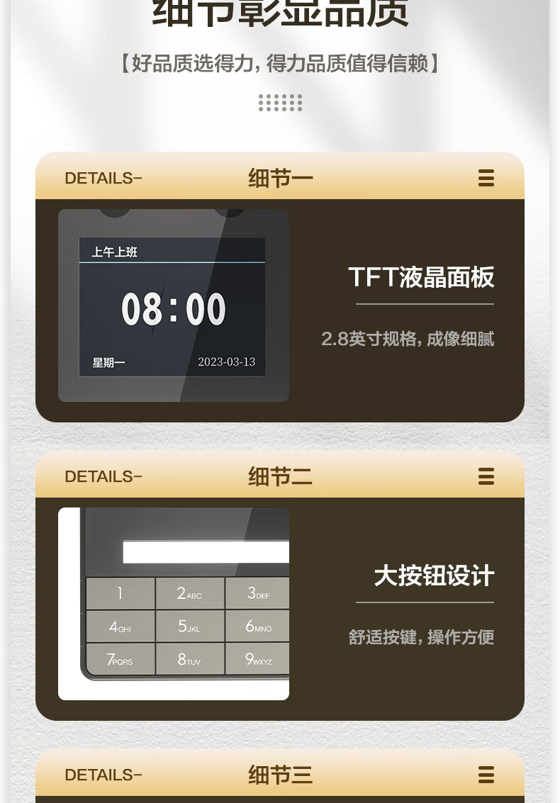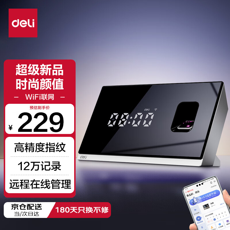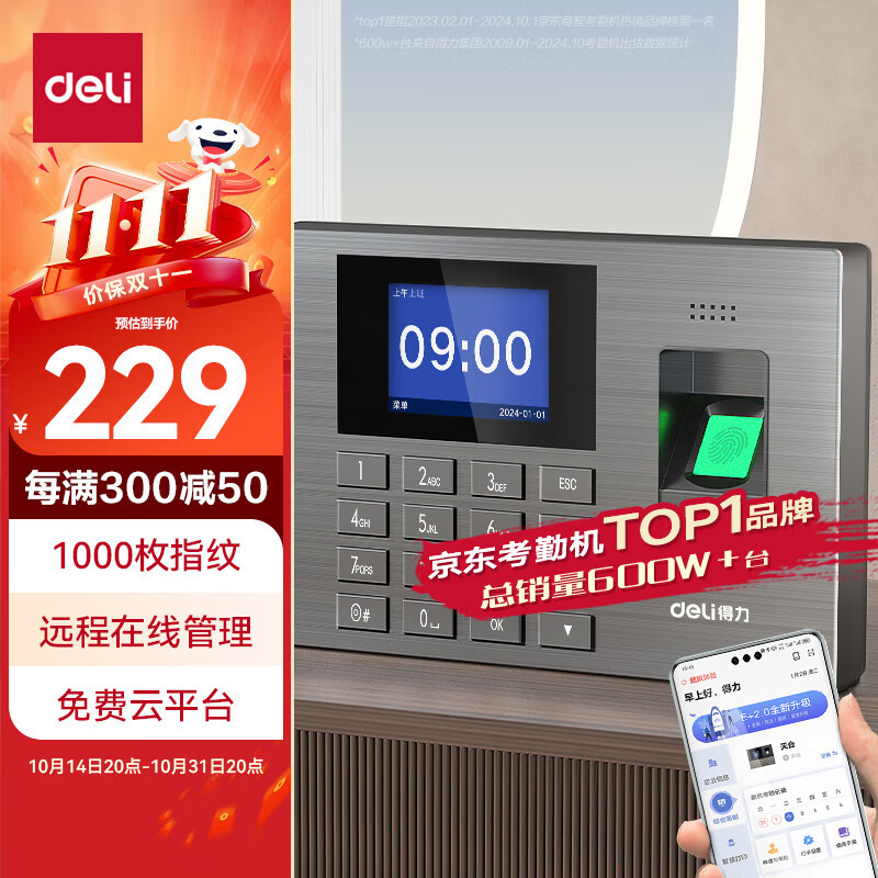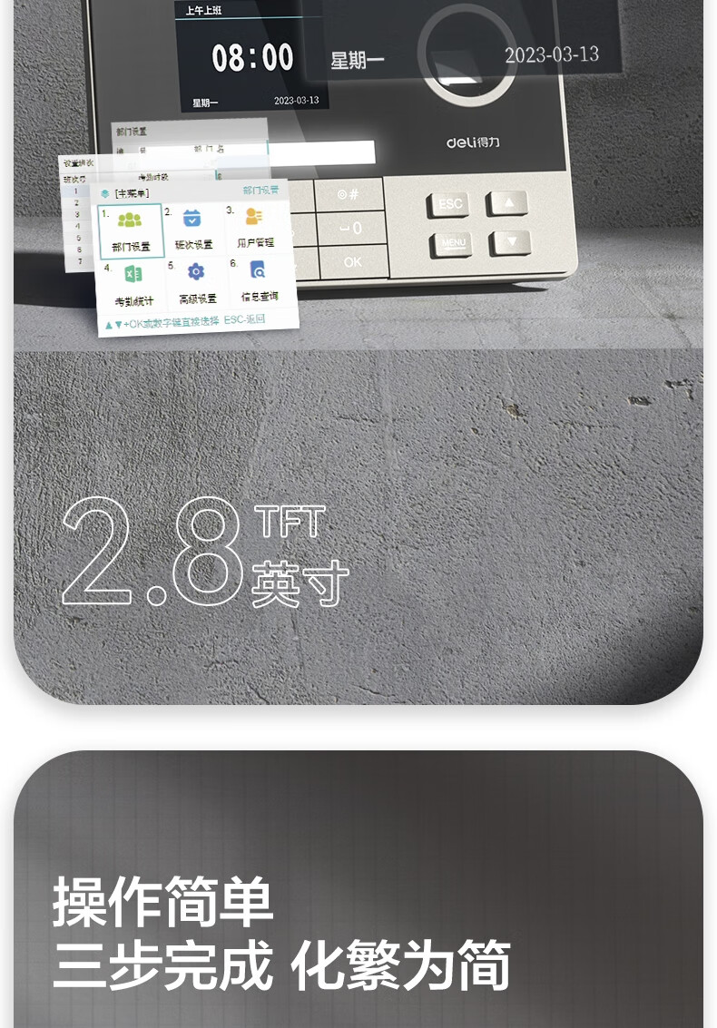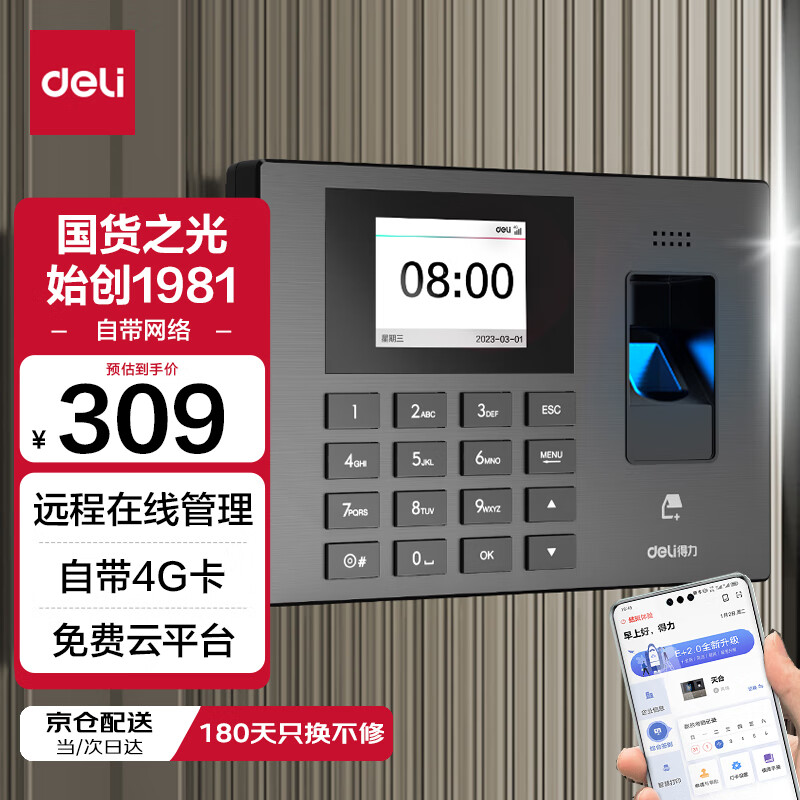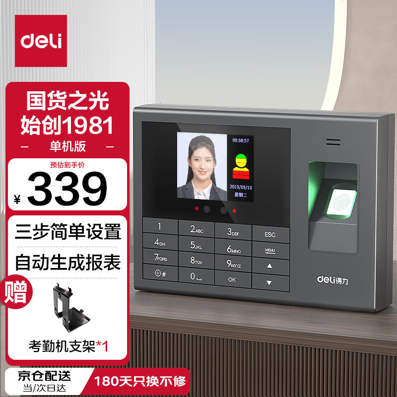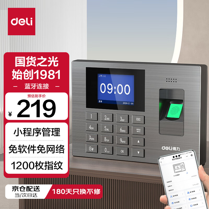 得力考勤机 可见光人脸识别 指纹人脸识别打卡 蓝牙连接 手机小程序管理 考勤机3760W