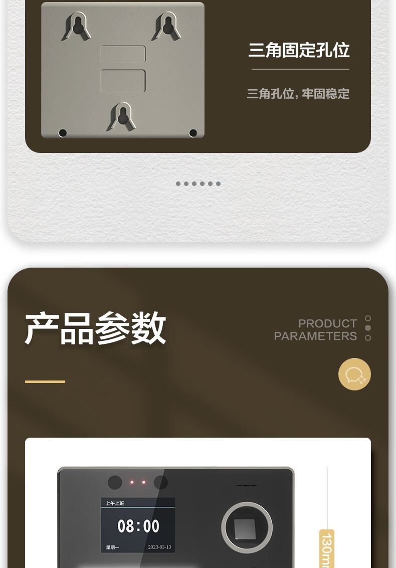 考勤机×1 电源适配器×1 说明书(包含合格证和保修卡)×1 膨胀螺丝×3