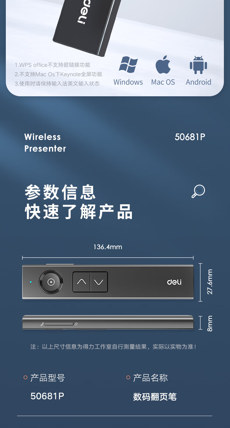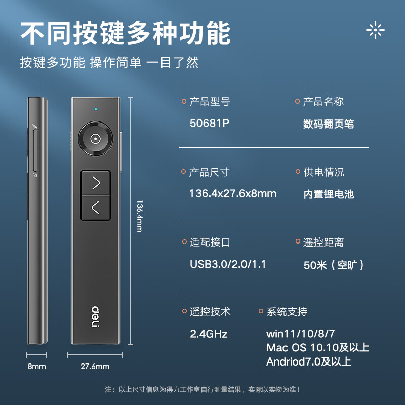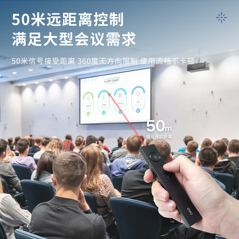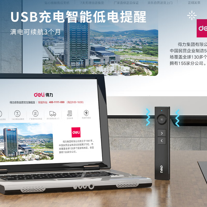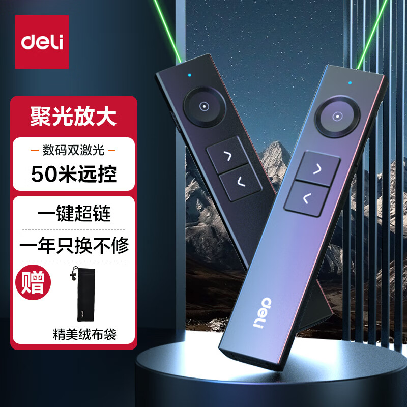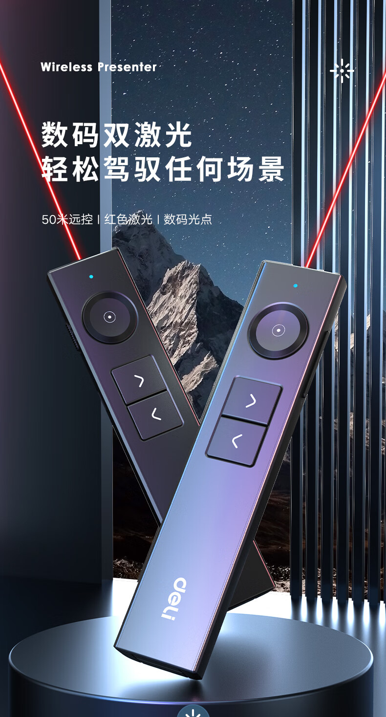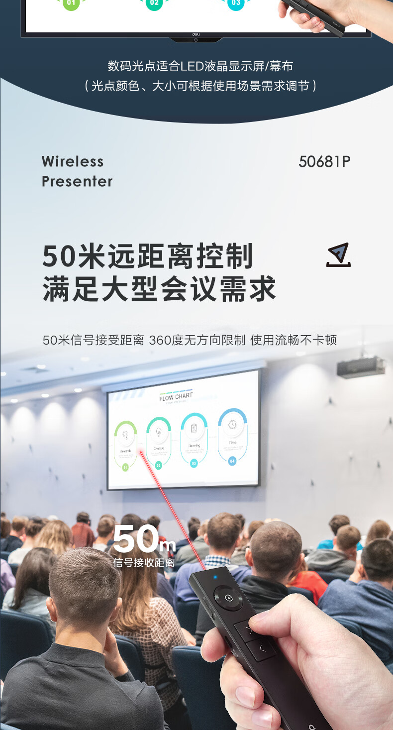 得力激光笔激光PPT翻页笔 数字物理双激光 适用LED屏希沃白板数码投影=空中飞鼠教师演讲笔50681P