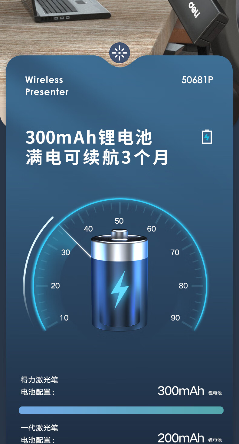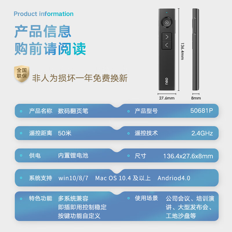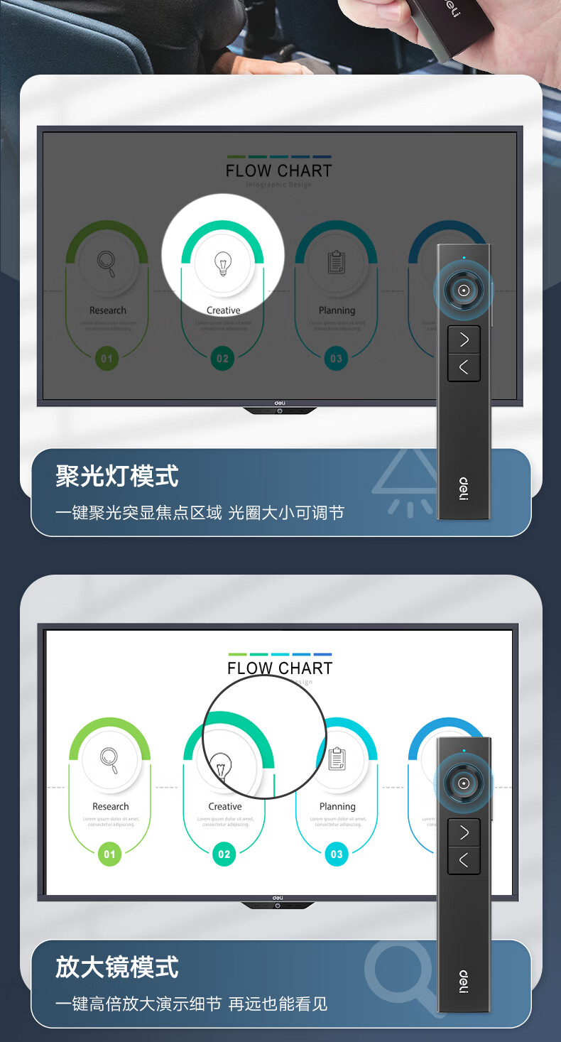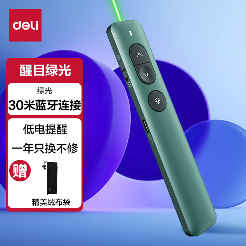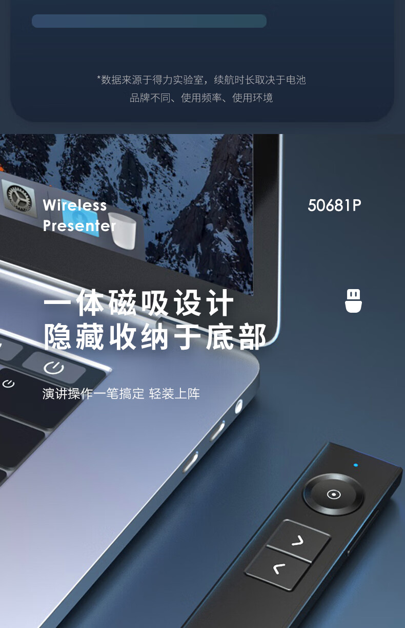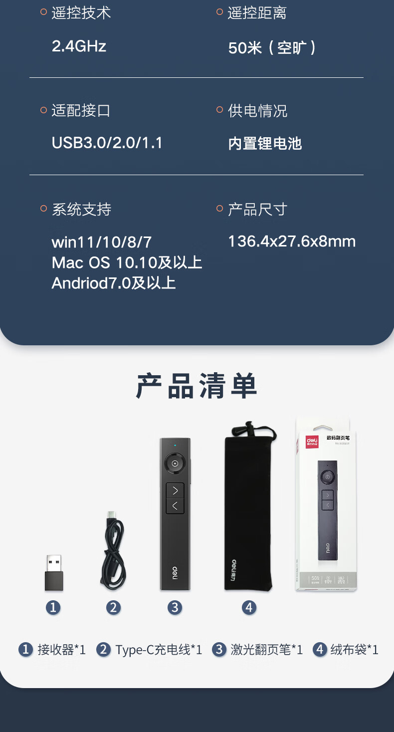 得力激光笔激光PPT翻页笔 数字物理双激光 适用LED屏希沃白板数码投影=空中飞鼠教师演讲笔50681P