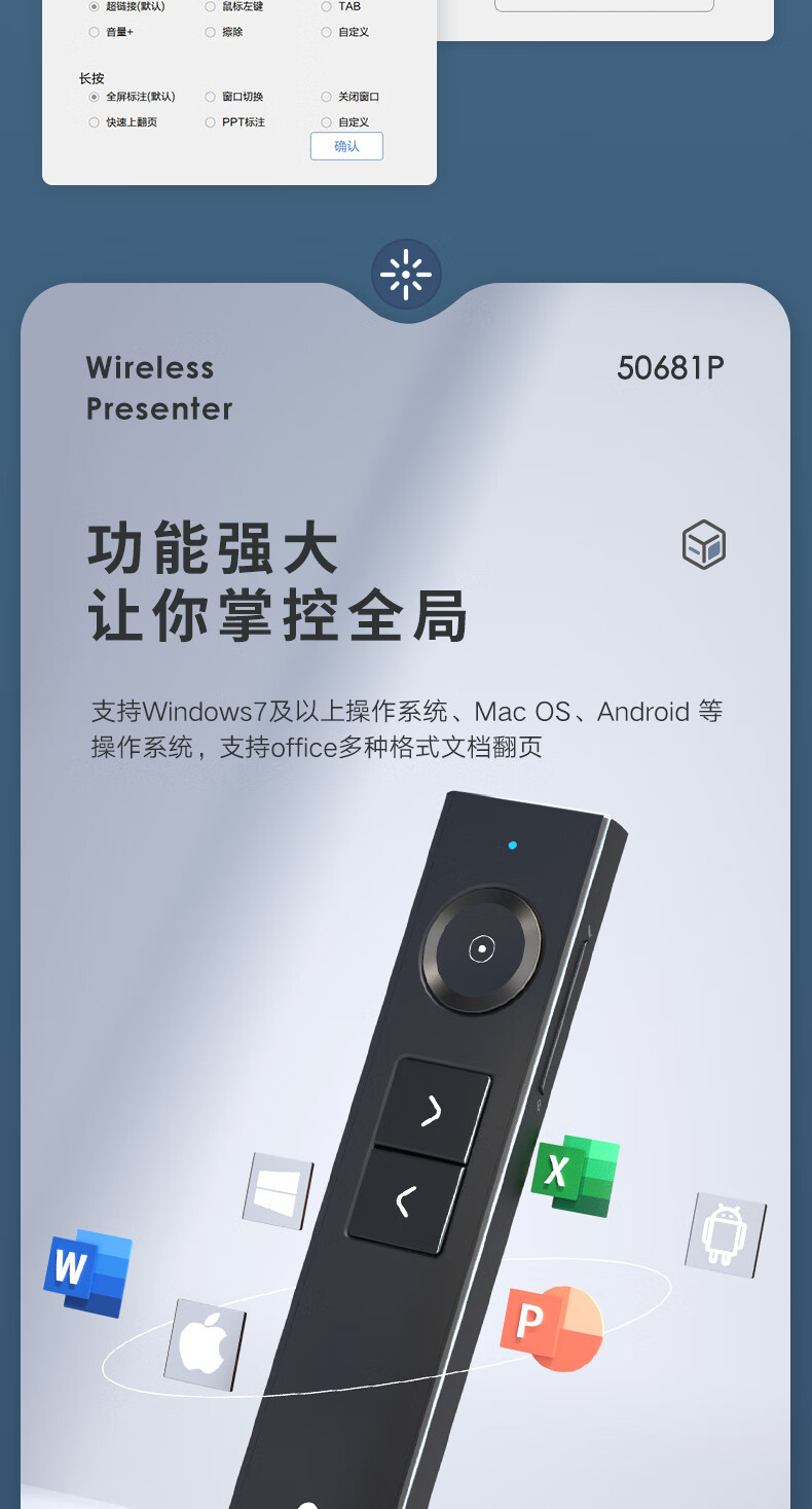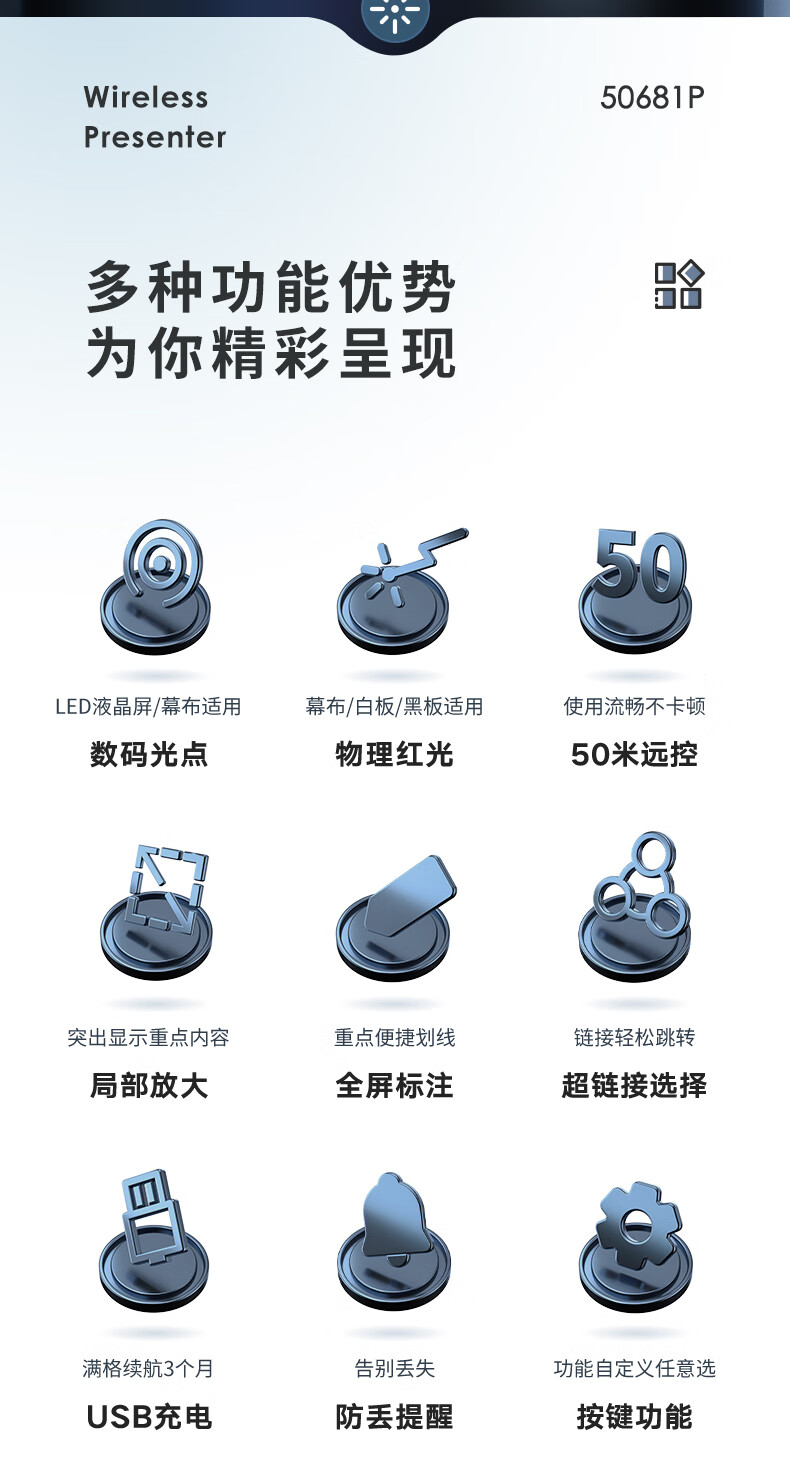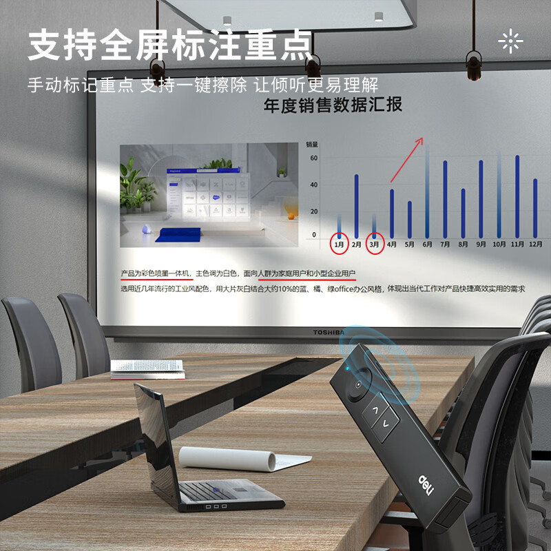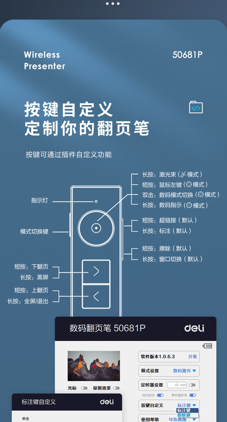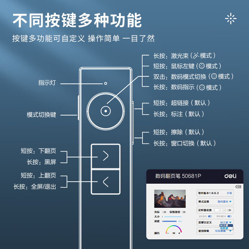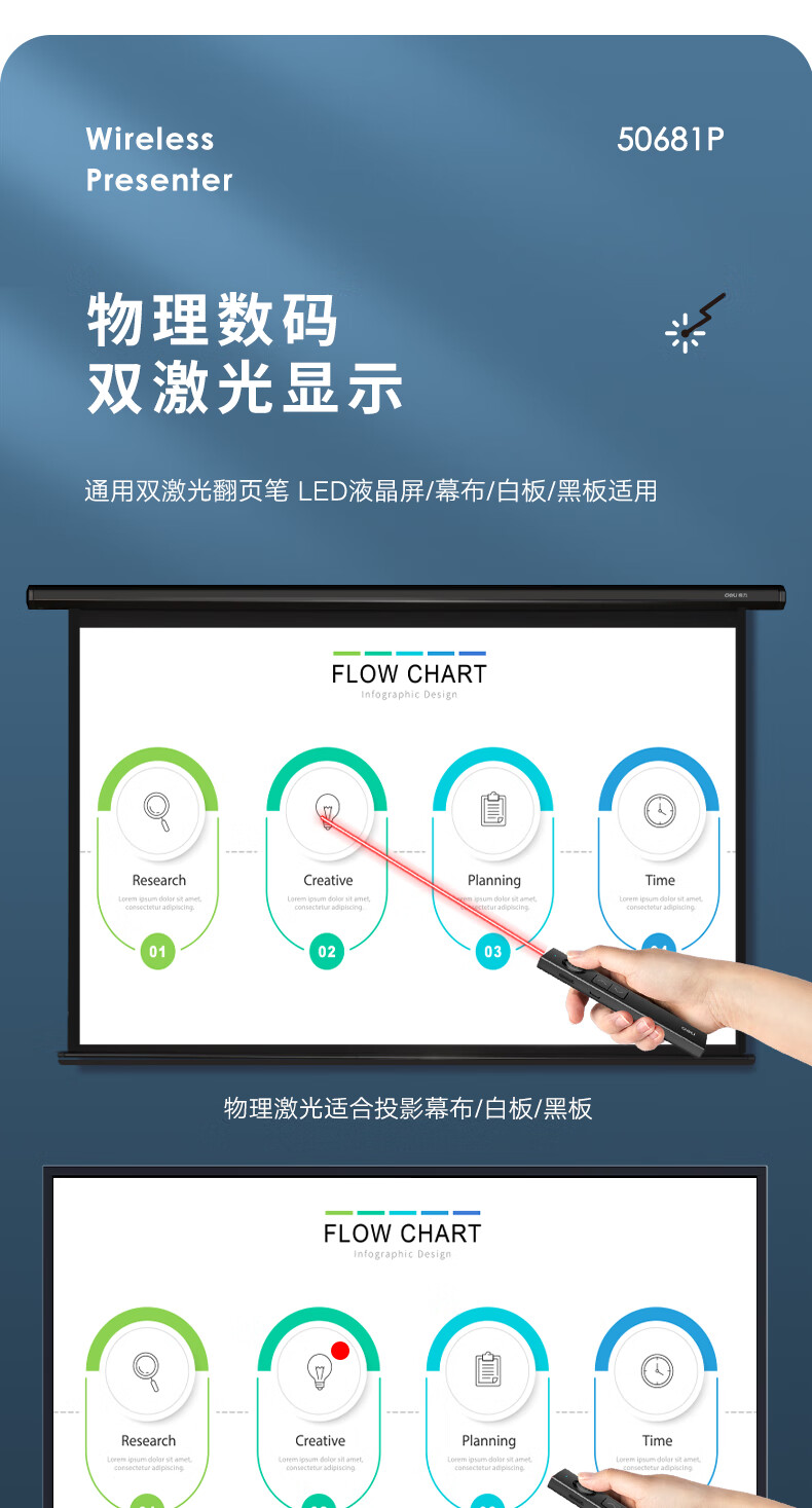 得力激光笔激光PPT翻页笔 数字物理双激光 适用LED屏希沃白板数码投影=空中飞鼠教师演讲笔50681P