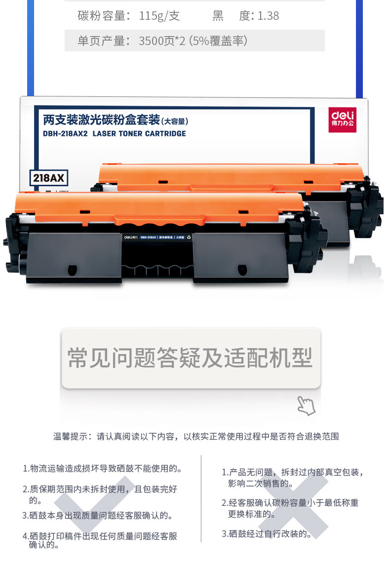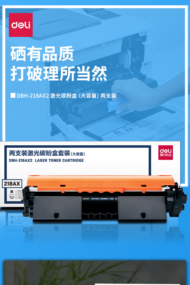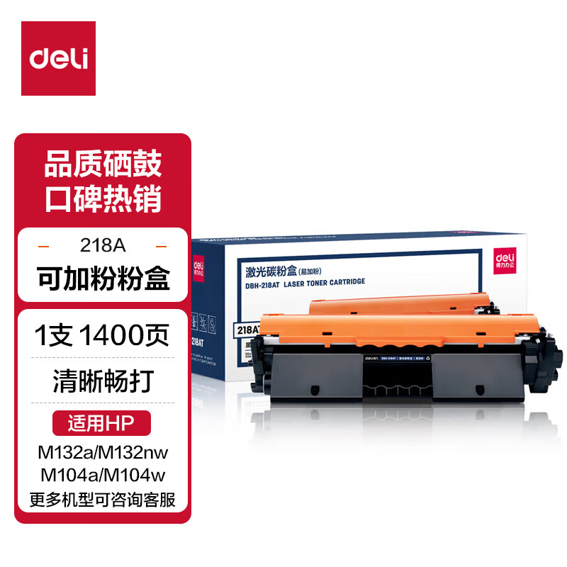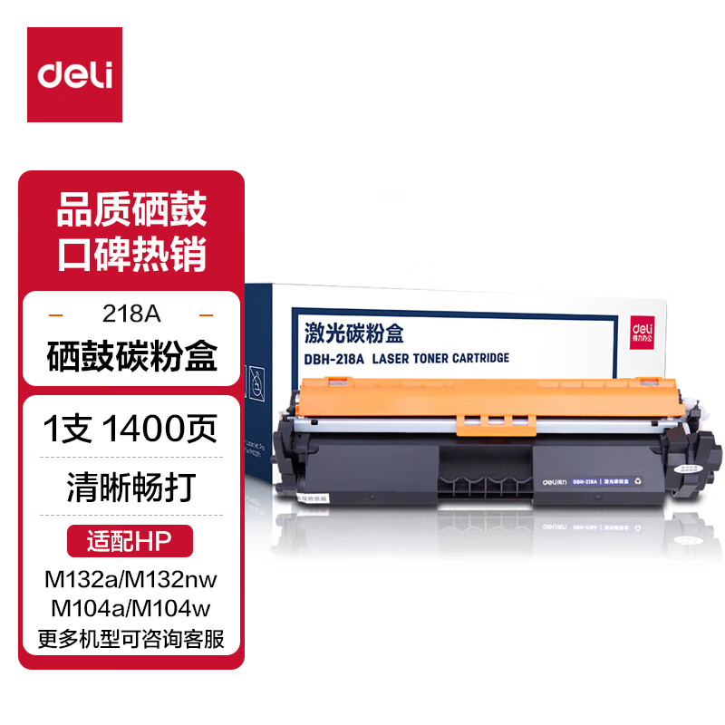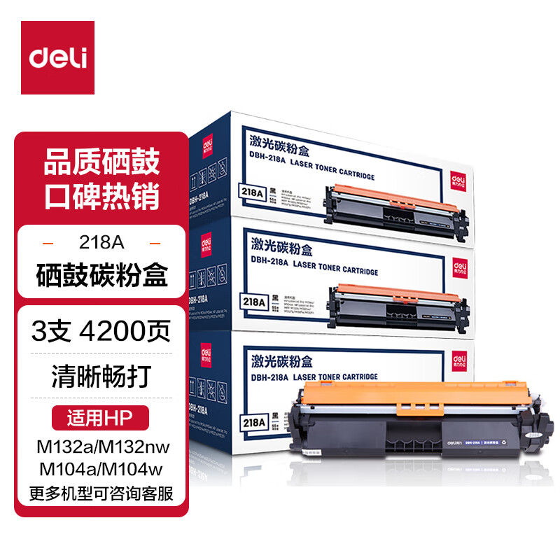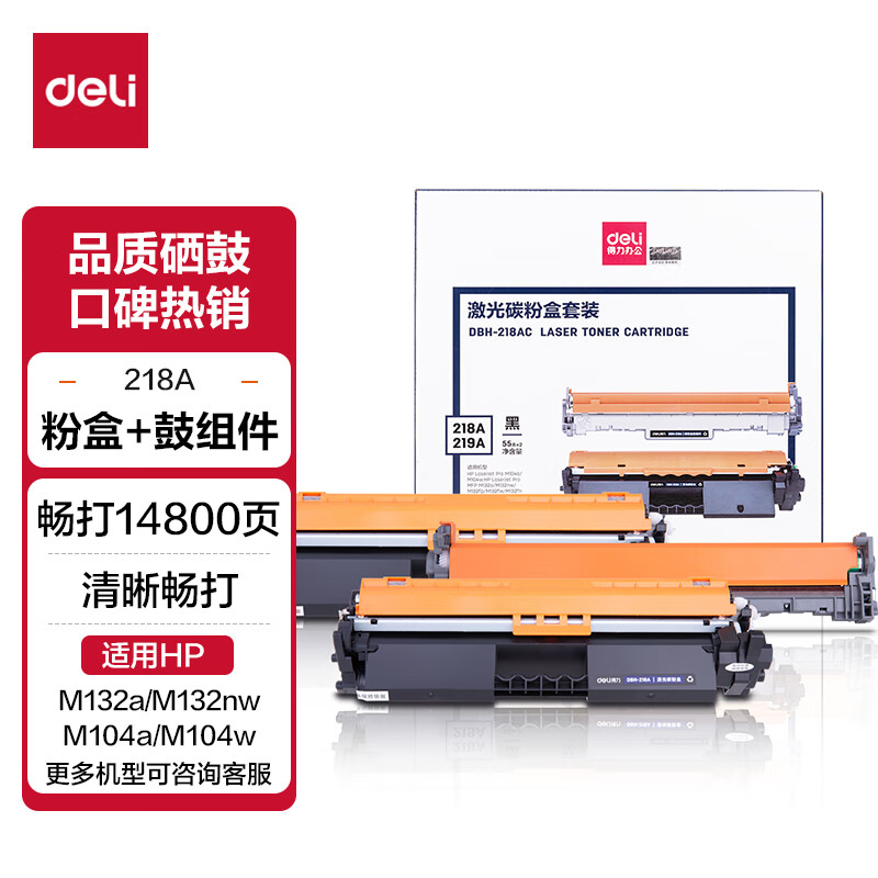 得力(deli) CF218AX硒鼓 大容量2只装带芯片适用惠普M132a m132nw m132fn m132fp M104W M104A打印机粉盒