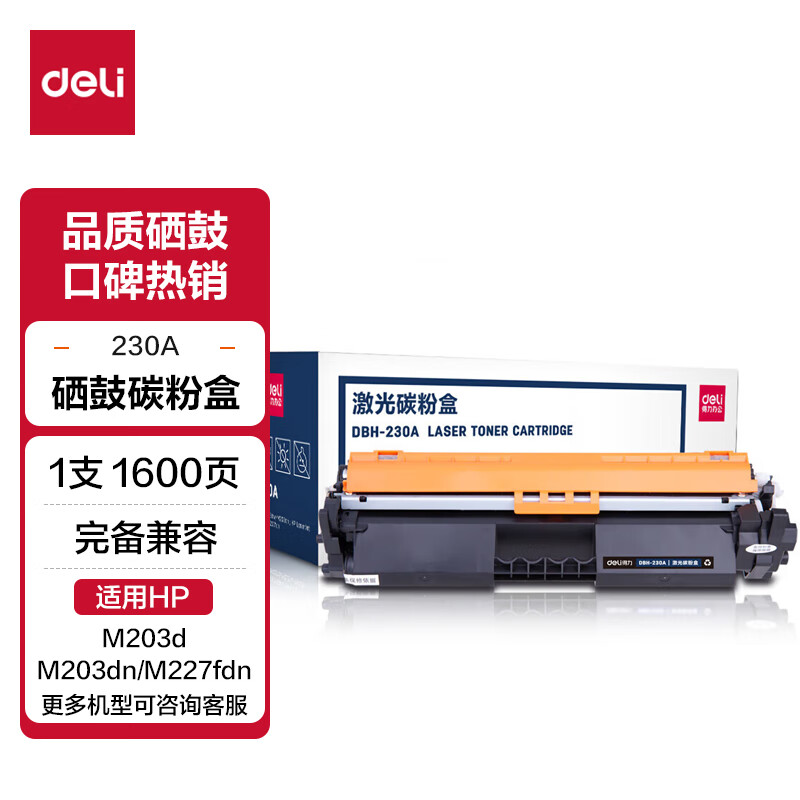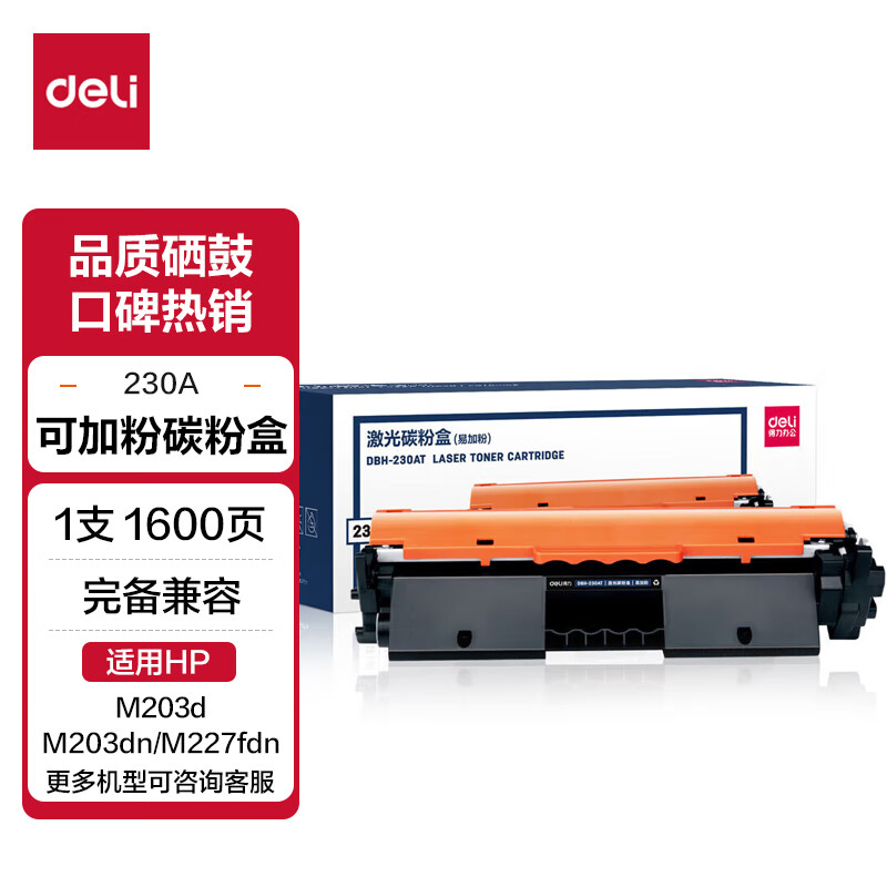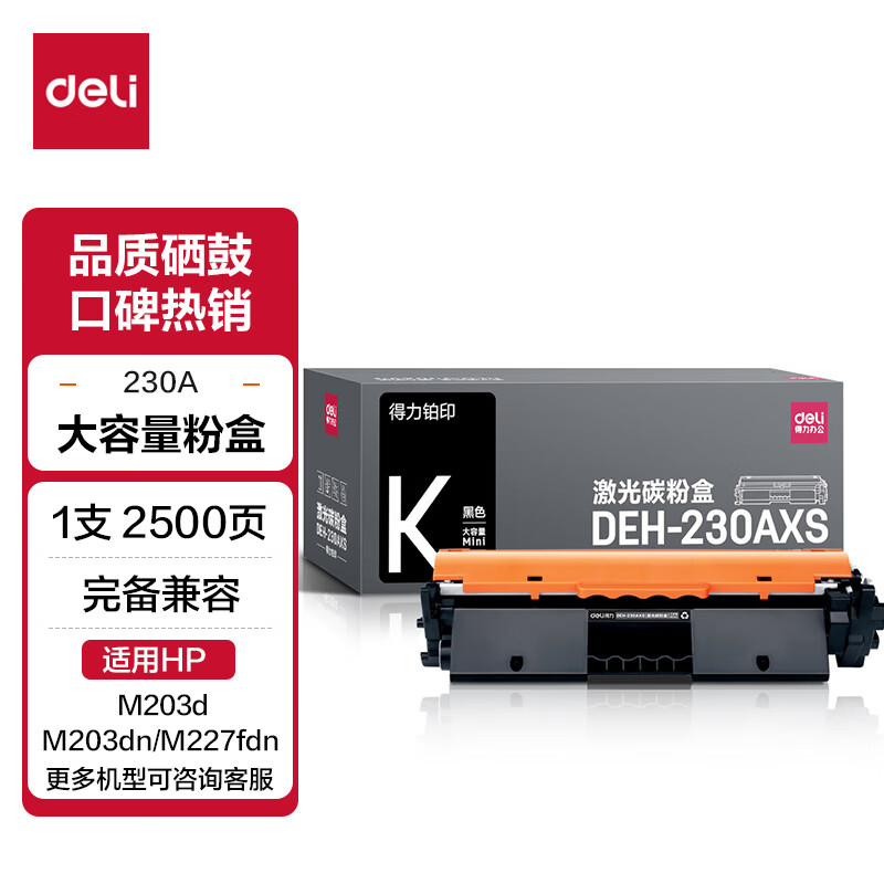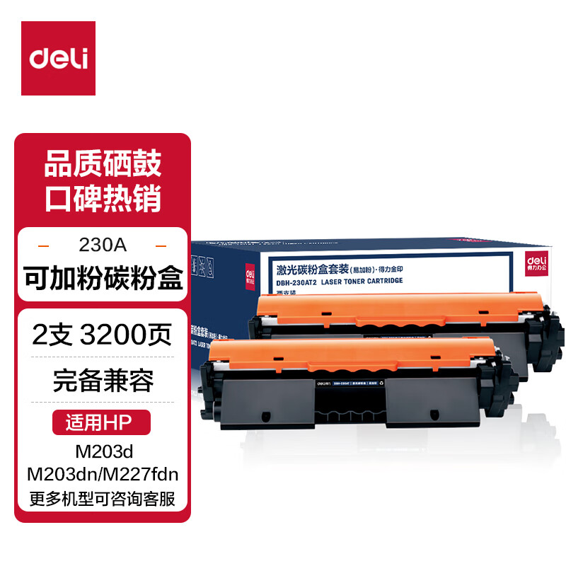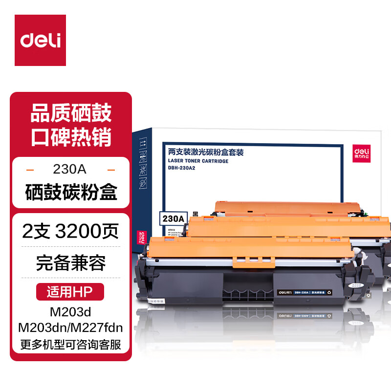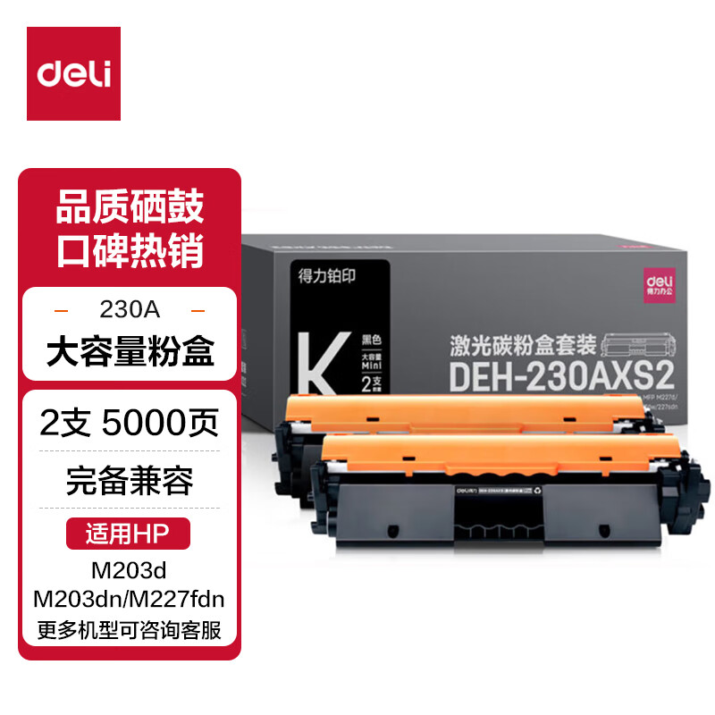 得力(deli) CF230A粉盒带芯片 适用惠普M203d M203dn M203dw M227fdn/fdw打印机粉盒hp30A硒鼓 大容量2只装