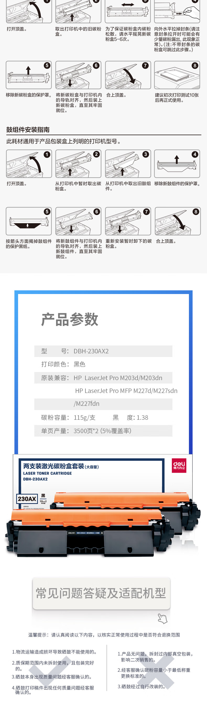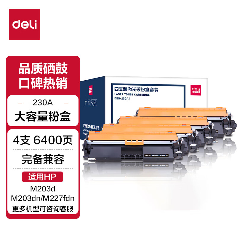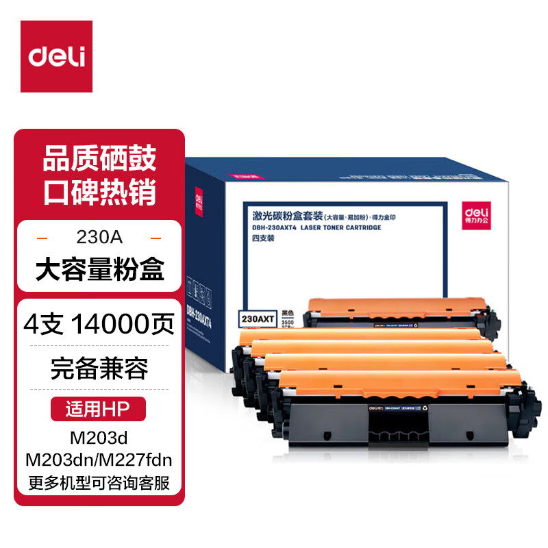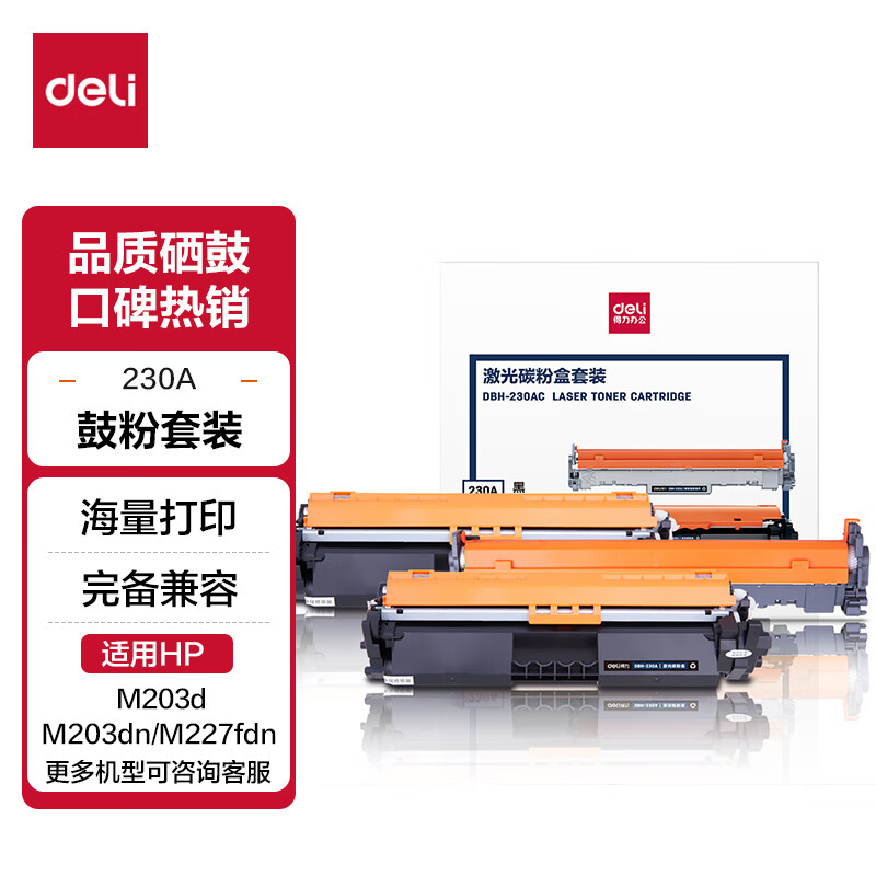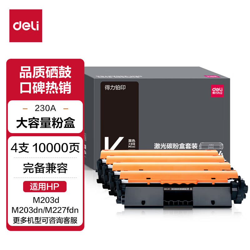 得力(deli) CF230A粉盒带芯片 适用惠普M203d M203dn M203dw M227fdn/fdw打印机粉盒hp30A硒鼓 大容量2只装