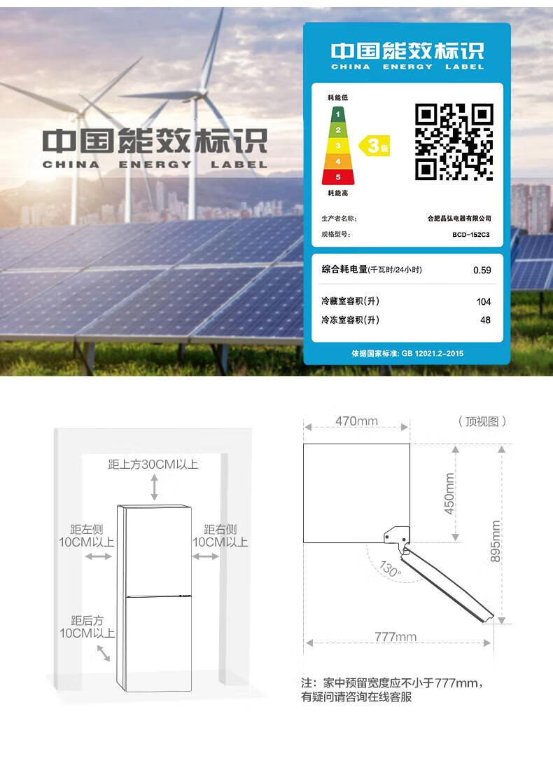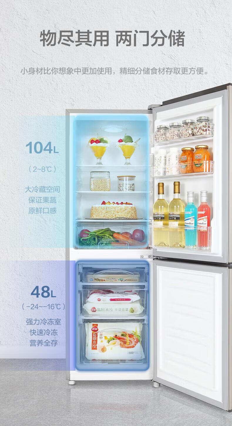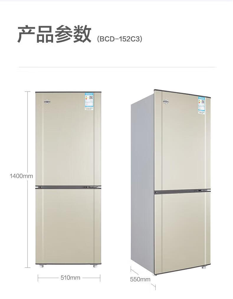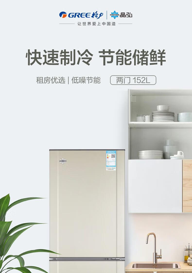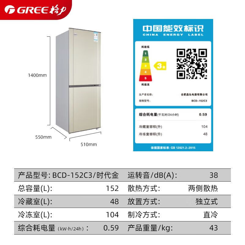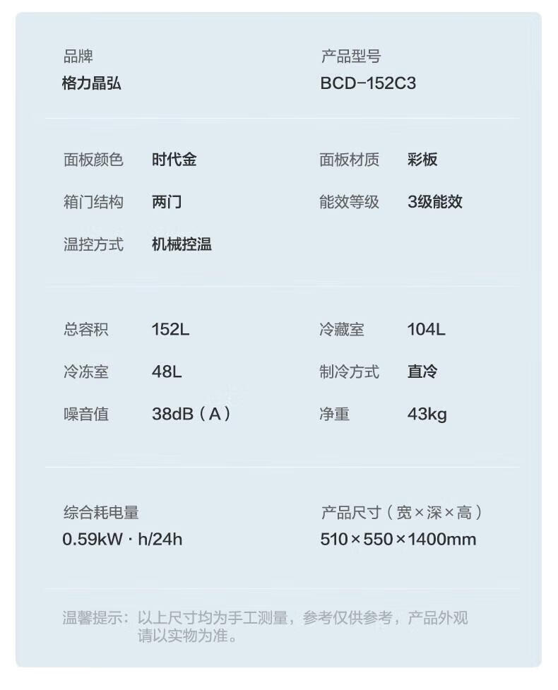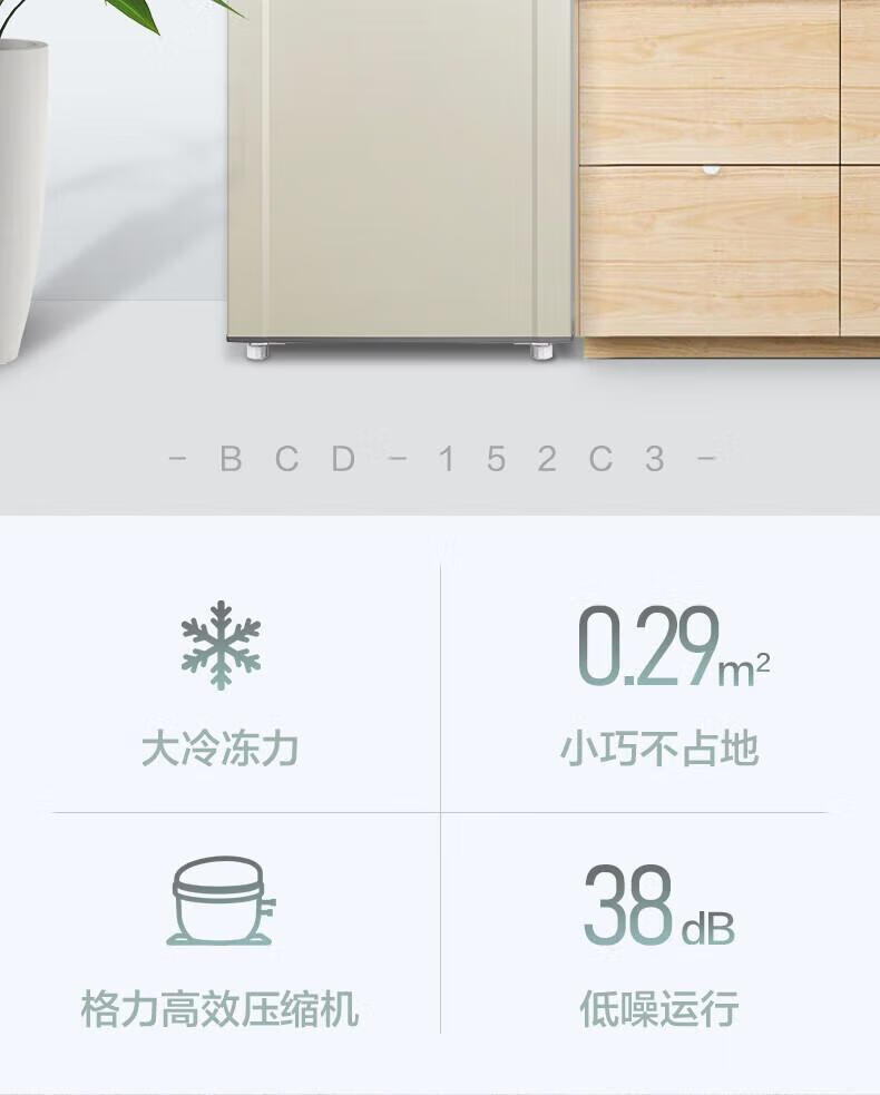 格力(GREE)晶弘冰箱152升双开门出租房办公室家用低噪省电小巧不占地节能低噪BCD-152C3/时代金