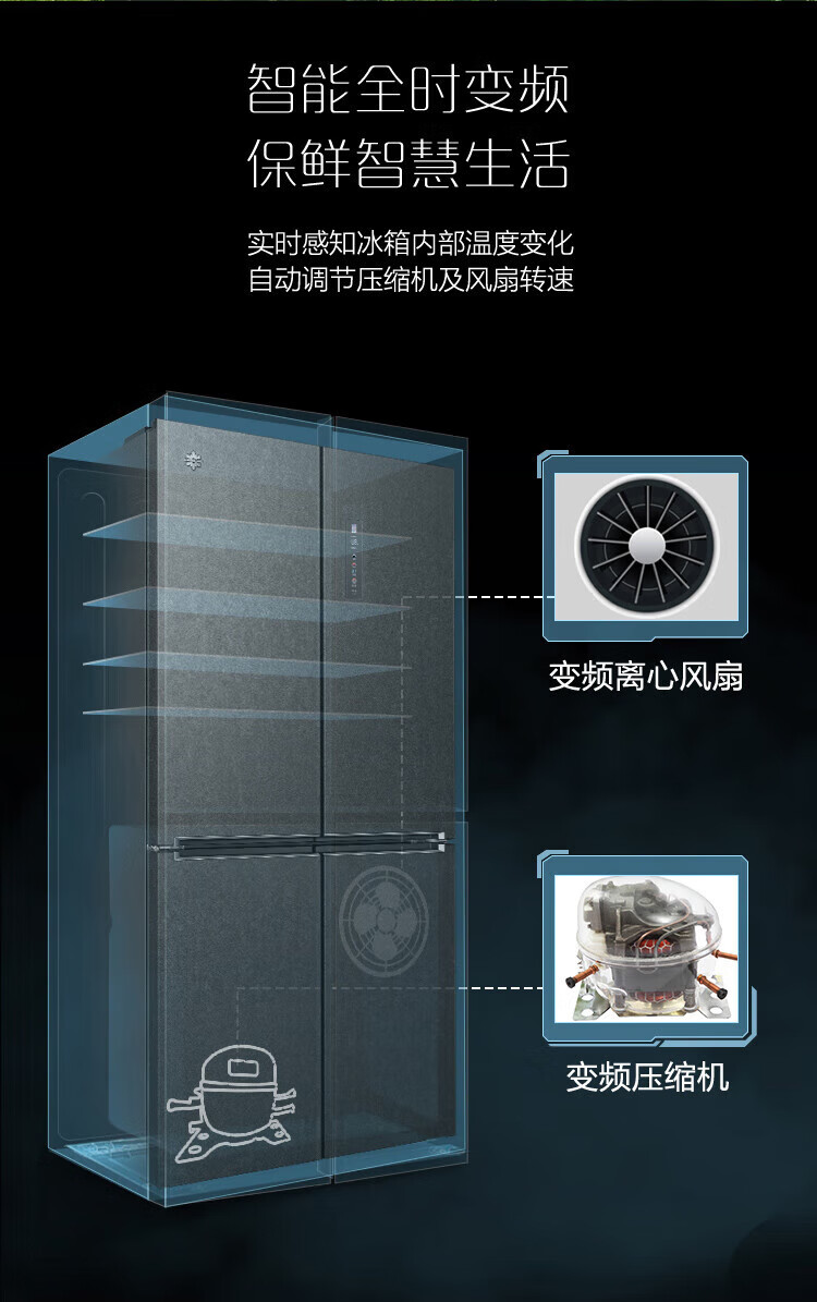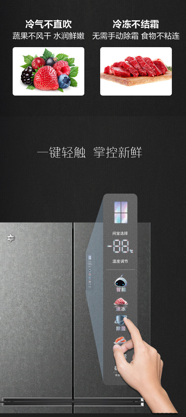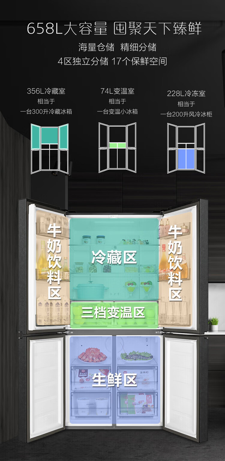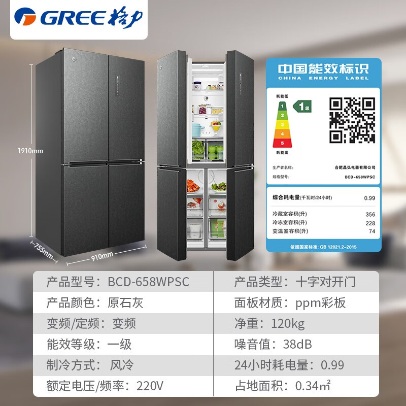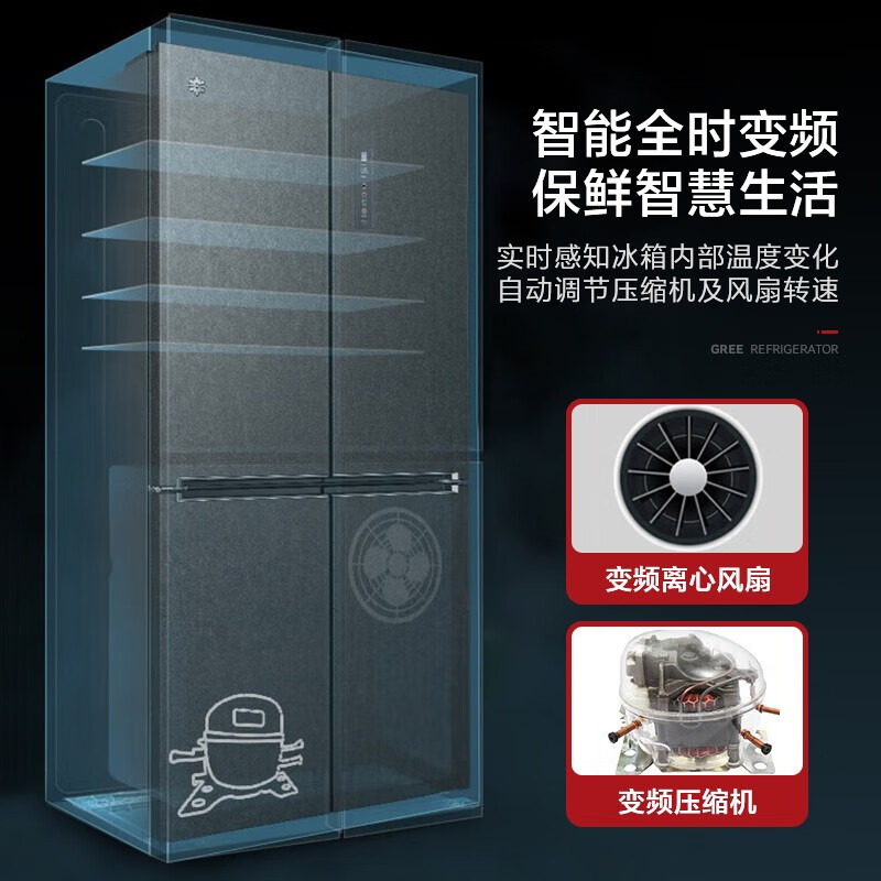 格力(GREE)晶弘冰箱658升四开门十字对开家用底部散热可嵌入恒温母婴保鲜节能变频一级能效BCD-658WPSC