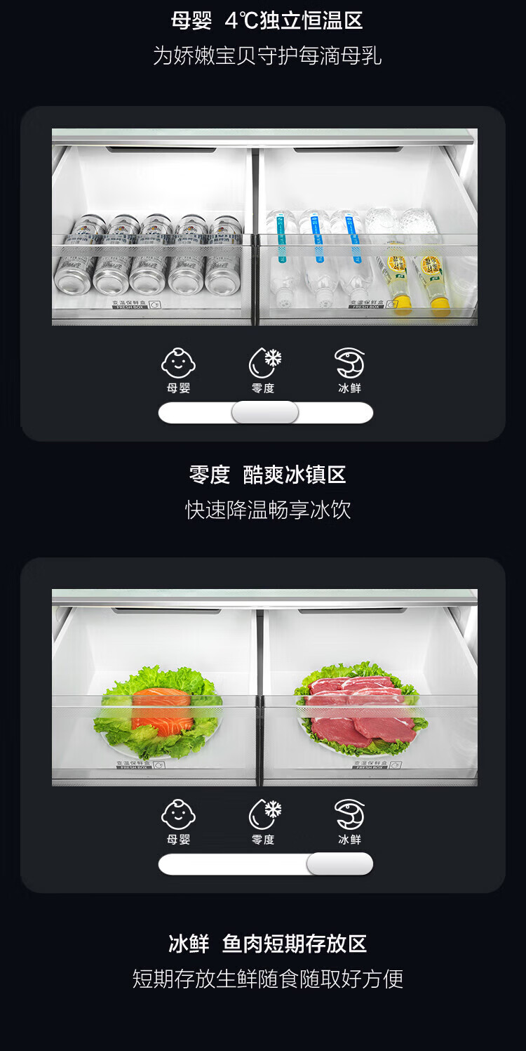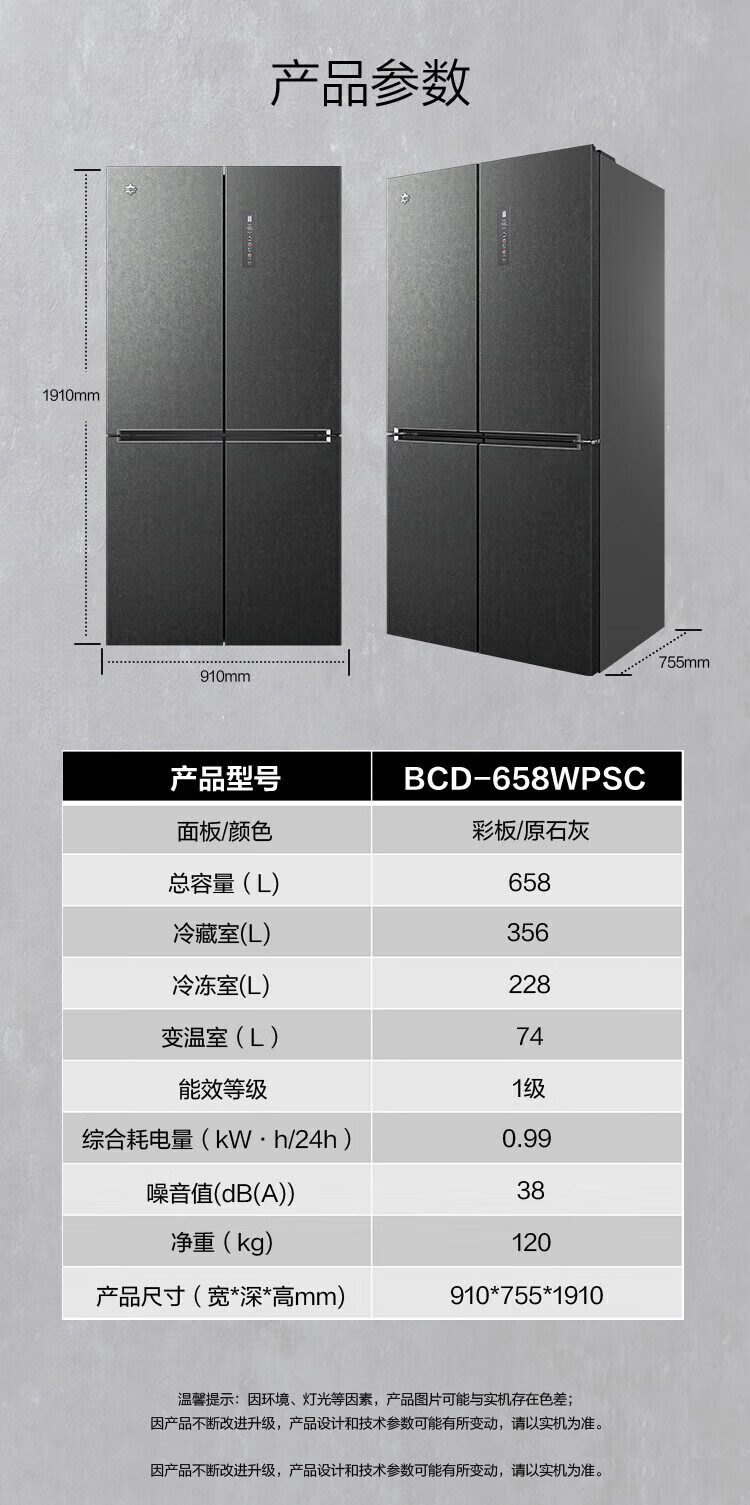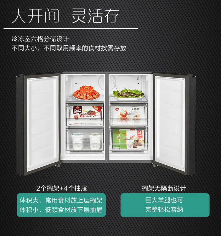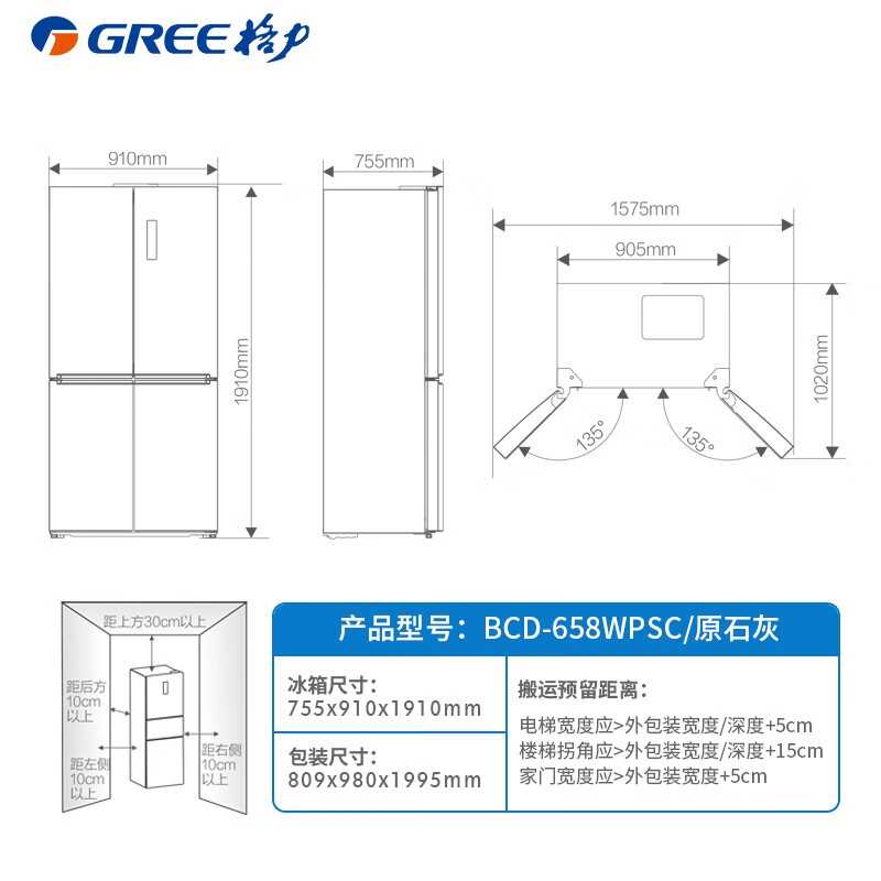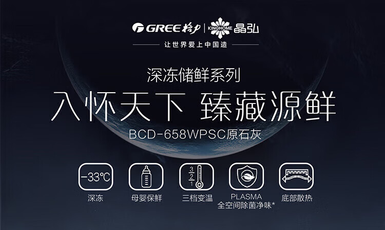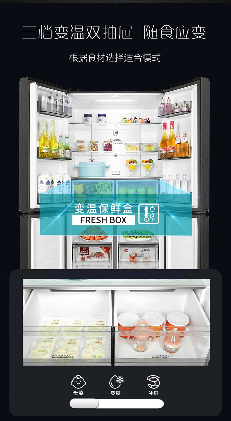 格力(GREE)晶弘冰箱658升四开门十字对开家用底部散热可嵌入恒温母婴保鲜节能变频一级能效BCD-658WPSC