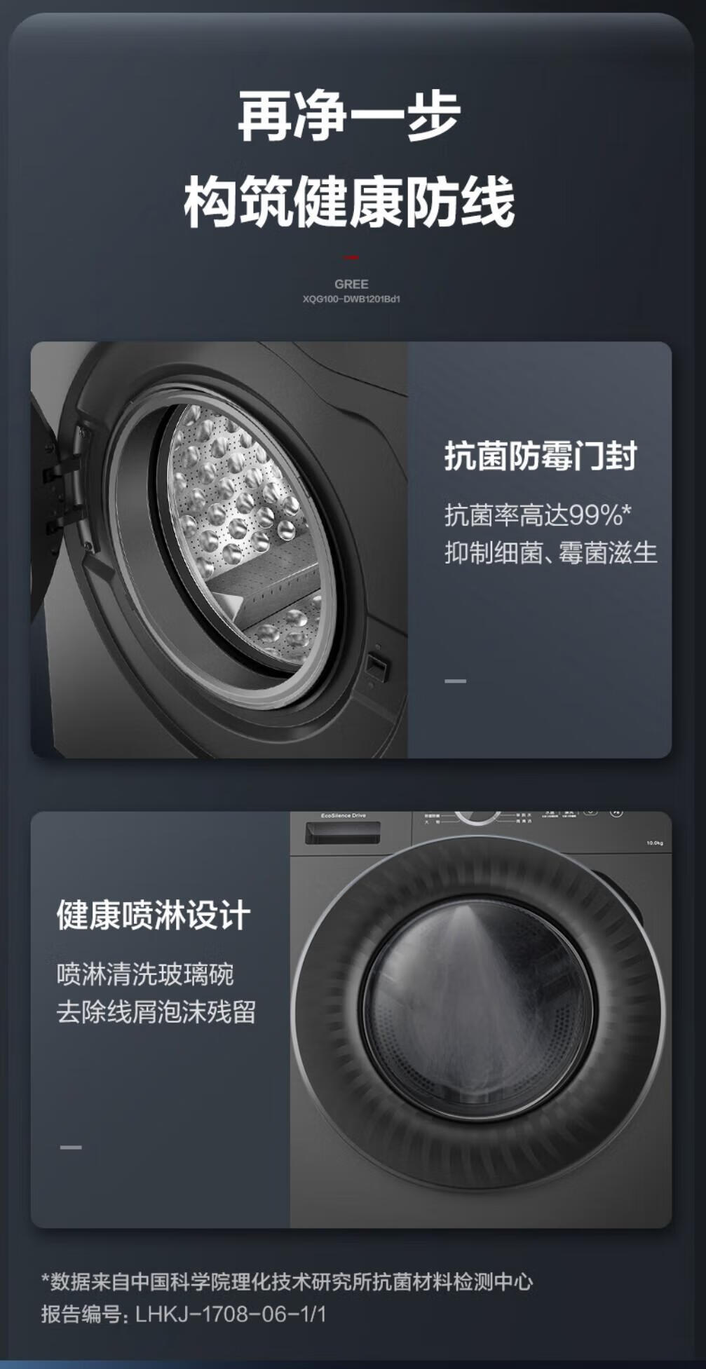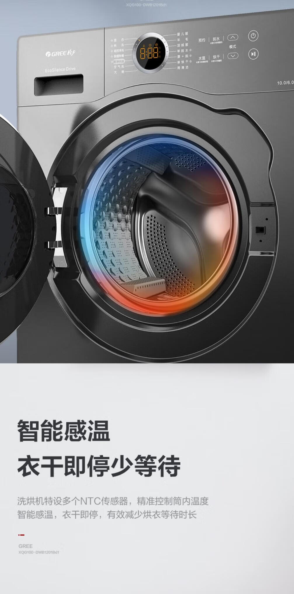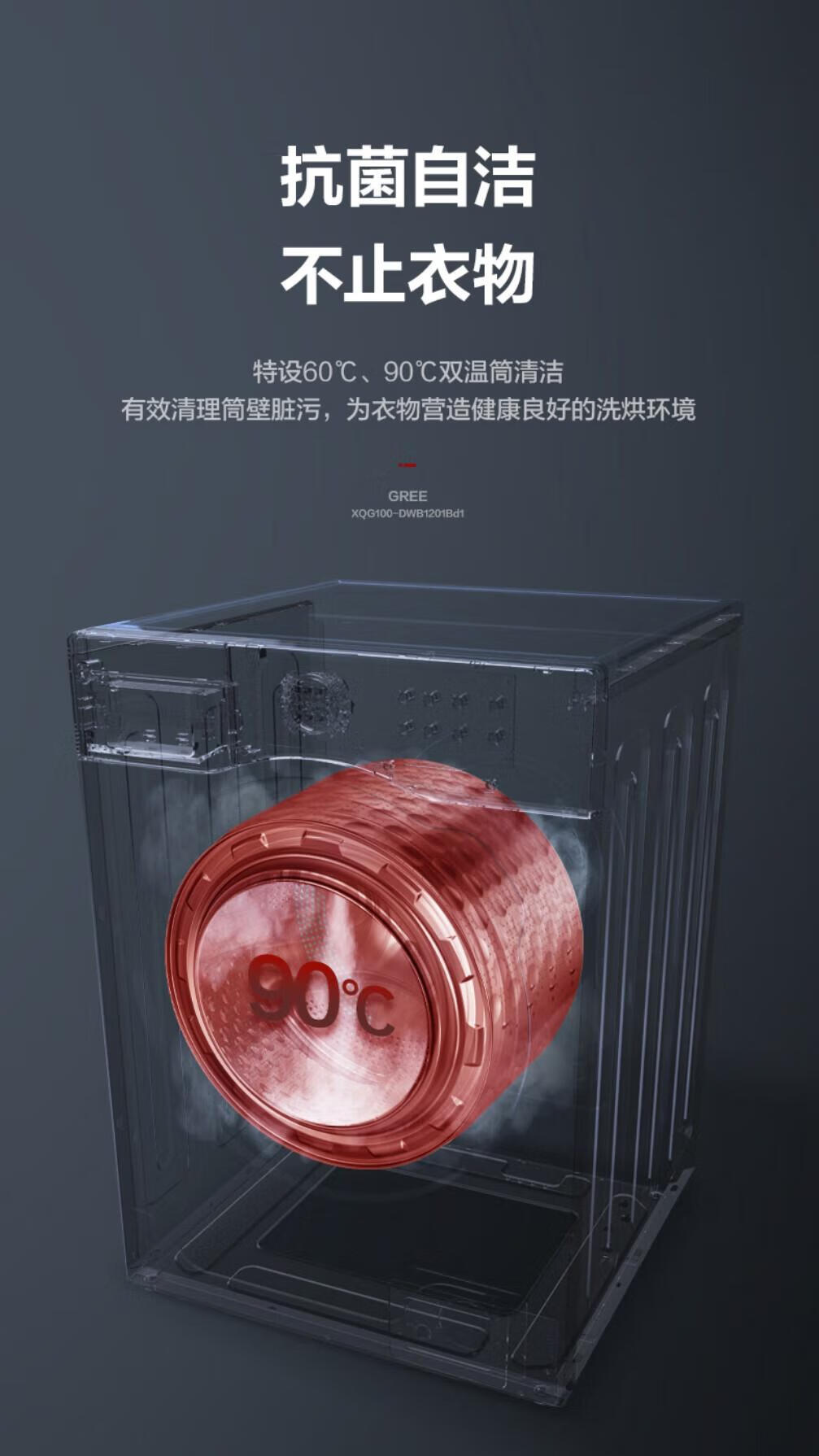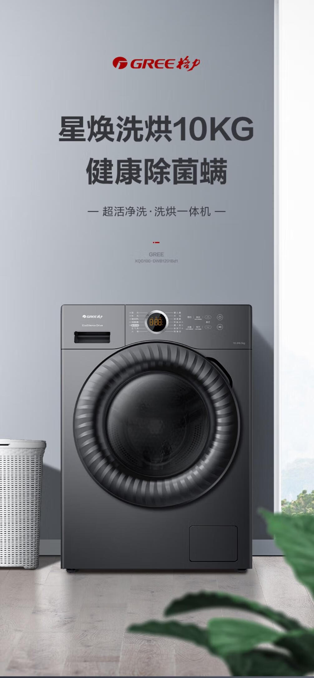 格力(GREE)星焕10KG洗烘滚筒洗衣机全自动洗烘一体智能冷凝烘干高效除菌除螨一级能效XQG100-DWB1201Bd1