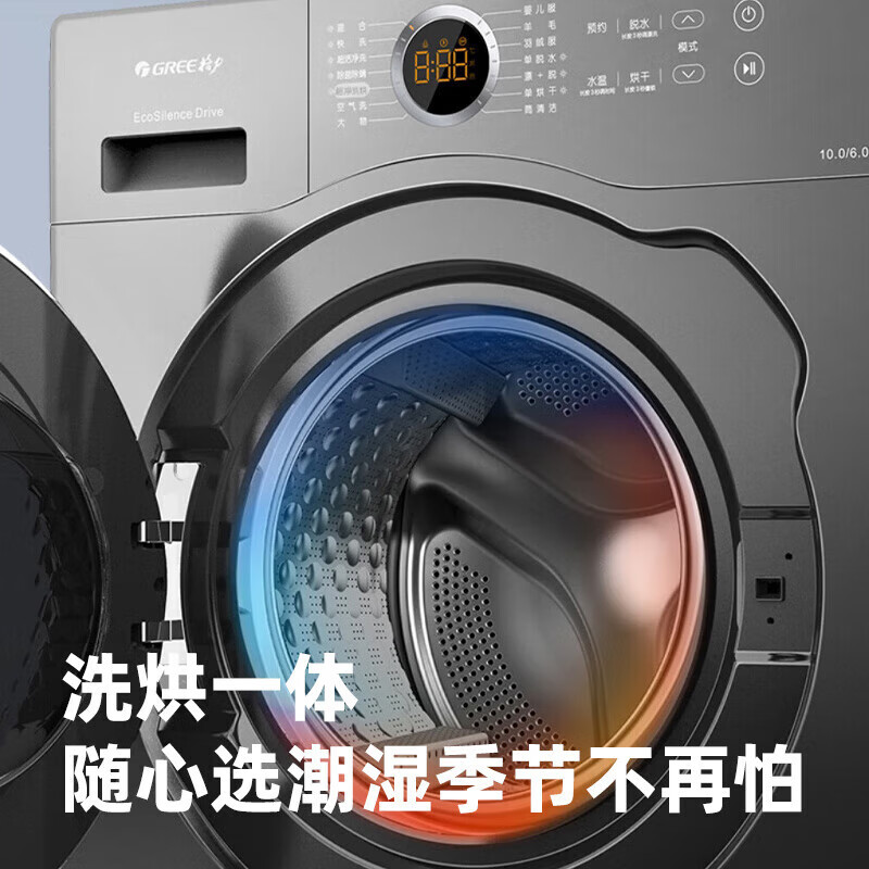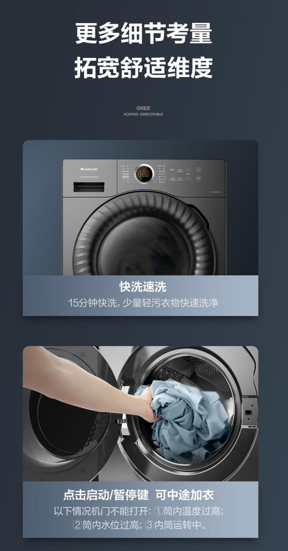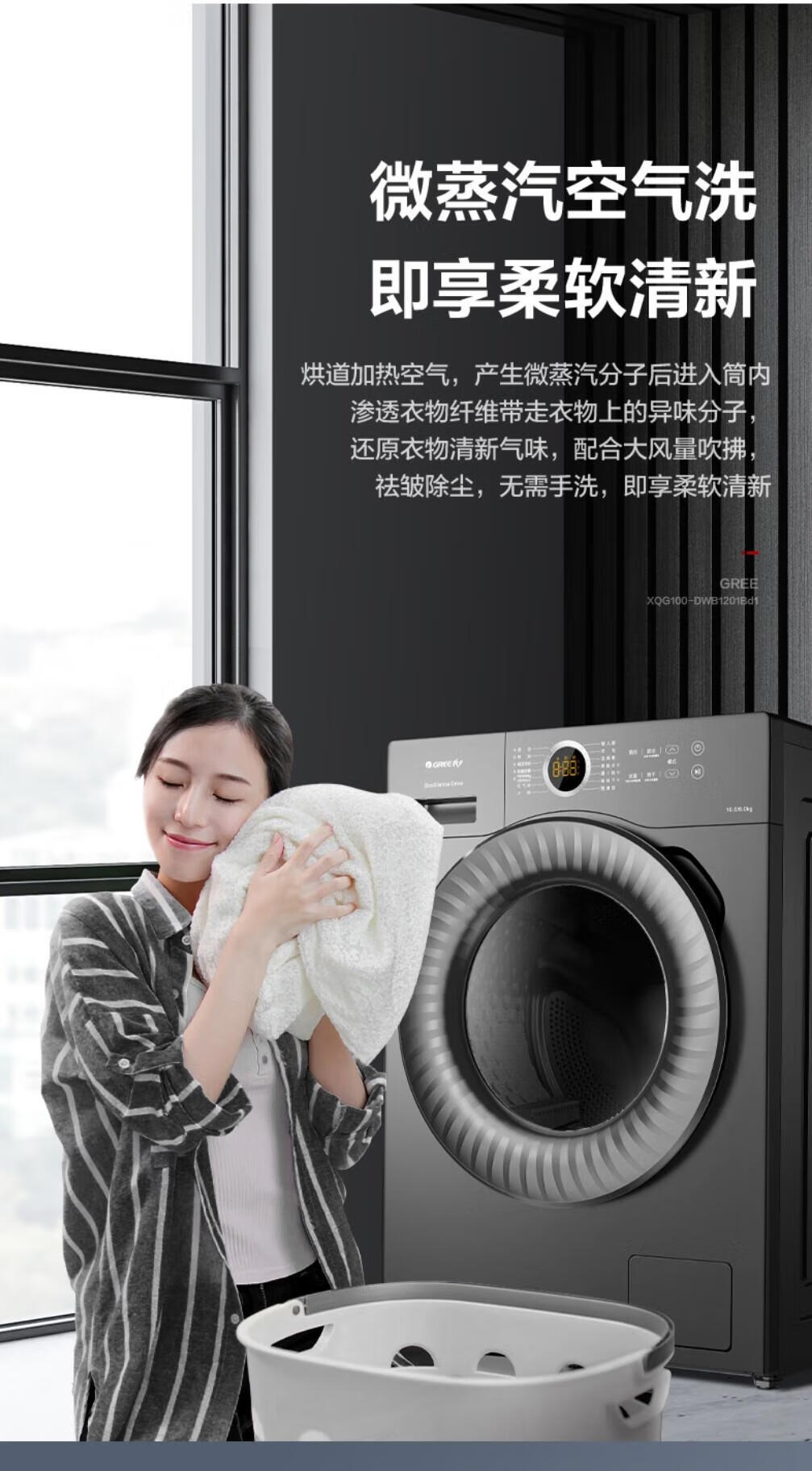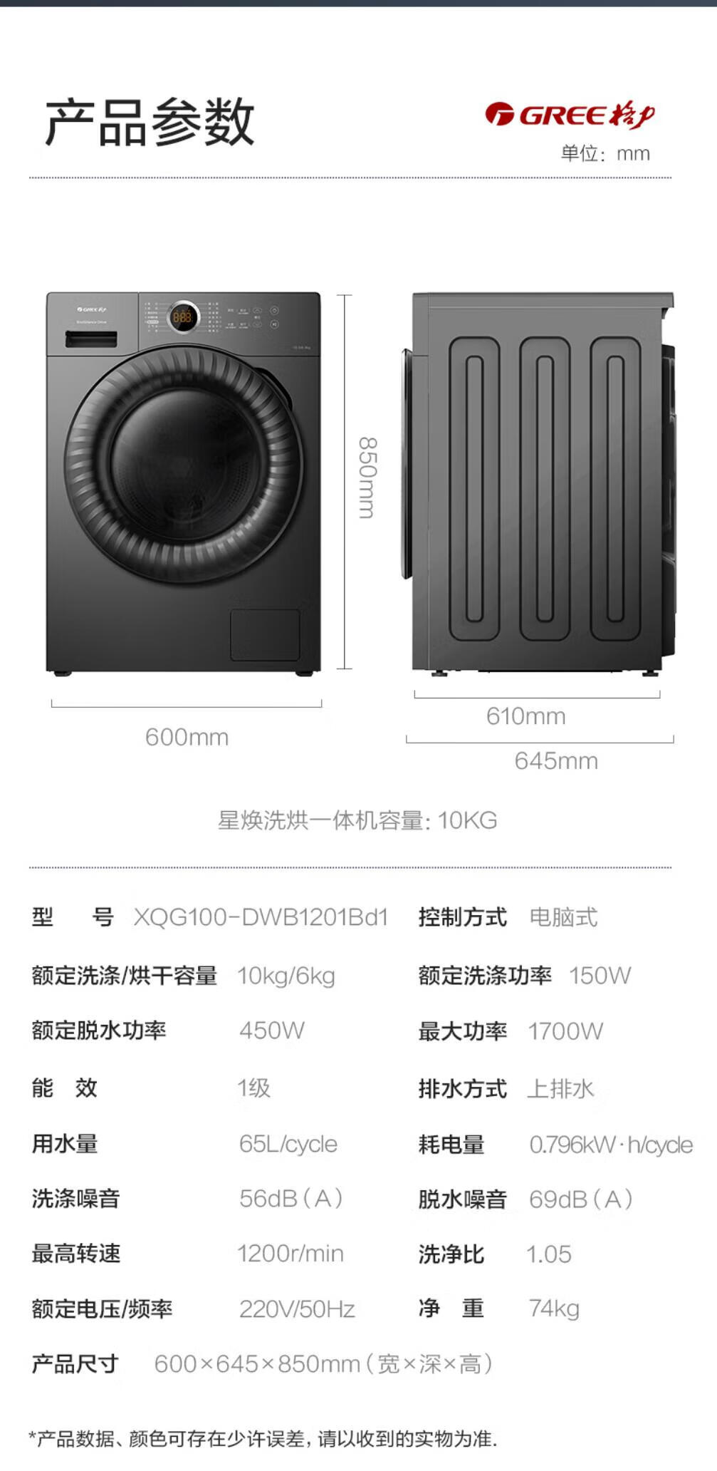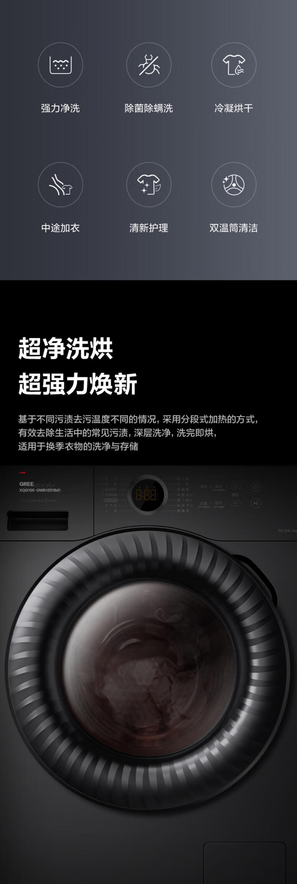 格力(GREE)星焕10KG洗烘滚筒洗衣机全自动洗烘一体智能冷凝烘干高效除菌除螨一级能效XQG100-DWB1201Bd1