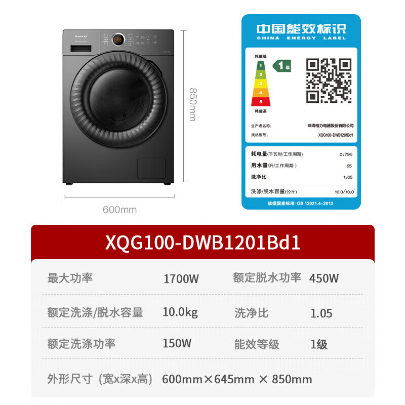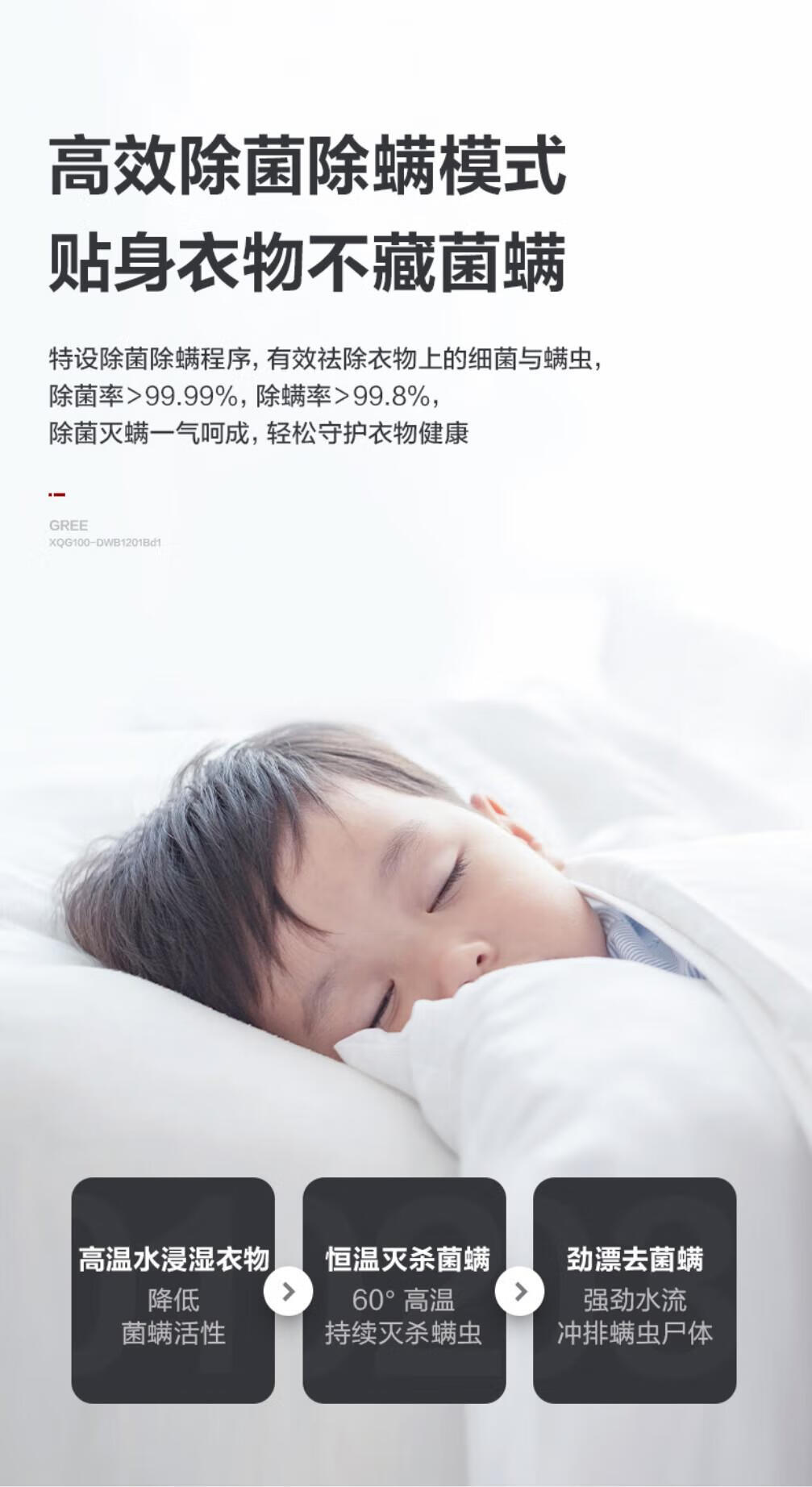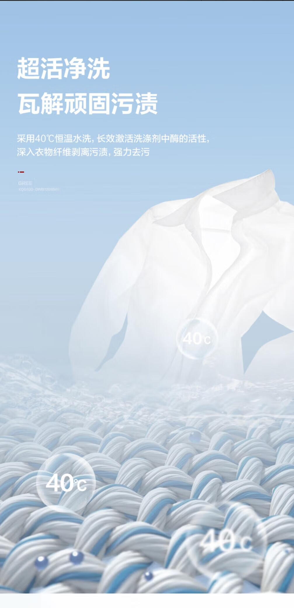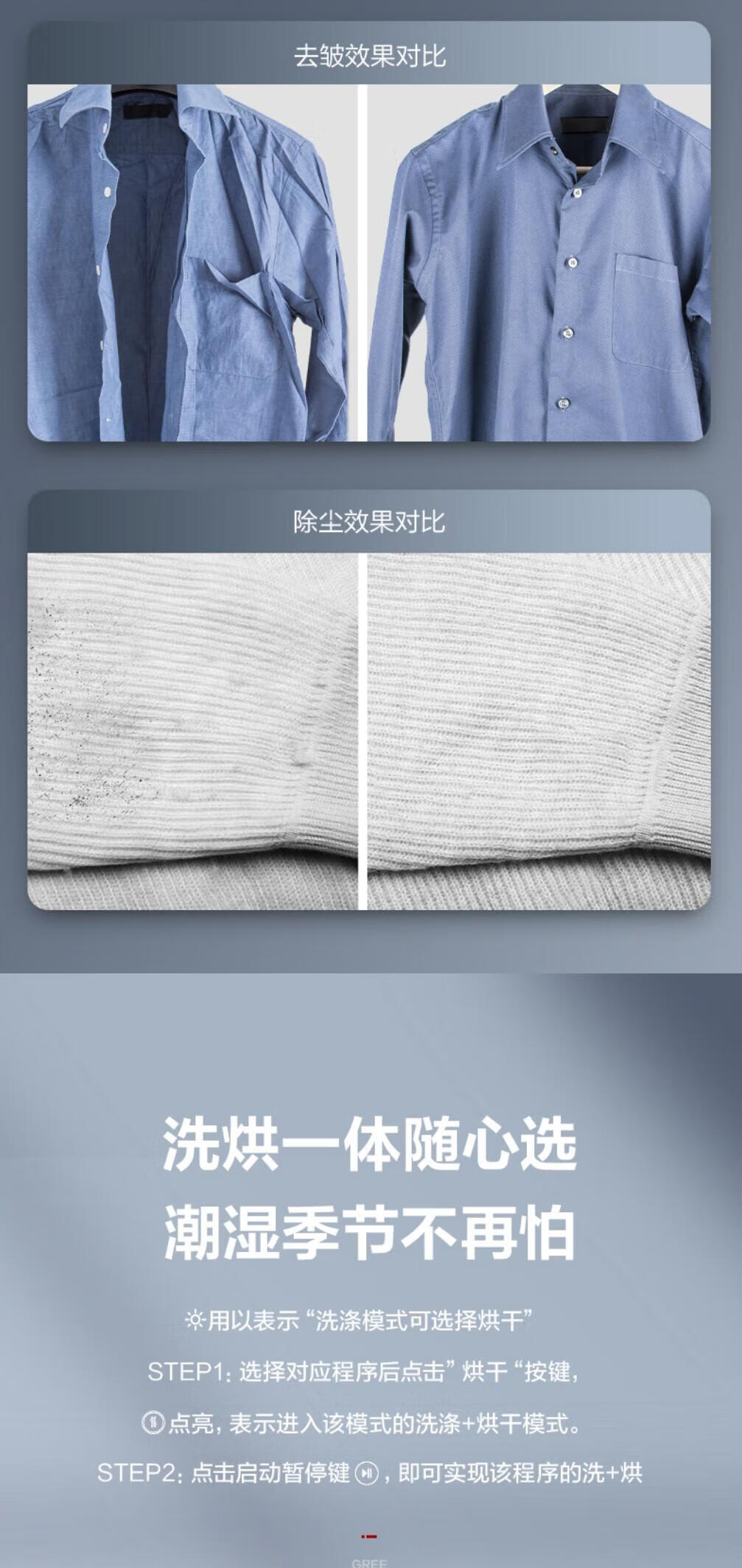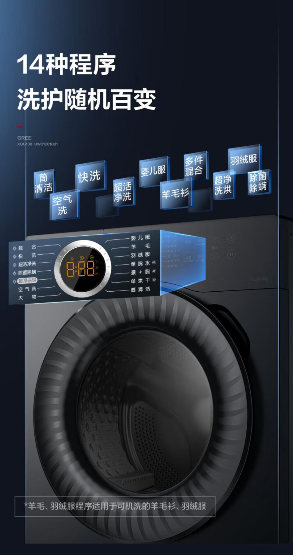 格力(GREE)星焕10KG洗烘滚筒洗衣机全自动洗烘一体智能冷凝烘干高效除菌除螨一级能效XQG100-DWB1201Bd1